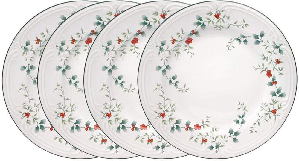 Store New Arrivals Add to Favorite View Feedback Contact Winterberry 10-1/2-Inch Dinner Plates, Set of 4, White Description Style Dinner Plate Set Item Dimensions L x W x Thickness 11.22"L x 10.91"W x 3.07"Th Pattern Winterberry Theme Holiday Item Type Name Dinner Plates Embellishment Feature Decorative holly and raised filigreee embossing Item Shape Round Is the item dishwasher safe? Yes Material Stoneware Occasion Type Holiday Seasons All Seasons Included Components Dishware plates Reusability Reusable Item Weight 3.56 Kilograms Occasion Holiday Special Features Microwave Safe Special Feature Microwave Safe Color White Material Features microwave safe and durable Global Trade Identification Number 00025398057009 Recommended Uses For Product Dinner Is the item microwaveable? Yes Product Care Instructions Dishwasher Safe Size Set of 4, 10 1/2 inches From the Winterberry collection, featuring decorative holly, raised filigreee embossing and a thin green stripe on the rim with snowy white background. A full collection of dinnerware, serveware and gifts for the holiday season. Measure 10-1/4 ich diameter Made of high quality stoneware Dishwasher and Microwave Safe Winterberry is the holiday classic that brings this timeless motif to life in elegantly sculpted dinnerware & serveware, beautiful glassware and joyous giftware. ABOUT US We offer the best prices around on high quality products. Our E-store includes media such as books, movies, music and games while offering electronics, toys, sporting apparel, clothing, tools, general home, garden items and more. SHIPPING We are always working hard to ensure your package arrives as soon as possible. Please understand that some factors like weather, high postal traffic, and the performance of shipping companies are outside of our control. We offer free shipping to the lower 48 states and ship within 2 business days of payment, usually sooner. We do not accept P.O. Boxes. Please provide a physical address. For shipping outside of the continental USA, we only use eBay's Global Shipping Program.The item is shipped to KY and then sent to the rest of the world. International customers are responsible for all duties and taxes. Continue to check out in order to calculate costs for shipping the item to your country. Messages regarding eBay's Global Shipping Program MUST be directed at eBay EXCLUSIVELY. RETURNS We offer a 30-Day Return Policy on items which you are not completely satisfied with. You have the option for a full-refund or an exchange of the item. No returns are available on items shipped outside of the USA. PAYMENT We accept PayPal. CONTACT US This page content is yet to come Please ad us to your favorite seller and visit again later Thank You CUSTOMER SATISFACTION We try our very best to make sure every customer is completely satisfied. If there's a problem, message us! We're happy to help. WE ACCEPT Copyright © 2021 AutoDS. | All Rights Reserved