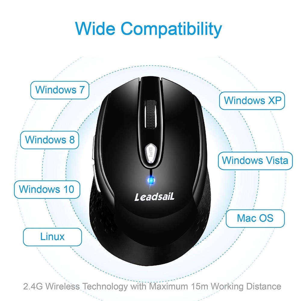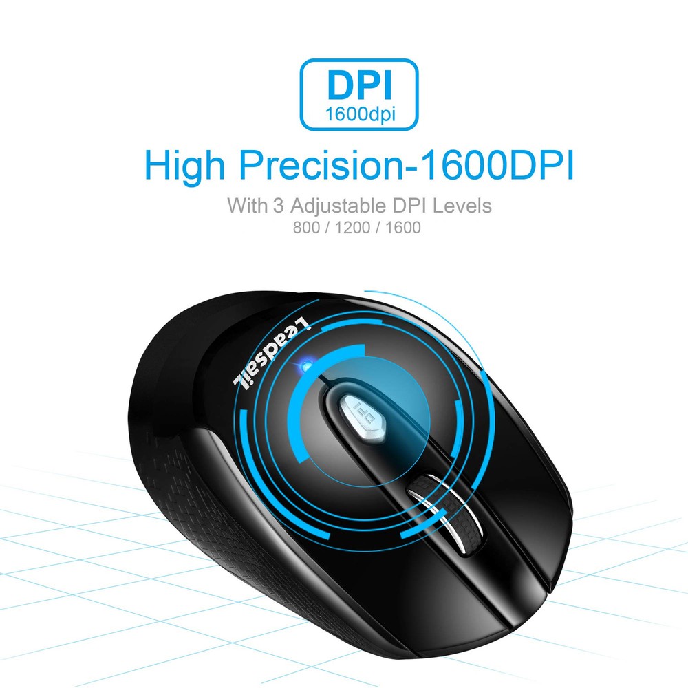 【Efficient Wireless Transmission】Mute quite clicks makes you concentrate on your work and free you worry about bothering others. Powerful, reliable 2.4GHz wireless mouse connection with high anti-interference performance with 50ft/15M transmission distance. A Mini USB receiver (stored in the battery slot) supports plug and play. 【3 ADJUSTABLE DPI】 800,1200,1600 DPI, easily change the cursor sensitivity depending on your activity. Computer mouse comes with a Nano receiver (stored in the back of the wireless mouse with magnetic force). No need any driver, and you can plug and play the wireless mouse for laptop directly. 【Longer lifespan】Laptop mouse passed 5,000,000 times keystroke test to guarantee extra durability. Switch button on the back of this cordless mouse to save power. And it will enter sleep mode after 15 minutes of no-operation. Press any button to wake it up. Note: powered by 1*AA battery (not included). 【MAXIMUM HAND-FEELING】 Slim wireless mouse shape, sweat-resistant and skin-friendly finish are for maximum comfort and support. The thoughtful ring and little finger rest provide extra comfort. The sturdy scroll wheel with rubber makes sure that your hand will not slip when scrolling. 【Strong compatibility】Smooth, precise and affordable mobile optical mouse with Nano receiver for laptop, desktop and netbook PCs. Mouse wireless well compatible with Windows XP, Windows, Windows Vista, Mac OS X, Windows 2000 Server.