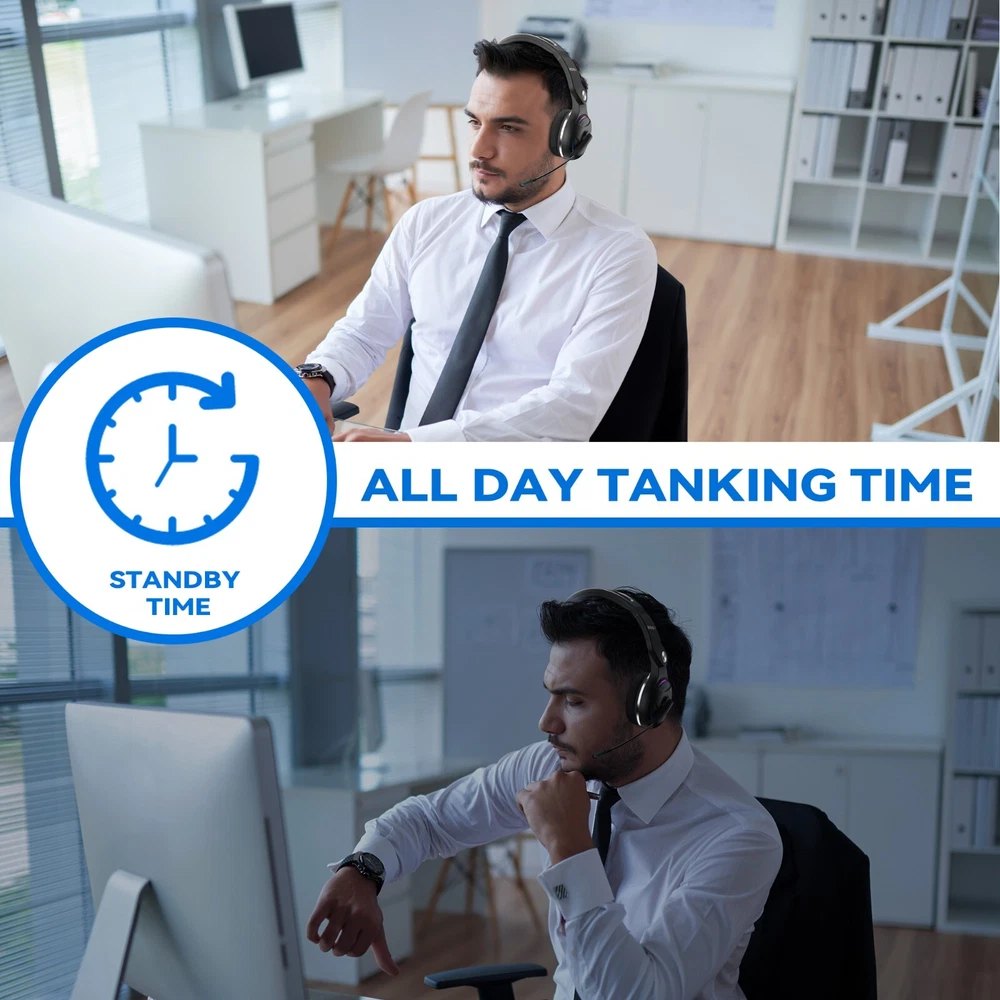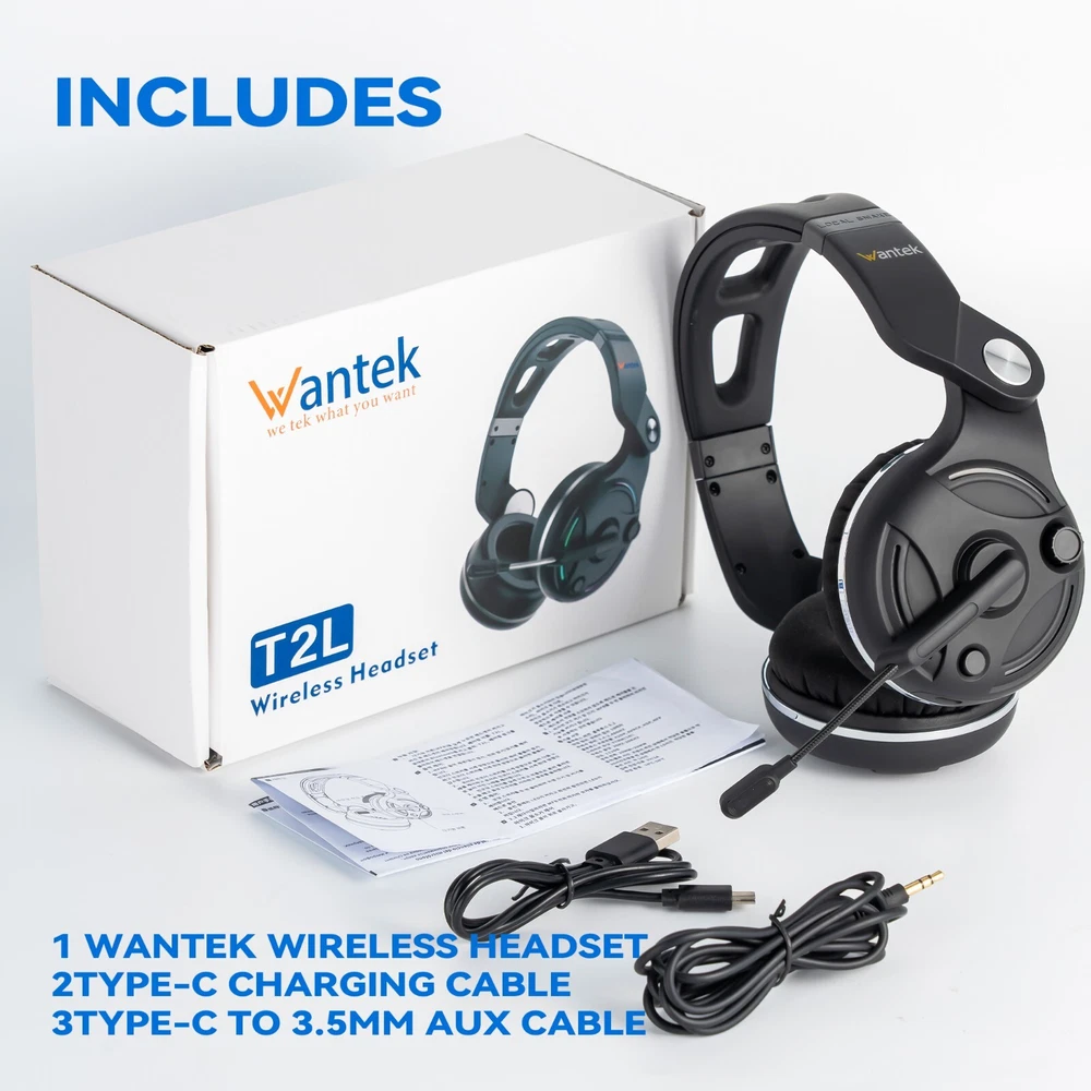 ✅【AI NOISE CANCELLATION】Wantek Wireless headset grant you unfettered freedom from disruptive noise, thanks to premium environment noise canceling microphone. Keep you sounding sharp and super slick on calls and virtual meetings, no matter where you are. Even when the kids are home, the subway's crowded, or the call center office is a little busy, they'll hear you, and not your surroundings. Unfold a more flexible way to work, with Wantek wireless headset with microphone for PC ✅【DUAL-CONNECTIONS】Connect to two devices simultaneously with Bluetooth 5.2 and instantly switch between them. Whether you're working on your laptop, or need to take a phone call, audio from your Bluetooth headphones will automatically play from the device you need to hear from ✅【48H LONG BATTERY LIFE】Designed to provide you with uninterrupted communication for extended periods. This wireless headset with microphone for PC delivers 48 hours of work time or up to 40 hours of talk time — all on one charge. Even with just one weekly charge, the bluetooth headset ensures you have a full 8 hours of talk time each day for your work shift. Say goodbye to the hassle of frequently charging your wireless headset for computer and enjoy the freedom to stay connected for longer ✅【Hi-Fi STEREO SOUND & NO DELAYS】The Wireless Headset features advanced lossless audio transmission technology, delivering crystal-clear with no delays. With binaural headsets, you can enjoy clearer conversations than with single-ear headsets. High-fidelity audio can also accurate reproduction of every detail in music and movies. Whether you're working or relaxing, this Bluetooth headset with microphone is the ideal choice for anyone who demands superior audio performance ✅【EXTREME COMFORT & EASILY MUTE】Wireless headset for work features an ergonomically adjustable headband filled. Specifically designed to reduce stress, our headbands and earcups contain ultra-soft memory foam for gentle cushioning. Meanwhile, the flexible earcups rotate to move whenever you do, and provide enough space for your glasses. Additionally, the mute button on the side of the earcup allows for easy silencing during voice chats or meetings, ensuring you only speak when ready to be heard DOUBLE CAVITY STRUCTURE The shell made of aluminum alloy is used as a layer,Provides a rigid structure that reduces noise FOLDABLE DESIGN You can easily pack this in your bag, backpack or suitcase. headphones wireless saves you storage space COMFORTABLE AND DURABLE Adjustable, padded headband ensure premium comfort even during long listening sessions Notes:Wantek T2L Wired & Wireless Bluetooth Headphones Over Ear In general, Bluetooth headphones should not exceed a volume of 100dB. To protect your hearing, the maximum volume of the Bluetooth headphones has been set to 95dB. Please protect your hearing by not listening to very loud music for too long Battery performance depends on the volume of the headphones For optimal noise isolation performance, the ear pads should sit directly over the ears and not slip out of place For the best sound quality and strongest noise isolation, please ensure that the right and left headphones are seated on the correct side respectively To avoid skin irritation, please clean and disinfect the headphones regularly and do not use lotions or skin care products when wearing the headphones. Do not wear the headphones over scars or skin irritations. The headphones should fit easily and comfortably, please do not fasten them too tightly. If wearing the headphones causes irritation or abnormalities, please stop using the device Included in delivery Included in delivery Wantek T2L Bluetooth Headphones One USB-C charging cable;One 3.5mm AUX cable One user manual