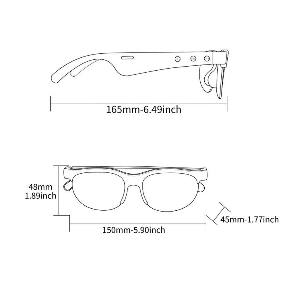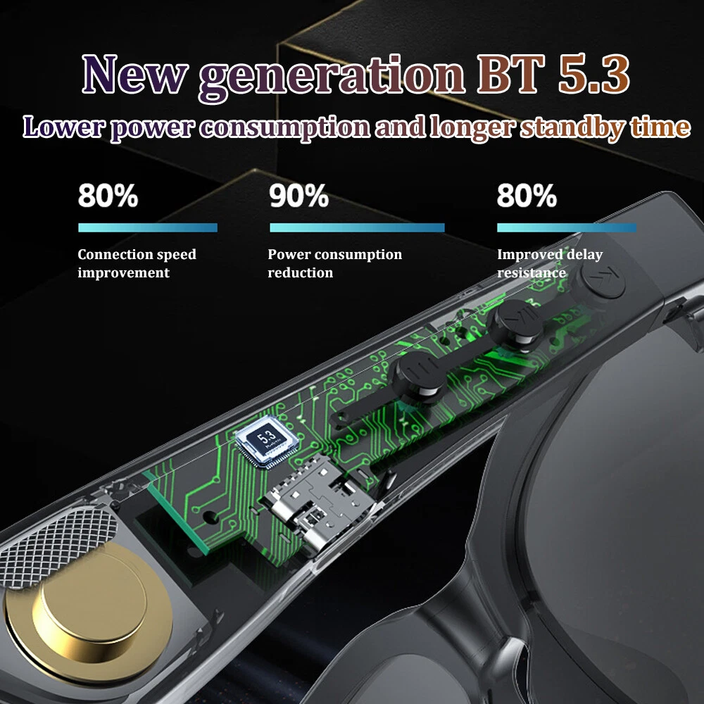Features: 1, Open listening experience / HD stereo sound / Bluetooth audio call / voice control. 2, IPX5 level professional grade dustproof and waterproof, effectively prevent the splash of domestic water, as well as brief water showers. 3, Plenty of power lasting battery life, with high capacity 80MAH * 2 dual batteries, 2 hours fast charging, standby for about 5 days, 5 hours of continuous calls, 5 days of continuous standby, 4 hours of continuous music playback, 2 hours fast charging. 4, Optical against blue light always protect the health of both eyes, protect your eyes from harmful blue light, high transmittance ground chromatic aberration, comfortable sense of sight, clear vision. Specification: Bluetooth: 5.3 Transmission distance: barrier-free 10 metres Input voltage: 5V Music time: 5 hours Standby time: 120 hours Battery capacity: 80MAH Package List: 1*bluetooth glasses+1*charging cable+1*manual On Feb 21, 2025 at 23:03:29 PST, seller added the following information: