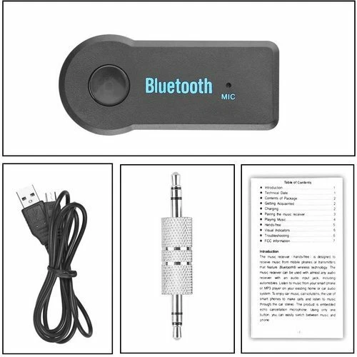 Wireless Bluetooth Receiver 3.5mm AUX Audio Stereo Music Home Car Adapter Kit Distinguished Features Bluetooth Audio Receiver : This music receiver (hands-free) is designed to receive music from mobile phones or transmitters that feature bluetooth wireless technology. This music receiver can be used with almost any audio receiver with an audio input jack, including automoblies. Listen to music from your smart phone or MP3 player on your existing home or car audio system. To enjoy car music, call solutions, the use of smart phones to make calls and listen to music through the car stereo. This product is embedded for echo cancellation microphone. Using only one button, you can easily switch between music and phone. Compatible With : For iPhone 3G, 3GS, 4, 4s, 5, 5c and 5s For iPad 1, 2, 3, 4, Air, Mini1 and 2 For Laptop and PC with bluetooth 2.1 and above For Samsung, HTC, etc, all other Android 2.1 (and above) devices with Bluetooth For Smart-phone with Bluetooth 2.1 & above Specifications : Blutooth standard: Blutooth V3.0+EDR, Class 2:33′ One Touch Connect Button For Easy Device Pairing Transmission distance: 10m Hands-free Stereo audio profile: A2DP Frequency: 2.4GHz Certified BQB, CE AND FCC 3.5mm stereo output inlet socket Sleep mode for power conversation Power supply: Chargers via mini-USB cable Up to 8 hours music playback or continuous Color : Black Size: approx.5.2cmx2.4cmx1cm/2.0”x0.9”x0.4′ Instructions (How To Use) : If this is the first time you use this device, please pair the device first To enter pairing mode, press and hold the ON/ OFF button for 5 seconds until both red and blue LEDs flash. Search for the music receiver on your mobile phone or compatible transmitter. Touch and hold one button to power on and it will automatically search for a compatible transmitter. No any codes to enter if connect with Apple or Android device. LED lights beneath the button indicate the device’s connection and charging status. The devices should now recognize each other and pair. The LED on the music receiver will slowly flash blue after successfully pairing. To complete pairing some devices require a pass key or code, please enter “0000”. Once successfully paired, the devices can be powerd off. To re-connect simply power them both on, no need to pair again. Note : If you wish to use the P music receiver with another transmitter, you must restart the pairing process with the new device from step one. After pairing the new transmitter, the old transitter will no longer be paired to the music receiver, you can have only one device connected at a time. If you have already matched before : ress and hold the ON/OFF button for 3 seconds until the blue LED light begins flashing. To turn off, press and hold the ON/ OFF button for 5 seconds. The red LED will light up, and then turn off. Note : Read the user guide of your transmitter or mobile phone to find out how to turn ON/ OFF Blutooth wiress technology. Package Include : 1x Bluetooth Receiver 1x Micro USB Power Cable 1x 3.5mm Stereo Inlet Socket 1x User Manual