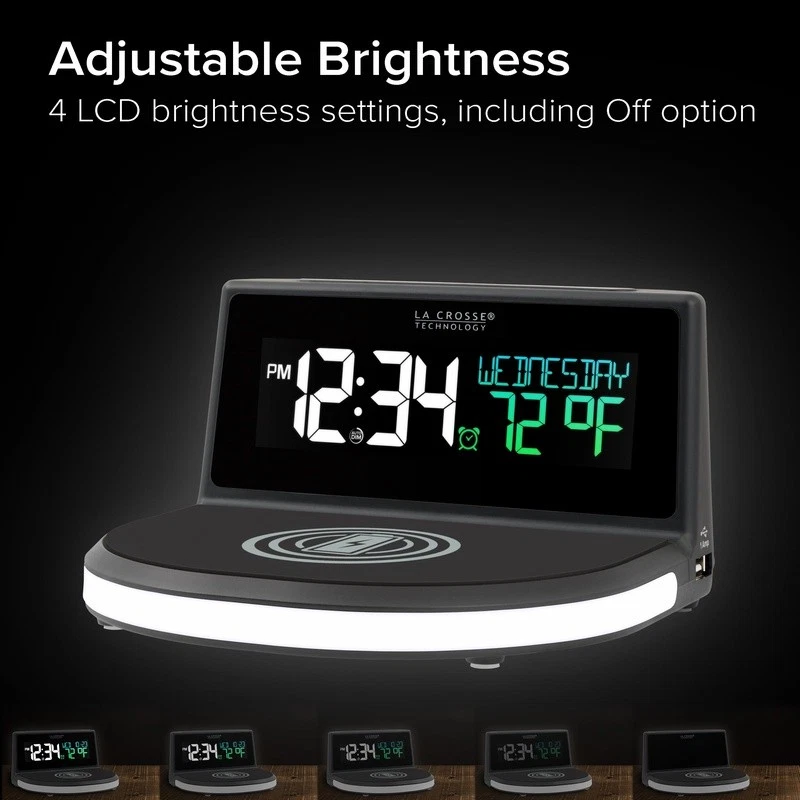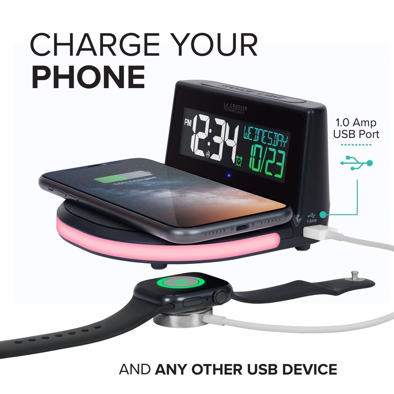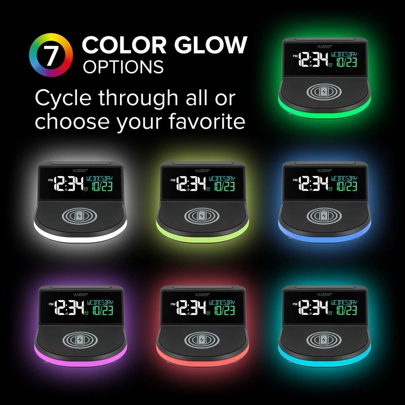 You may also like Atomic Analog Alarm Clock WWVB Time Sync Snooze Night Light Compact Portable New 26.12 USD 27.5 USD Free shipping 5% off Digital Alarm Clock Radio W/ USB Charging Dual Alarms & Soothing Sounds 30.38 USD 31.98 USD Free shipping 5% off Equity 3.75" Metal Quartz Analog Alarm Clock Snooze Backlight Silent hands New 22.95 USD 24.16 USD Free shipping 5% off LCD Travel Alarm Clock Self-setting Snooze Function Backlight Date Display New 17.27 USD 18.18 USD Free shipping 5% off Insta-Set LCD Alarm Clock W/ Snooze Backup Battery Day of Week Indicator New 23.86 USD 25.12 USD Free shipping 5% off Digital Travel Alarm Clock Fold-up Snooze Timer Backlight Battery Operated New 19.12 USD 20.13 USD Free shipping 5% off Triple Alarm Clock Digital Display Temperature Monitor Easy Set Nightstand Clock 14.75 USD 15.53 USD Free shipping 5% off Classic Twin Bell Alarm Clock Vintage Metal Loud Bell Easy Read Dial Backlight 21.93 USD 23.08 USD Free shipping 5% off Twin Bell Quartz Alarm Clock Analog Loud Classic Metal Black Dial Retro New 15.7 USD 16.53 USD Free shipping 5% off Kyoda Analog Alarm Clock Beep Snooze Quiet Sweep Luminous Hands Quartz Clock New 38.21 USD 40.22 USD Free shipping 5% off Analog Alarm Clock Beep Snooze Quiet Sweep Luminous Hands Quartz Mid-Century New 38.21 USD 40.22 USD Free shipping 5% off Digital Alarm Clock Battery Powered 5.9 Inch LED Snooze Function Home Decor Gift 23.53 USD 24.77 USD Free shipping 5% off Start and end your day with the Wireless Charging Alarm Clock with Glowing LED Base. Choose from 7 different colors ranging from soothing to energizing to set the right mood. Ensuring you wake up on time, a beep alarm gradually increases in intensity to ease you into a wakeful state. The wireless charging base powers your phone to fully charge, while you rest. Current time is easy-to-read day or night. Changeable views will show weekday, calendar month and date, or indoor temperature. Available from Adult to Senior, and Teen to Tween. Adjust brightness or schedule for optimal display. Also, offers an external USB charging port. Wireless charging for smartphone with 5W silicone base with LED charging alignment indicator light 7-Color changing accent glow base (settings: Color cycle; Color select) 12/24 Hour Manual Set Time Calendar (Full Week Day, Month/Date) or Indoor Temperature (F/C mode) Ascending alarm with snooze (duration settings: 5 to 120 minutes) Auto-dim option (pre-select the time you desire) Adjustable LCD brightness display: 4 intensity levels and off 1 Amp USB Charging Port Indoor Temperature (F/C mode) (toggles calendar location on LCD) Operates on 5. 0V AC adapter (included) and capacitor with short memory for power loss (auto 3 min backup) Age group: Adult, Senior, Teen, Tween You may also like Salmon Wet Dog Food Chopped Blend Vegetables Rice High Protein Adult 10oz 8 Pack 24.07 USD 25.34 USD Free shipping 5% off Queen Size Canopy Bed Frame Metal Sturdy Easy Assembly 4 Corner Stainless Steel 72.35 USD 76.16 USD Free shipping 5% off Round Storage Ottoman W/ Reversible Tray Lid Multi-Use Accent Furniture Indoor 75.6 USD 79.58 USD Free shipping 5% off 8 Pack Solar Post Cap Lights Outdoor Flickering Flame Garden Deck Lighting New 82.55 USD 86.89 USD Free shipping 5% off Raised Garden Bed Planter Box On Wheels W/ Drainage Vegetables Herbs Flowers New 89.53 USD 94.24 USD Free shipping 5% off Non-Slip Tufted Barstool Cushions 14"x14" Set of 2 Comfortable Polyester Pads US 32.47 USD 34.18 USD Free shipping 5% off Machine Washable Kitchen Rug Set Non Slip Absorbent Mats Soft Floor Mats 2 Pc US 77.04 USD 81.09 USD Free shipping 5% off Non-Slip Chair Cushions Set of 2 Comfort Durable Upholstery Indoor Use 33.78 USD 35.56 USD Free shipping 5% off Aluminum Steel Floor Jack 1.5 Ton Hydraulic Racing Jack Car Maintenance Tool New 129.58 USD 136.4 USD Free shipping 5% off Light Gray Botanical Cotton Flannel Deep Pocket Sheet Set King 4 Piece Cozy Soft 39.05 USD 41.11 USD Free shipping 5% off Super Bright LED Floor Lamp W/ Reading Light Dimmable Energy Saving Tall Brass 82.55 USD 86.89 USD Free shipping 5% off 24 Piece Stainless Steel Flatware Set Service 6 Durable Rust Resistant Cutlery 20.04 USD 21.09 USD Free shipping 5% off