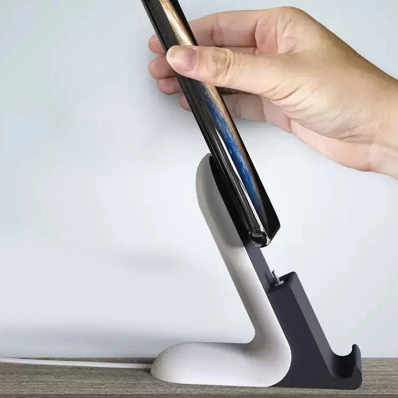 This charging stand is a game-changer—super sturdy silicone keeps my phone secure while I watch videos or text hands-free. Works with most cables and fits any phone, making it perfect for home, work, or travel. Love how convenient and simple it is!