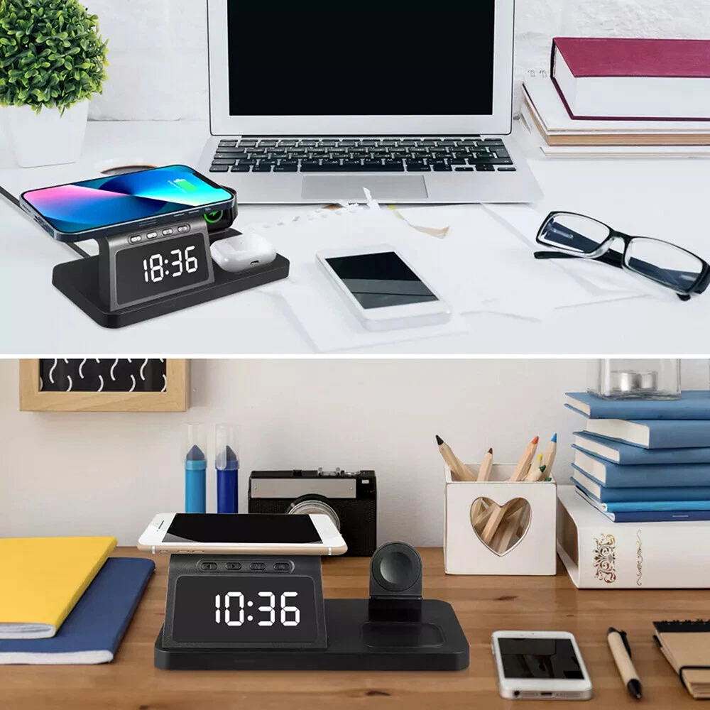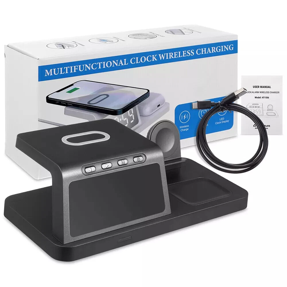 Picture Gallery Description Features: [5-in-1]:The 5-in-1 wireless charger can wirelessly charge up to 3 devices, you can also connect 1 device for wired charging. It includes night light and alarm clock. LED Clock Display】:Equipped with time display and alarm clock, this charger is very useful to keep on your desk. [Widely Used]:The 5-in-1 charging cradle can be used in the bedroom, kitchen, office and anywhere you like. 5-in-1 Design】: The wireless charging station can charge your phone, Apple Watch, and headphones at the same time, leaving your desk and bedside table tidy and organized without messy cords. For better charging experience, please use QC 3.0 power adapter (QC 3.0 adapter not included). 【Safe Charging】:The cordless phone charger provides temperature control and voltage protection as well as short circuit prevention to ensure safe and stable charging. This wireless charger provides you with a safe experience. Anti-slip silicone pads on the base and bottom protect your device from scratches and slips while charging. 【Universal Compatibility】:Apple charging cradle for most Apple devices. Compatible with iWatch series 8/7/6/SE/5/4/3/2/1; Compatible with AriPods Pro/3/2/1; Compatible with iPhone series. (Not compatible with Samsung watches). Compatible with iPhone 8/X/11/12/13/14 series, Samsung S10/S20/S21/S22; Note8/10/20/21 series; other Samsung series that support wireless charging and all other cell phone brands that support wireless charging. Attention: 1.For a fast charging experience, please use a 9V-3A or 12V-2A power adapter (adapter not included). 2.The watch charger is only for Apple Watch, it can't charge Samsung Watch or other brand watches. Specifications: *Product name: 5-in-1 wireless charger *Mobile phone output: 5W/7.5W/10W/15W *Watch output: 2.5W (max) *Headphone output: 3W (max) *Charging distance: 1-8MM *Charging efficiency: ≥75% *Product Material: ABS *Product color: black Package List: 1*5-in-1 wireless charger 1*Type-C cable 1*User Manual Attention: 1.Not included not include the power adapter! 2.Item is limited to charger only, excludes headphones, watch! 3. Due to manual measurement, please allow a difference of 1 cm error! 4. may vary according to light color or monitor tint! Shipping Policy Payment Policy Return Policy Shipping Policy 1. We only ship to the confirmed address provided by eBay. Please make sure your ebay address is 100% matches the address you would like us to ship to. If not, please let us know before we sent you the package, or we will not be responsible for any loss. Hope you could understand. 2. Orders will be processed instantly and dispatched within 1-2 business days except hoilday, so we do NOT accept any email/message note after you place orders. Payment Policy We accept PayPal only. We only ship item to your PayPal verified address. Please pay attention that import duties, taxes and charges are not included in the item price or shipping charges. These charges are the buyer's responsibility. Please check with your country's customs office to determine what these additional costs will be prior to bidding/buying. Return Policy 1. We offer 60 day money back or replacement guarantee. In addition, it allows customers to return new and unused products in their original factory condition for any reason within 60 days from the date of purchase. 2. Although we test each item and they are packed professionally, few item (less than 0.1%) might be damaged during the shipping. Please feel free to contact us within 4 days after you receive your package about replacement. 3. If you don't receive items over 35 days, please make sure to contact us before leaving any neutral or negative feedback. We'll try our best to help you solve the problem. If we authorized the return, customers will get an email with instructions for returning the item. Email will be replied within 24 hours on Chinese business hours. On Dec 22, 2024 at 19:14:44 PST, seller added the following information: