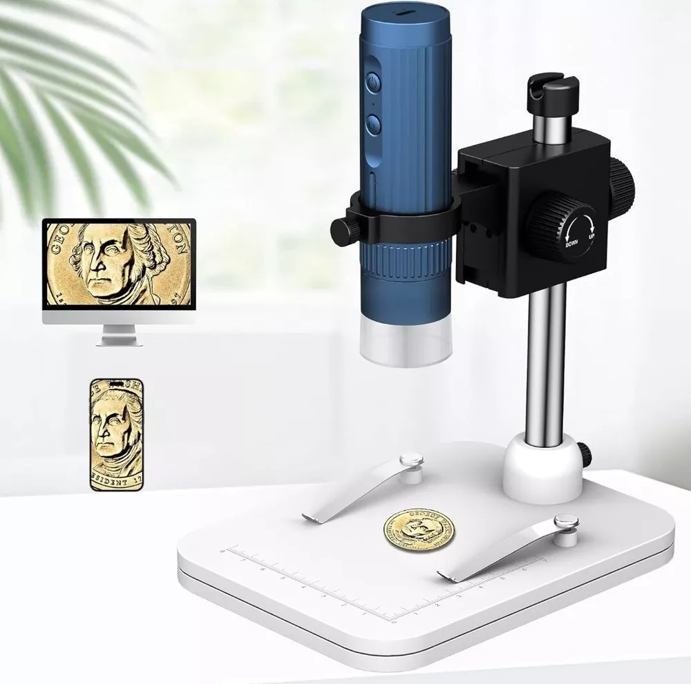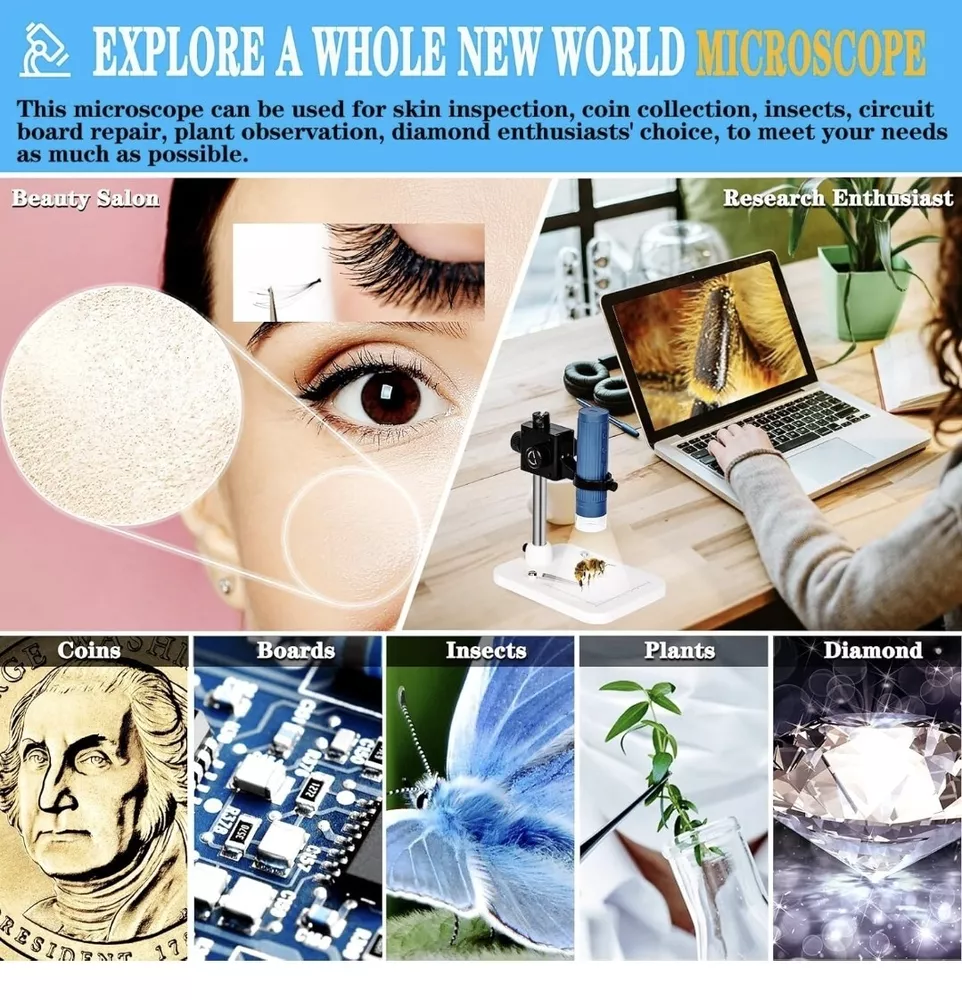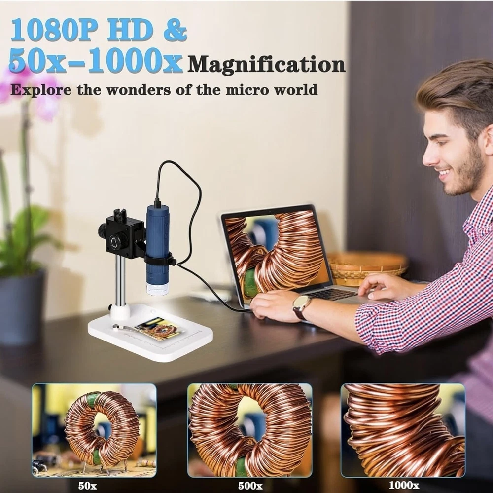 NO Shaking Upgrade Bracket: We have improved and upgraded the design to match a more stable USB digital microscope, which will not affect the focus of the microscope when shaking at any time during use. The base is equipped with a fixer to make the observation object difficult to move, which solves the problem of shaking for you. Roller adjustment precision focus, super easy to use. 50X-1000X Magnification Digital Microscope : Wireless digital microscope With 50X to 1000X magnification, you can easily and accurately examine small objects such as coins and hair. The actual magnification varies depending on the distance between the object and the camera and the observation. This electron microscope can also take pictures and record videos to record your wonderful journey! Adjustable 8 LED Lights: Eight adjustable LED lights are built into the wireless microscope to provide adequate lighting at three levels of brightness. You can easily use the dimmer button to control the brightness from dark to light. With superior detail and optimum sharpness, users' images and videos can improve the quality of sharpness. LED lights radiated by a diffuser are soft and do not startle the subject being observed. KMDES WiFi and USB Microscopes: Electron microscopes have 1000x magnification and resolution of 1080p/720p. Using either USB or WiFi, the microscope adjusts the object to the lens and turns the focus wheel to see fine details. It is portable and independent, with a rechargeable lithium battery inside, and can be observed outdoors for 4-5 hours, which is convenient and accurate. Microscope for Adults and Kids: This digital microscope is suitable for circuit board soldering, clock repair, textile industry, error coin identification, children's educational testing, biological observation (not suitable for cells), researchers, jewelry, stamps, plants, Qc inspection, etc. It is a popular and meaningful gift for children, students and amateurs. (Note: Not for serious professional biologists!) PC/Android Download: Mobile phone first scan the QR code of the user manual, enter the page are ios, Android (Mainland China), Android (Google Play), according to your cell phone system to choose to download. For IOS system, you can search for UniLab in the Apple Store. Computer download is to enter the URL https://www.weetool.net download, select UniLab for Windows.exe zip, and then unzip, and then install the UniLab software, after successful installation to connect the digital microscope