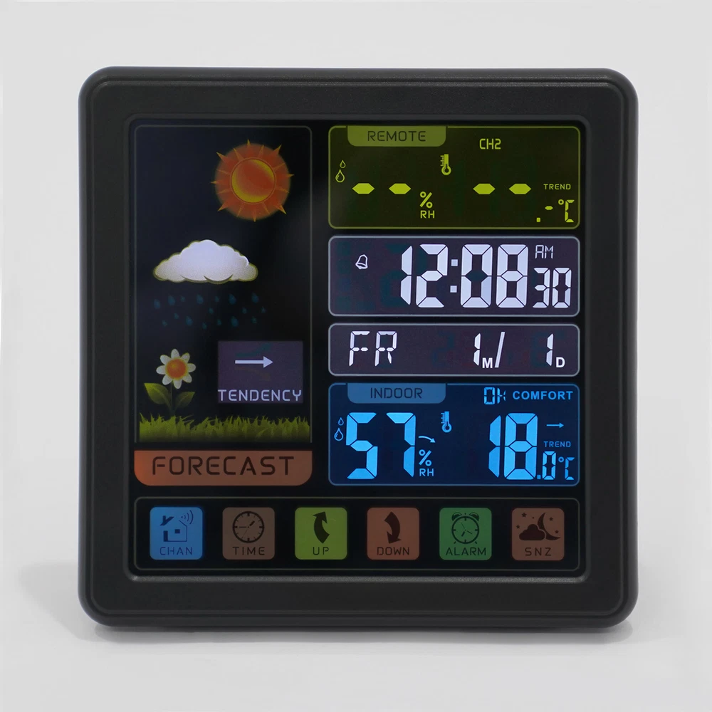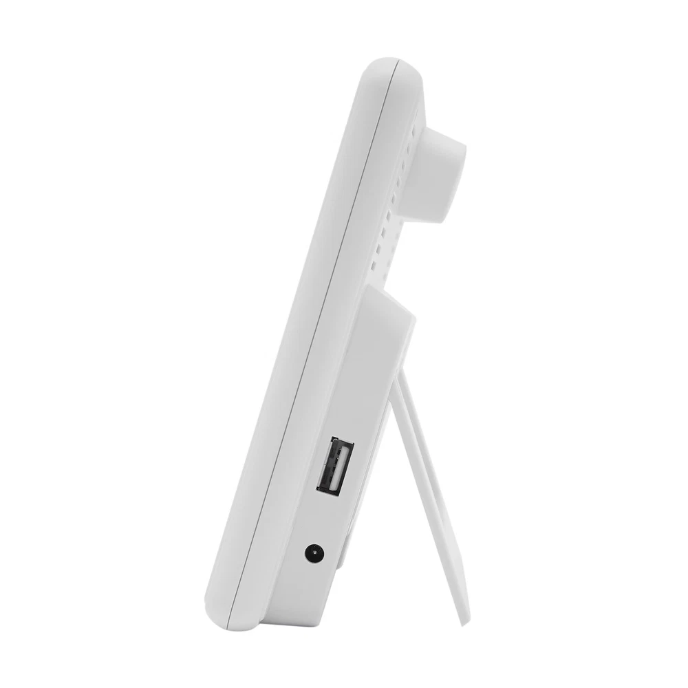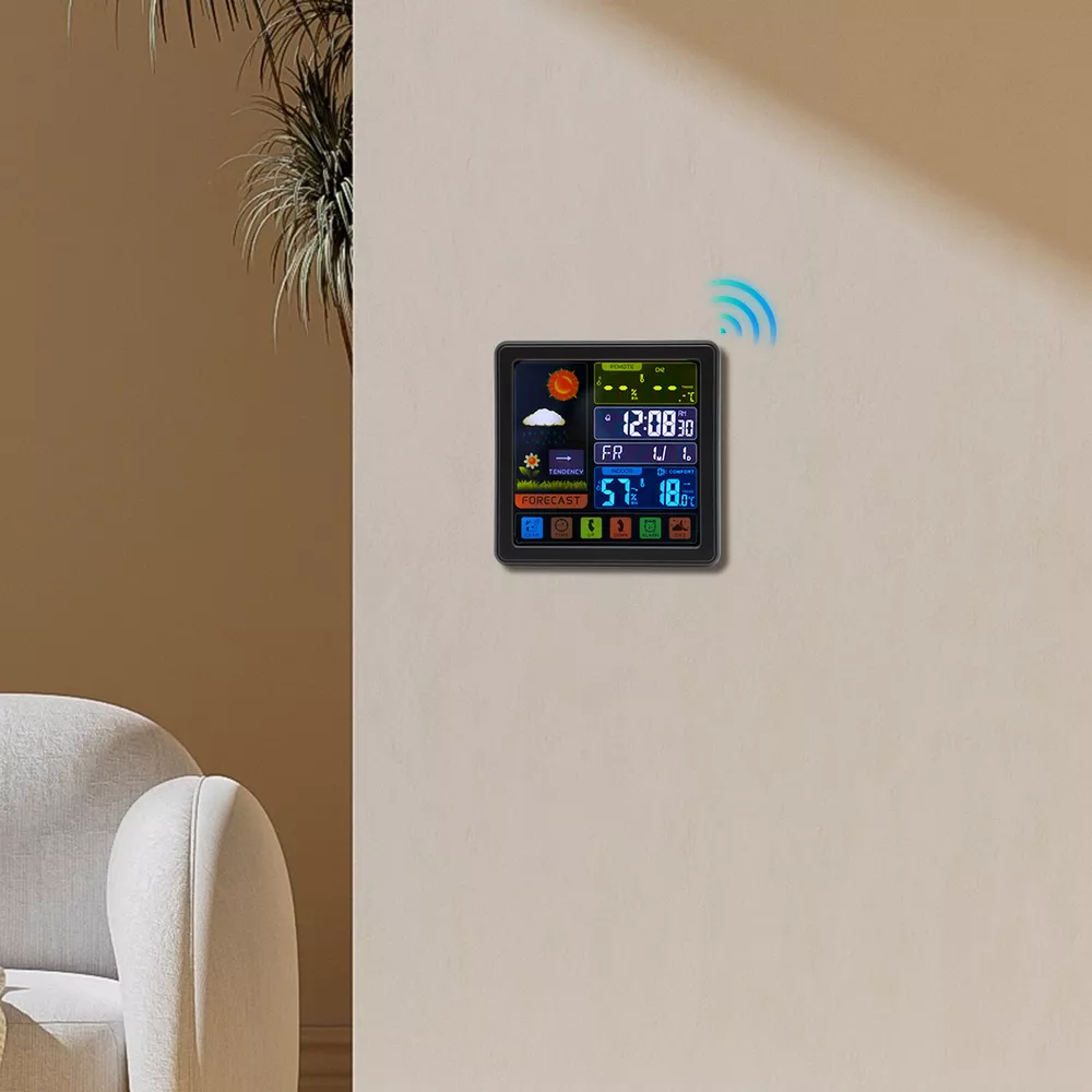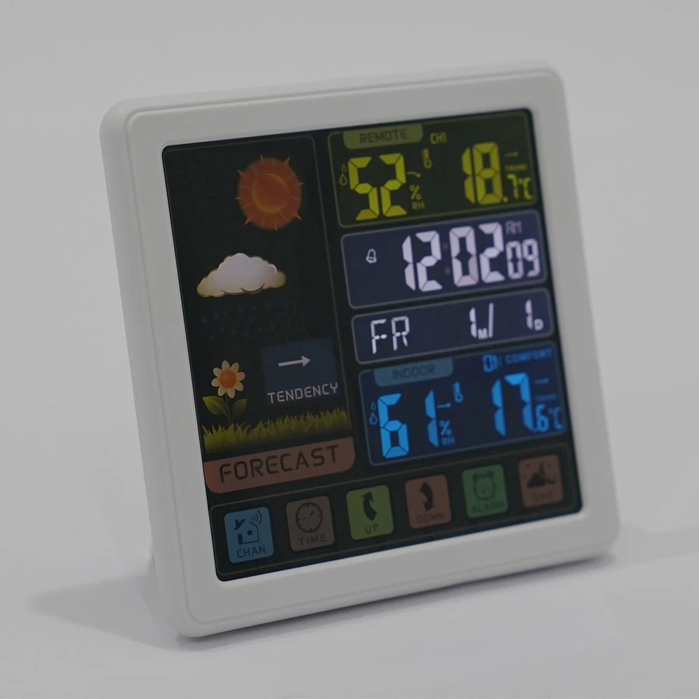 Specification Material: Plastic Color: Black / White Assembly Required: No Display Type: Digital USB Port Maximum Output: 5V 1A Sensor Battery Type: 2 * AAA ( Not Included ) Weather Station Battery Type: 3 * AAA ( Not Included ) Four-kind Weather Forecast: Sunny, Slightly Cloudy, Cloudy, and Rainy. 7 Languages of Weekday Display: EN - DA - ES - NE - IT - FR - GE Default Language: English Default Calendar: M-D (Month-Day) Cable Length: 1m/3.28ft Humidity Detection Range: 20%-95% Temperature Detection Range: Indoor Range: 0℃-50℃/32℉-122℉, Outdoor Range: -20℃-70℃/-58℉-158℉ RF Outdoor Temperature/Humidity Display: 3 Channels of RF Signal Package Included 1 * Weather Station 1 * Sensor 1 * Power Cable 1 * English Instruction Other Accessories for Assembly Digital Weather Station Indoor Outdoor Wireless Temperature Humidity Monitor LCD Digital Weather Station Indoor Outdoor Wireless Temperature Humidity Monitor LCD Description This weather station is designed with a touch screen to make it easier and faster to use. Its indoor and outdoor temperature format allows you to check all the weather information while lying in bed and know what to wear before you get up. With its calendar, alarm, and weather forecast, this product will be your caring butler! Specification Material: Plastic Color: Black / White Assembly Required: No Display Type: Digital USB Port Maximum Output: 5V 1A Sensor Battery Type: 2 * AAA ( Not Included ) Weather Station Battery Type: 3 * AAA ( Not Included ) Four-kind Weather Forecast: Sunny, Slightly Cloudy, Cloudy, and Rainy. 7 Languages of Weekday Display: EN - DA - ES - NE - IT - FR - GE Default Language: English Default Calendar: M-D (Month-Day) Cable Length: 1m/3.28ft Humidity Detection Range: 20%-95% Temperature Detection Range: Indoor Range: 0℃-50℃/32℉-122℉, Outdoor Range: -20℃-70℃/-58℉-158℉ RF Outdoor Temperature/Humidity Display: 3 Channels of RF Signal Calendar: 2001-2099 Year Display Type: LCD Sensor Transmission Distance: Open Distance: 100m/328.08ft; Effective Distance: 30m/98.43ft Gross Weight: 0.38kg/ 0.84 lbs Net Weight: 0.26kg/ 0.57 lbs Weather Station Size: 13.5*3*13.5cm/ 5.31*1.18*5.31 in Sensor size: 3.4*2*9.2cm/ 1.34*0.79*3.62in Package Size: 24*19*5cm/9.45*7.48*1.97 in Package Included 1 * Weather Station 1 * Sensor 1 * Power Cable 1 * English Instruction Other Accessories for Assembly Key Features High-quality Material: This product is made of high-quality plastic, with high hardness, corrosion resistance, anti-oxidation performance, and long service life. Wireless Sensors: The digital weather station with 3 channels, an effective transmission range of up to 98.43 feet and an open transmission range of up to 328.08 feet can monitor a wider range of weather. This high-tech RF sensing technology makes the measurement data more accurate. Multi-function: This product combines a calendar, alarm clock, weather forecast, temperature, and humidity detection functions into one. It also has a 5-minute nap function, making the alarm clock more humane. The child lock function prevents children from accidentally changing the setting. Flexible Installation: The hanging hole and foldable bracket on the back of the product make it placed directly on the desktop or hung on the wall. Multiple Charging Methods: The weather station can be powered by batteries (3*AAA) and a power cord (DC 5V), which provides more convenience for your work on the go. Easy to Use: The touch screen design allows you to adjust the data with just one click. The 1.34*0.79*3.62in weather station display with a backlight allows you to easily read data at all angles and distances, even at night. Ideal Gift: This product is an ideal gift for birthdays, Christmas, Mother's Day, Valentine's Day, Father's Day, or for people who love outdoor activities. Good Customer Service: Communication is the best way to solve problems. If you encounter any problem after purchase, please contact us in time before opening or unpacking the box. We will do our best to solve the problem for you. Details Tuyere: The multi-tuyere design makes the product's air intake area larger, thus making the measurement data more accurate. One-touch Conversion: This product can convert Celsius and Fahrenheit degrees and 12/24 hour system with one easy touch. Application This product is applicable to a nursery, office, incubator, greenhouse, garden, wine cellar, basement, animal aquarium, etc. Notes The batteries are not included in the package. Under natural ventilation conditions, the weather forecast will be very accurate. However, there may be errors indoors, especially in air-conditioned rooms. In order to obtain accurate humidity readings, it is recommended to install the outdoor wireless sensor in the shaded area of the wall facing north to avoid direct sunlight and radiant heat sources and pay attention to water and rain prevention. Please allow the slight color difference caused by the shooting light and the 1-3 cm error due to manual measurement, and make sure you do not mind before ordering. Payment Delivery details Terms of sales About us Contact us Payment We accept ebay payment 。 Fees such as import duties, taxes are not included in the item price or shipping costs. These charges are the buyer's responsibility. Delivery details Shipping: 2-9 working days to: USA Terms of sales We maintain high standards of excellence and strive for hundred percent customer satisfaction. Feedback is very important to us. We hope that you contact us immediately before you give neutral or negative feedback, so that we can address your concerns. It is impossible to address issues if we do not know about them! About us Your satis faction is our ultimate goal. We work hard to earn your trust and future business. Our certified technicians have tested each item before shipping. The unit comes with 1 year limited warranty on all manufacturing defects. a) If you receive a defective item, you may return it or ask for 