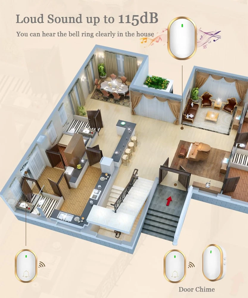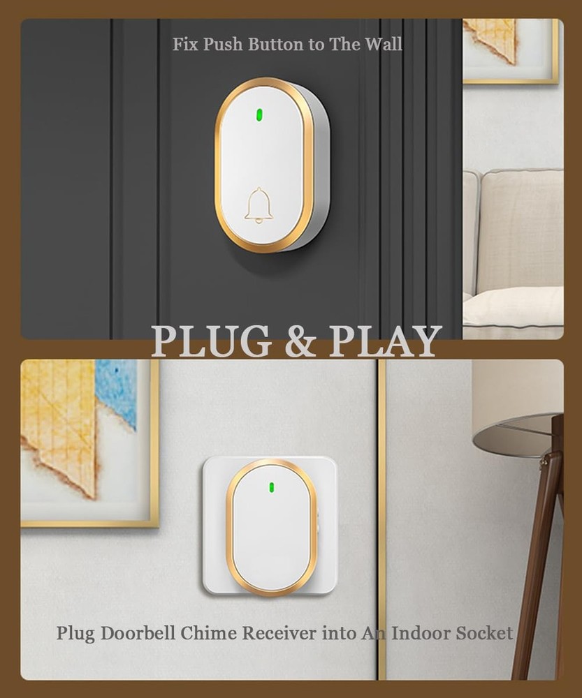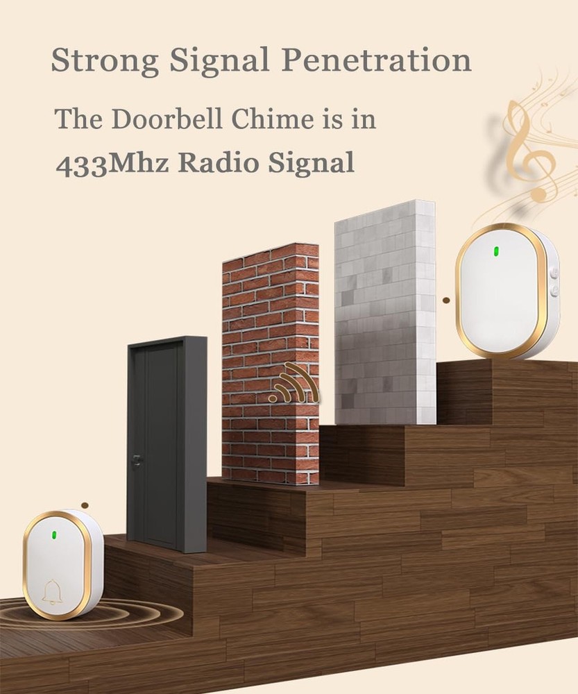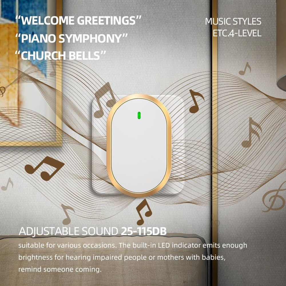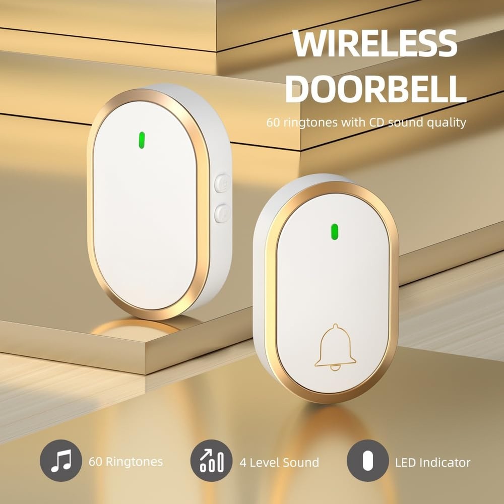This wireless doorbell is a game-changer! The 1000ft range is impressive, and I love the 60 chime options—no more missing deliveries. The waterproof design and LED indicator are great bonuses, and the volume settings are perfect for any home. Easy to install, works flawlessly, and looks sleek in white and gold. Highly recommend for anyone needing a reliable, long-range doorbell!
