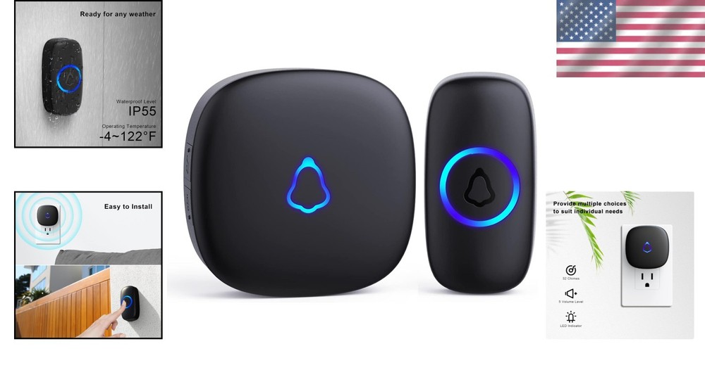 Easy Install Wireless Doorbell - 58 Melodies, Waterproof & Long-Range Design ‹ › ‹ › ‹ › ‹ › ‹ › ‹ › ‹ › ‹ › ‹ › Easy Install Wireless Doorbell -58 Melodies, Waterproof & Long-Range Design Features: Pre-paired for easy installation - Plug and play in under 1 minute, no wiring required! Extra-long range of up to 1000 feet in an obstacle-free environment. 58 selectable melodies including holiday tunes with 5 adjustable volume levels. Supports customizable configurations: Choose 2 buttons with 1 receiver, or 1 button with multiple receivers. Weather-resistant design with an operating temperature of -4°F to 140°F, ensuring -round performance. Durable ABS material is fire and flame resistant, with dustproof and waterproof ratings. Optimized circuit design for energy efficiency, allowing up to 3 of battery life. Benefits: Effortless installation for immediate use Reliable performance with excellent signal range and anti-interference technology Customizable options to match your home and lifestyle Durable construction to withstand various weather conditions Stylish design that enhances your home's aesthetic appeal Low maintenance with long-lasting battery life Why choose our Easy Install Wireless Doorbell? Experience the ultimate convenience in home entry notifications with our Easy Install Wireless Doorbell. Designed for effortless installation and packed with features, this stylish doorbell not only lets you choose from 58 melodious tunes but also ensures you won't miss a visitor with an impressive 1000-foot range. Weather-resistant and energy-efficient, it’s built to perform in any condition, providing you the peace of mind you deserve. Elevate your home’s welcoming atmosphere today—choose our wireless doorbell for a sophisticated, practical solution. Shipping Free & Fast Shipping - We offer free shipping to most of the USA with a normal delivery time of 3-7 days. However, due to the current situation, additional delivery time (up to 3 weeks) may be required for some items. Alternative Carriers - We may use alternative carriers (e.g. USPS, FedEx, UPS, etc.) to ensure your package arrives safely and on time. Due to the use of multiple carriers, we are unable to provide a tracking number automatically. Handling Time - Orders are processed and shipped within 1-2 business days of receiving cleared payment. Shipping Restrictions - Shipping to Alaska, Hawaii, Puerto Rico, Guam, and other US territories may incur shipping charges or delivery restrictions. Please contact us before ordering, or your order can be refunded/cancelled. State Restrictions - There may be restrictions based on your state of purchase. For example, certain items may not be shipped to California due to state regulations. Contact for Tracking Updates - If you require tracking updates or have any concerns about the delivery of your order, please feel free to contact us, and we will be happy to assist you. Return 30-Day Hassle-Free Returns - We want you to be completely satisfied with your purchase. If you are not, you can return the item within 30 days of receiving it for a full refund or exchange. Easy Return Process - To start a return, simply contact us and we will provide you with a prepaid return shipping label and detailed instructions. Restocking Fee - There are no restocking fees for returns. However, the buyer is responsible for return shipping costs if the return is not due to a seller's error. Refund Processing Time - Refunds will be processed within 5 business days of receiving the returned item in its condition. Payment We accept all major credit cards, PayPal, and Apple Pay for your convenience. Your payment information is secure and encrypted to ensure a safe and seamless transaction. Please complete your payment within 3 days of purchase to avoid any delays in shipping. Feedback Your feedback is extremely important to us. We strive to provide the best products and customer service possible. If you are satisfied with your purchase, please take a moment to leave us a positive review. If you have any concerns or issues with your order, please contact us before leaving negative feedback. We are committed to resolving any problems and ensuring your satisfaction. Contact Us If you have any questions or concerns, please feel free to out to our customer support team. You can contact us through the eBay messaging system. We are available Monday to Friday, 9:00 am to 5:00 pm EST, and we will do our best to respond to your inquiry within 24 hours. Buy it now and enjoy a pleasant shopping experience! Voltage: 120 V Unit Quantity: 0.32 oz Material: Plastic,ABS Features: Waterproof,Adjustable Volume,Colorful LED,58 Chimes,Memory Function,Energy-saving Power Source: Battery,Wall Plug-In Items Included: Screws,Transmitter,Plug-in Receiver,Adhesive Tape,Anchors,User Manual Suitable For: Home,Classroom Type: Wireless Doorbell Connectivity: Wireless Number of Batteries: 1 Color: Black Finish: Matte Item Weight: 0.32 oz Style: Modern Button Material: Plastic Button Shape: Square Shape: Square