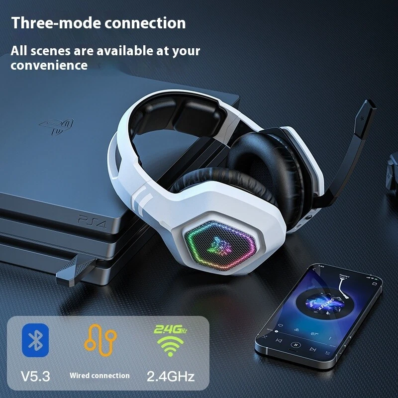 Product information: Color: black, white Transmission range: 10 meters Functions: wireless charging, call function, music support, e-sports low latency Material: PC ABS Size: 192X97 X 200mm Packing list: Headset X 1PC Audio cable X 1PC Charging cable X 1PC 2.4G receiver X 1PC Product Image: