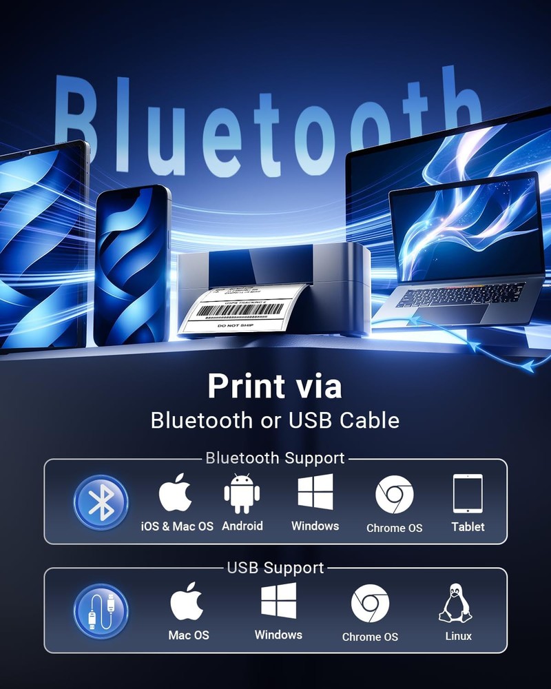 Bluetooth Thermal Shipping Label Printer, Wireless Grey Description Features: Upgraded 245BT Bluetooth Shipping Label Printer - Quick, Simple, and Affordable! The thermal shipping label printer 4x6 offers both Bluetooth and USB connectivity options. Leave behind the old-fashioned printing methods and step into the future of printing technology. The Bluetooth connection is compatible with iOS, Android, Mac OS, Windows and Chrome OS. If you favor a USB connection, this shipping label printer is also compatible with Windows, Mac OS, Chrome OS, and Linux system Quick Printing - With this bluetooth label printer 4x6, you can print from virtually anywhere! Capable of printing at a speed of 150 mm/s, the Bluetooth thermal shipping label printer can generate up to 72 sheets of 4x6 labels every minute. It's the ultimate choice for your labeling needs Compact Design and Robust Quality - The thermal label printer 4x6 is lightweight, weighing just 1.59 lbs, with dimensions of 3.14"D x 8.38"W x 3.7"H. Its compact size allows it to fit easily in your backpack. Each product undergoes rigorous quality inspection before leaving the factory, ensuring reliability and durability Comprehensive Product Tutorials and Support - If you have any questions or concerns about our thermal shipping label printers, please refer to our detailed operating manuals and video tutorials to resolve the issue easily. Whether you run a small home-based business or a large e-commerce warehouse, you can effortlessly manage high-volume printing needs, making your print jobs more efficient and manageable Product Details: Product Dimensions: 3.15"D x 8.35"W x 3.7"H Controller Type: Windows & Mac OS & Chrome OS, Android & iOS Printer Media Size Maximum: 4 x 6 inches Included Components: 1 * Power Cord & Adapter, 10 * 4x6 Shipping labels, 1 * USB-C Adapter for MAC OS, 1 * Quick Start Guide for label printer 4x6, 1 * PM-245BT Thermal Shipping Label Printer Print media: Labels Scanner Type: Portable Max Input Sheet Capacity: 500 Compatible Devices: Smartphones, PC, Tablets, Laptops Maximum Color Print Resolution: 203 dpi Sheet Size: 4 x 6 Inches Maximum Black and White Print Resolution: 203dpi Dual-sided printing: No Max copy resolution black-white: 203dpi Duplex: Automatic Hardware Interface: USB Resolution: 203 x 203 dpi Additional Printer functions: Print Only Control Method: App Number of Drivers: 2 Processor Count: 1 Series Number: 245 Number of USB 2 Ports: 1 Total USB Ports: 1 Model Series: Bluetooth Shipping Label Printer 4x6 Specific Uses For Product: Office, Enterprise, Home Printer Ink Type: Bluetooth thermal Shipping Label Printer Item Weight: 1.59 pounds Item model number: 245BT Bluetooth Shipping Label Printer Manufacturer: WCZ Country of Origin: China Brand: WCZ Connectivity Technology: Bluetooth, USB Printing Technology: Thermal Special Feature: Thermal Print Technology (No ink & No toner), Upgraded 245BT Bluetooth Shipping Label Printer, Easy to Set up, Print Clearly (203 dpi), Automatic Calibration Labels Thermal Print Technology (No ink & No toner), Upgraded 245BT Bluetooth Shipping Label Printer, Easy to Set up, Print Clearly (203 dpi), Automatic Calibration LabelsThermal Print Technology (No ink & No toner), Upgraded 245BT Bluetooth Shipping Label Printer, Easy to Set up, Print Clearly (203 dpi), Automatic Calibration Labels See more Color: Grey Model Name: 245BT Thermal Shipping Label Printer 4x6 Printer Output: Monochrome Maximum Print Speed (Color): 72 ppm Max Printspeed Monochrome: 72 ppm Item Weight: 1.59 Pounds Handling We will ship all orders within 3 business day of payment. Delivery We take pride in offering fast and reliable delivery for your orders! We are committed to getting your products to you as quickly as possible. Generally, we would like to inform you that all orders will be delivered to you within 1-3 business days after processing.However, in some cases, delivery times may vary depending on the buyer's location. Especially in remote or rural areas, the expected delivery time may be extended. In such situations, we do our best to ensure that your order reaches you as quickly as possible.If there are any delays, we will be happy to contact you to explain the situation. Our goal is to enhance your satisfaction with our fast delivery times. We work diligently to ensure that your order arrives safely.Trust us and enjoy our speedy delivery! Return Policy All items qualify for returns within 30 days of receipt. Buyer is responsible for return shipping on any item that is not damaged. Feedback We take our reputation seriously, we buy and sell online, so we understand the value of trust. If you are unsatisfied with your order, please contact us and we will work with you to resolve it to your satisfaction.
