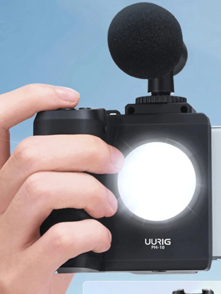 Wireless Handle G Rip Phone Holder Stabiliser for Smartphone Remote Control LED This product data sheet is originally written in English. Introducing the UURIG PH-10 Wireless Handle G Grip Phone Holder Stabilizer, designed specifically for smartphone enthusiasts and content creators. This versatile stabilizer is perfect for vlogging, live streaming, and capturing high-quality videos with ease. The handle grip, featuring a clamping width of 58-66mm, is compatible with most smartphones on the market, allowing you to enhance your shooting experience by providing increased stability and weight distribution. Whether you are filming a quick vlog or a professional video, the PH-10 ensures a smooth operation with its ergonomic design, making it comfortable to use for extended periods. This innovative stabilizer comes equipped with a detachable wireless remote control, enabling you to operate your smartphone from a distance of up to 30 meters. With just a click, you can take photos or start and stop video recording seamlessly. Additionally, the built-in LED fill light offers three adjustable brightness levels, ensuring you always look your best in front of the lens. The inclusion of a cold shoe mount allows for the attachment of external microphones, elevating the audio quality of your recordings. The compact and lightweight design makes it easy to carry, and the 1/4 inch screw hole at the bottom provides the option to mount it on a tripod or selfie stick for added stability. Key Features: - Universal compatibility with smartphones ranging from 58-66mm in width. - Wireless remote control with a 30-meter effective range for convenient operation. - Built-in LED fill light with 3 brightness levels for enhanced lighting in your videos. - Cold shoe mount for attaching microphones, improving audio clarity. - Lightweight and portable design, suitable for various shooting scenarios. UURIG PH-10 Wireless Handle G rip Phone Holder Stabilizer for Smartphone Vlog Remote Control 1/4"LED Light for iPhone Android Features: 【Universal Phone Handle Grip】 Featuring 58-66mm clamping width, the handle grip is compatible with most smartphone on the market. You can use the handle grip to increase the holding weight and stability of smartphone, one-hand operate and stable to use. 【With Wireless Remote Control】 With a detachable remote control for more flexible wireless operation and about 30M effective control range. Just click the camera button to control the phone to take pictures, and enter the recording interface, then click the button to start recording, click again to stop recording. What's more, Android phones can achieve Zoom In/ Zoom Out function by the remote control. 【Built-in LED Fill Light】 The handle grip has a LED fill light in the front side, which provides you with soft white light to make you look more beautiful before the mobile phone lens. Supports 3 levels adjustable brightness and built in rechargeable lithium battery. 【With a Cold Shoe Mount】 The top cold shoe mount allows you to install a microphone to pick up more clear sound and make your video recording more professional. 【Multi-scene Use】 Compact and lightweight, easy to carry around. With a 1/4 inch screw hole at the bottom, the handle grip not only can be hold by one hand, but also can be installed to desktop tripod or selfie stick for more stable usage. Specifications: Brand: UURIG Model: PH-10 Material: ABS + Rubber Clamping Width: 58-86mm Wireless Control Distance: about 30M Charging: 5V/ 1A Type-C Item Size: 8.2 * 7.8 * 5.3cm/ 3.2 * 3.1 * 2.1in Item Weight: 130g/ 4.6oz Packing List: 1 * Phone Handle Grip 1 * USB Charging Cable Introducing the UURIG PH-10 Wireless Handle G Grip Phone Holder Stabilizer, designed specifically for smartphone enthusiasts and content creators. This versatile stabilizer is perfect for vlogging, live streaming, and capturing high-quality videos with ease. The handle grip, featuring a clamping width of 58-66mm, is compatible with most smartphones on the market, allowing you to enhance your shooting experience by providing increased stability and weight distribution. Whether you are filming a quick vlog or a professional video, the PH-10 ensures a smooth operation with its ergonomic design, making it comfortable to use for extended periods. This innovative stabilizer comes equipped with a detachable wireless remote control, enabling you to operate your smartphone from a distance of up to Brand phone Camera Type Phone Holder package Yes origin Mainland China Connectivity Wireless model Ulanzi CG01 Features LED photography accessories type Creator Accessories choice yes Mounting Type Grip