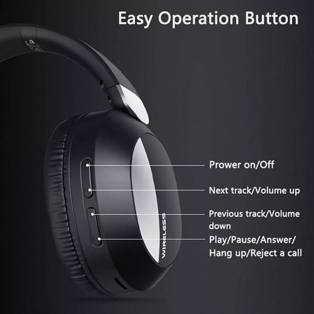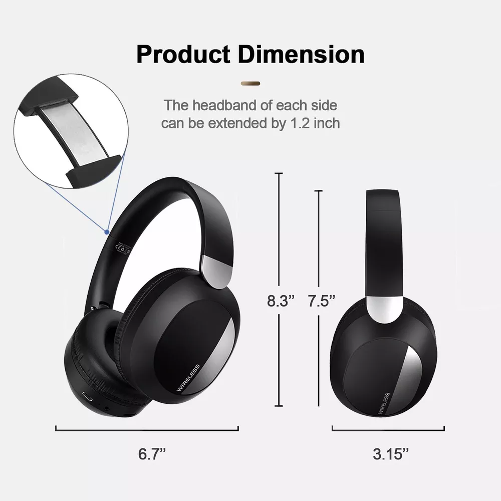 Features: -100% brand new and high quality. -It use Bluetooth V5.3 technology, delivering high speed and stable transmission. -It is equipped with soft PU skin materials over the ear, feel lightweight and contribute to your ear protection. -It has multiple playback modes, such as Bluetooth connection, 3.5mm audio cable, allowing you to enjoy endless music. -This is not only a Bluetooth headset, but also a wired headset. With the included cable, you can still enjoy favorite music when the battery runs low. -Foldable and adjustable headband length, soft ear cushion, easy for storage, and comfortable to wear for a long time. -Also, built-in microphone enables hands-free calls, delivering clear and real talking sound. -Button Function: Answer/hang up the call, play/pause music or change volume. -Strong compatibility, IOS/Android universal,it could be compatible with the bluetooth enabled devices. Specification: -Bluetooth Version: V5.3 -Operation Range: 10 Meters -Speaker Unit: 40mm -Frequency Response: 20Hz-20kHz -Impedance: 32Ω -Sensitivity: 108±3dB -Music Time: about 8 hours -Charging Time: about 2-3 Hours -Charging Port: USB Type C Package Included: 1 x Bluetooth Headphone 1 x USB Type C Charging Cable 1 x 3.5mm Audio Cable 1 x User Manual