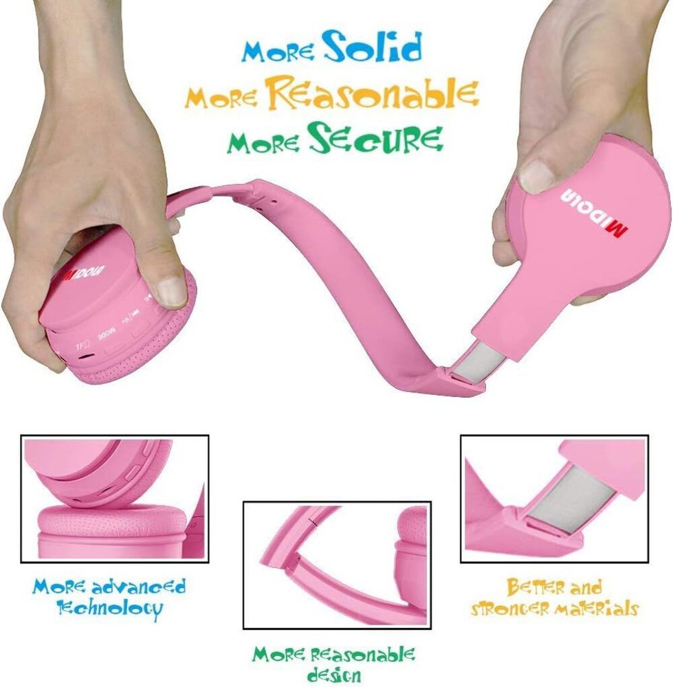 These headphones are perfect for kids—long battery life, safe volume limits, and a comfy over-ear fit. My child loves the pink color and foldable design for school and travel. Bluetooth 5.3 ensures stable connection, and the wired option is a great backup. Highly recommend!