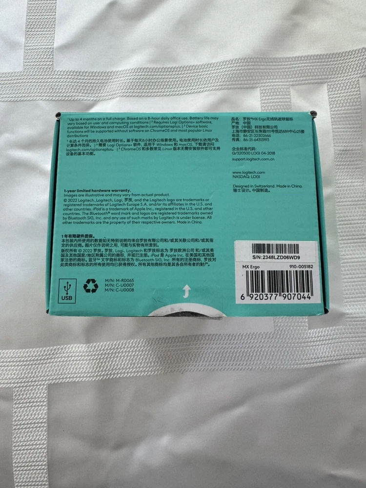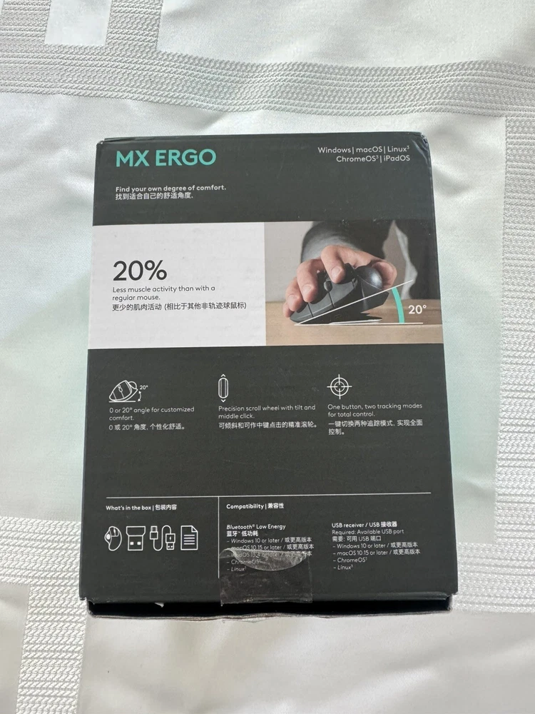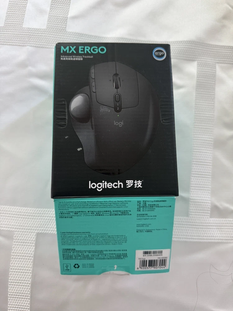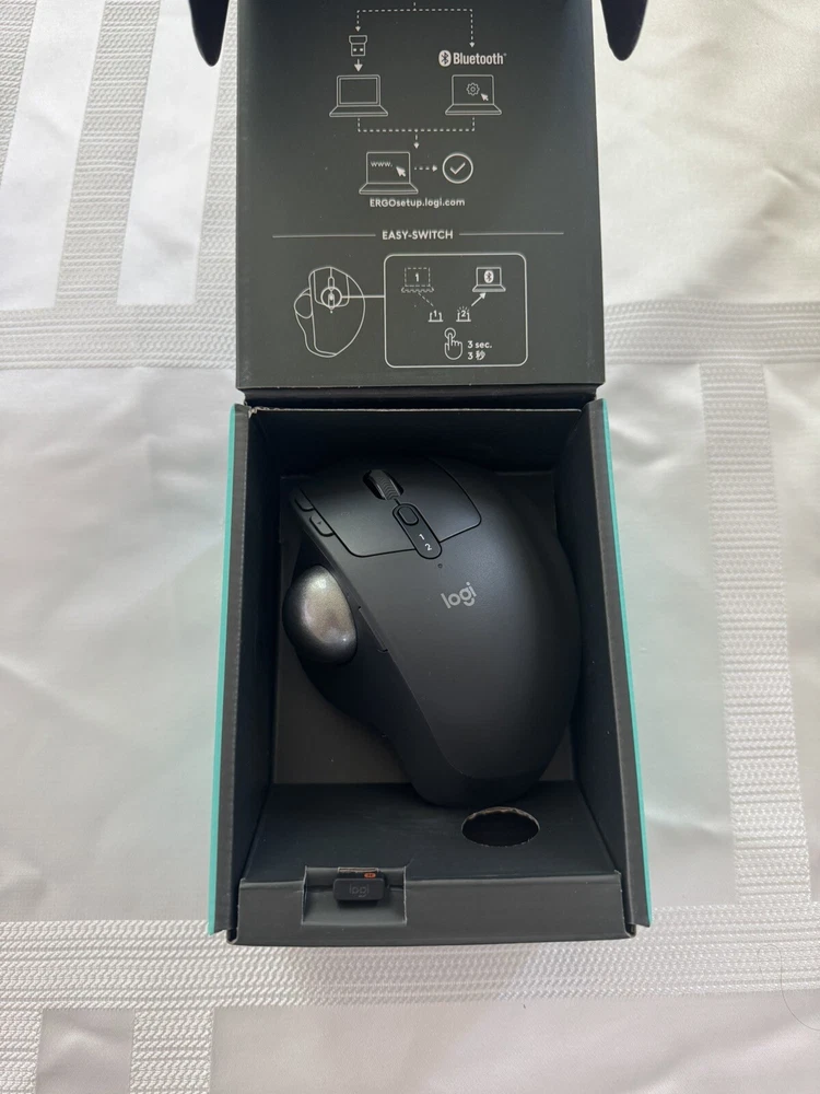 New open box Logitech MX Ergo Wireless Trackball Mouse, Ergonomic Design, Move Content Between 2 Windows and Apple Mac Computers (Bluetooth or USB), Rechargeable