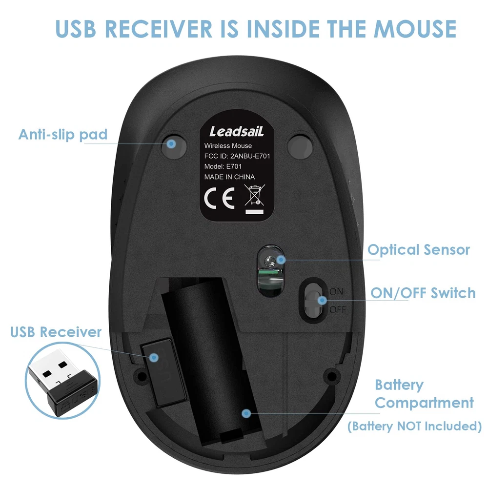 【Silent Click Noiseless Mouse】Would you like to do your job without missing a sound or disturbing your environment? Choose quiet mice; you will enjoy the same click feeling with over 90% less click noise. 【High Precision LED Mouse】Would like to take full control of your every aim with perfect tracking? Choose optical LED wireless mouse. Featuring a 1600 DPI, the laser-grade engine ensures smooth cursor control and precision tracking on virtually any surface. 【Plug and Play Travel Mouse】Plug and go ready along with the Nano Receiver stored in the battery compartment, USB wireless travel mouse works with Windows, Mac, Chrome OS or Linux-based computers of Notebook, PC, Laptop, Computer, Macbook. 【Portable Slim Mini Mouse】The slim mini mouse adopts shapely, domed design for giving your palm plenty of support and seamlessly fits in your hand, so you can work or play comfortably for long hours. 【Energy Saving Mobile Mouse】mobile mouse keeps going with months battery life of power on a single AA battery(Not included in the package). Automatic sleep mode and an On/Off switch save power, (Battery life may vary based on use and computing conditions.)