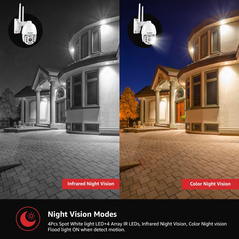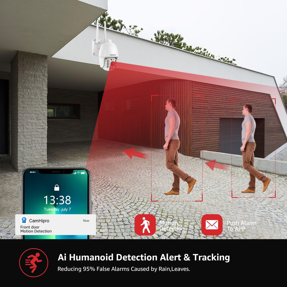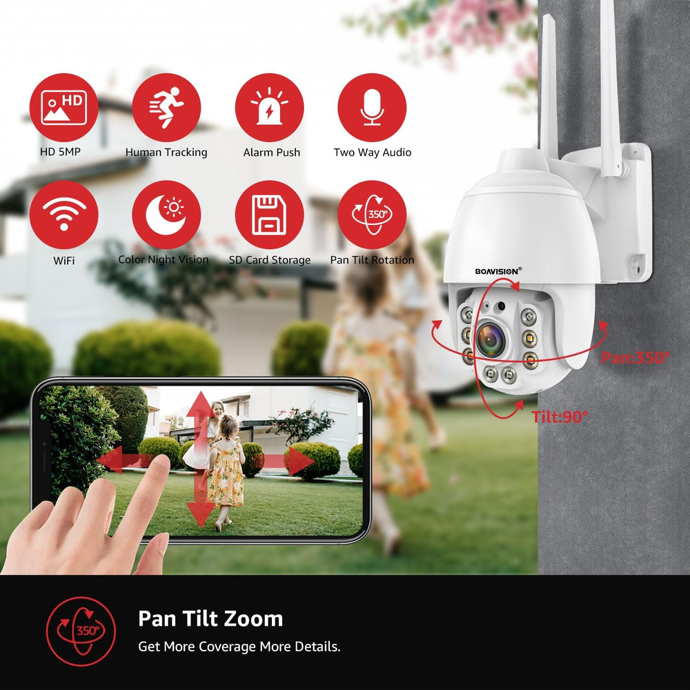 Store New Arrivals Add to Favorite View Feedback Contact Security Cameras Wireless Outdoor,Home Security Surveillance Camera System,360° View Wifi Pan Tilt,5Mp Floodlight Color Night Vision,Motion Detection Tracking,2 Way Talk,Sd Card Storage Description Batteries Required? No Wireless Communication Technology Wi-Fi Item dimensions L x W x H 6.3 x 4 x 3.8 inches Number of Items 1 Mounting Type Wall Mount Video Capture Resolution 5 MP Product Dimensions 6.3 x 4 x 3.8 inches Recommended Uses For Product Surveillance Compatible Devices Smartphone Room Type Living Room, Study Room gb, Hallway Item Weight 1.81 pounds Effective Still Resolution 5 MP Alert Type Motion Only Connectivity Protocol Wi-Fi Controller Type Android Video Capture Format MPEG-4 Size 5MP 【Floodlight Full Color Nightvision】This Security Cameras wireless Outdoor are equipped with ordinary black and white infrared LED lights and floodlight LED lights, which can provide black and white high-definition images and full-color night videos, and a variety of personalized options. 【Pan Tilt & 5MP FHD】 This security camera is a high-resolution image with 5MP, 350° rotates horizontally and vertically 110°to fully cover your house. Use 12V power supply(Included), only suitable for 2.4GHz Wireless WIFI Router (Not 5GHz.) 【Motion Detection & 2 way Talk】Outdoor security cameras use motion sensors to detect motion and send alerts to your mobile phone. You can customize the detection area and sensitivity on the mobile APP to focus on the monitoring area you want. The built-in microphone and speaker allow you to communicate with visitors no matter where you are. 【Safe and Reliable SD Card Storage】The Outdoor Security Camera for Home Security Use SD card for video storage, which is safe and reliable. It supports Micro SD card to store up to 128GB of video and images. The content of SD card can be played and downloaded on APP. (SD card not included, sold separately) 【Multi-Platform and Multi-User Sharing】Support IOS and Android devices, multiple users can watch at the same time, share APP QR code or link to family and friends, simply and easily share happiness. Product Description Boavision Wireless Outdoor Security Cameras Security Cameras Wireless Outdoor,Home Security Surveillance Camera System,360° View WiFi 5MP Pan Tilt,Floodlight Color Night Vision,Motion Detection Tracking,2 Way Talk,SD Card Storage... Smart Humanoid Detection& Tracjing With the improved human detection function, the camera will intelligently detect human and reduce 95% of false alarms caused by rain,wind,plants,etc; Alarm Send Pictures to The Specified Mailbox; Alarm Upload Pictures And Videos to The FTP Server;Alarm Write Pictures And Videos To TF Card; Alarm Message Push. Active Defense with siren and Light The floodlight can be set up to turn on when the moving objects was detected in the darkness,you can also set sound alarm to enable loud siren when the moving object is detected. The built-in advanced microphone & speaker allows you to scare away uninvited guests,send commands to your pets, say hello to welcome guests. Night Vision Modes In infrared mode, you can see everything happening outside clearly and smoothly through the smartphone App. When switching to auto night vision (Alarm Mode), you can set floodlights light and sound an alarm if someone is breaking in. Then the surroundings can be lit to achieve full-color video if detect a motion object. 24/7 Continuous Recording and Event Recording Indoor and outdoor security cameras are capable of 24/7(sun, rain, snow) video recording or event recording, and you can control Pan(355) Tilt(90) through your phone app to easily view the status of your home. Two way Talk Built-in microphone and speaker, when visitors arrive, you can easily check the real-time status on your mobile app "Camhipro" and talk to tourists/couriers. ABOUT US We offer the best prices around on high quality products. Our E-store includes media such as books, movies, music and games while offering electronics, toys, sporting apparel, clothing, tools, general home, garden items and more. SHIPPING We are always working hard to ensure your package arrives as soon as possible. Please understand that some factors like weather, high postal traffic, and the performance of shipping companies are outside of our control. We offer free shipping to the lower 48 states and ship within 2 business days of payment, usually sooner. We do not accept P.O. Boxes. Please provide a physical address. For shipping outside of the continental USA, we only use eBay's Global Shipping Program.The item is shipped to KY and then sent to the rest of the world. International customers are responsible for all duties and taxes. Continue to check out in order to calculate costs for shipping the item to your country. Messages regarding eBay's Global Shipping Program MUST be directed at eBay EXCLUSIVELY. RETURNS We offer a 30-Day Return Policy on items which you are not completely satisfied with. You have the option for a full-refund or an exchange of the item. No returns are available on items shipped outside of the USA. PAYMENT We accept PayPal. CONTACT US This page content is yet to come Please ad us to your favorite seller and visit again later Thank You CUSTOMER SATISFACTION We try our very best to make sure every customer is completely satisfied. If there's a problem, message us! We're happy to help. WE ACCEPT Copyright © 2021 AutoDS. | All Rights Reserved