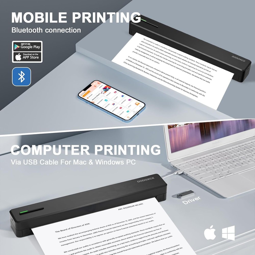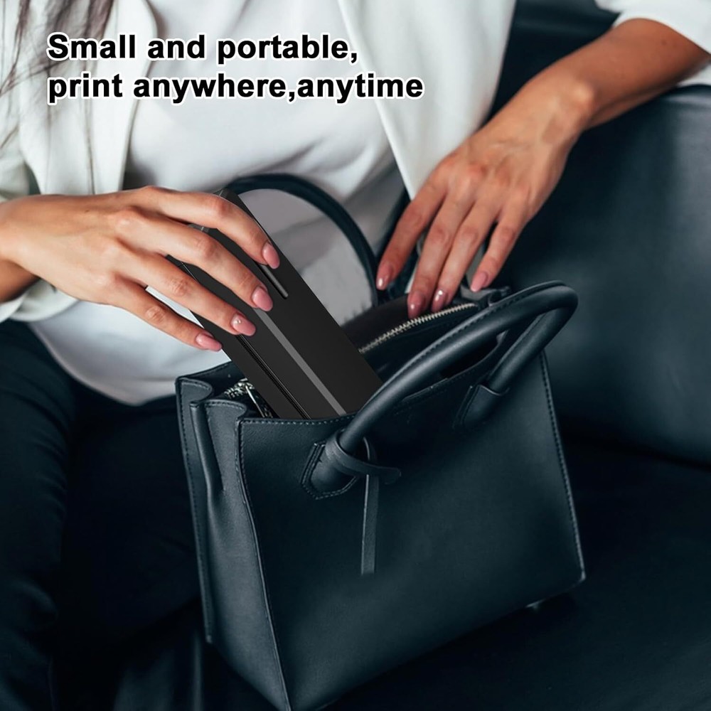 About this item Small Printer: The Portable Mini Printer is compact and lightweight, tipping the scales at just 1.1 pounds. It's highly portable for on-the-go use, occupying a space comparable to that of two smartphones. This printer can be conveniently slipped into your bag, enabling you to work from any location. Travel Printer: Exceptional Print Quality & Durable Battery Life: Enjoy sharp and clear prints with this compact travel printer, equipped with 2pcs 1500mAh internal batteries that allow for uninterrupted printing for up to 2 hours or 260 pages on one charge. Boasting an impressive 90-day standby capability, this portable printer is an essential tool for busy professionals and mobile students. Inkless Printer: The wireless printer provides a cost-effective solution for daily printing tasks, eliminating the need for ink, toner, and ribbon replacements. Utilizing cutting-edge thermal printing technology, you can effortlessly print recipes, forms, letters, homework, educational resources, and travel paperwork. With each sheet of thermal paper priced at just $0.07, you can save hundreds of dollars annually. It's ideal for home, small office, and educational settings. (Please note: This portable printer is a thermal printer and is designed to work exclusively with thermal paper, not conventional copy paper.) Mobile Printer: This portable label printer seamlessly pairs with iOS and Android smartphones via Bluetooth, doubling as a compact printing solution for laptops and desktop computers. It's ready to go in just 5 minutes from unpackaging, ensuring a quick and effortless setup. (Note: For smartphone usage, be sure to download the corresponding app beforehand.) Customizable Paper Dimensions: Produce documents in a range of sizes from 2 to 8.5 inches to suit different requirements. Product dimensions: 3.5 x 13 x 3.3 inches