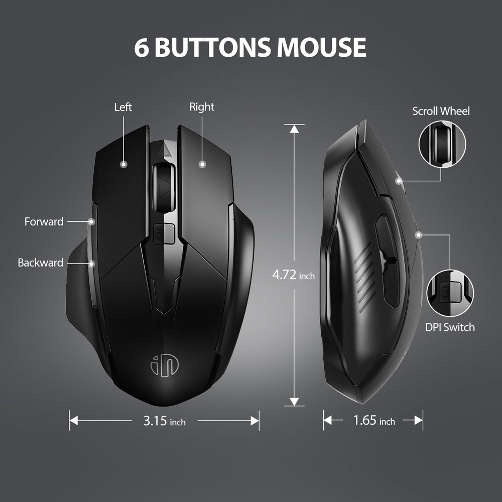 π Rechargeable Wireless : Built-in 700mAh high quality rechargeable battery means you can recharge whenever you want. When you leave your more than 5 minutes, it will automatically get into sleep mode which saves electricity of the , and click any button for waking up the again (P.S. Please recharge for 1 hour when the is new before use). π Silent Click(left and right button): Silent clicking laptop for left and right button fits the circumstance for using the in public, such as library, dormitory, office and so on, and apart from blue light indication during recharging and light off after full recharge, this design results worry-free for disturbing others π― 2.4GHz Nano USB : Stable connection up to 10-meter working distance and just simply insert the nano USB and play; 3 adjustable DPI (1000/1200/1600) for freely controlling speed π 6 High Efficient Buttons: There are not only clickless left and right buttons, but also a DPI adjusting button, scroll wheel and side buttons(not silent). The function of the side buttons is to help you to back or forward when you browse a , a USB with side buttons is more convenient for you surfing and working π€ 1-Year & Wide Compatibility: This wireless is with Windows 7/8/10/XP, Vista and Mac OS system and under the following policy, 45-day unconditional and 12 months repairing