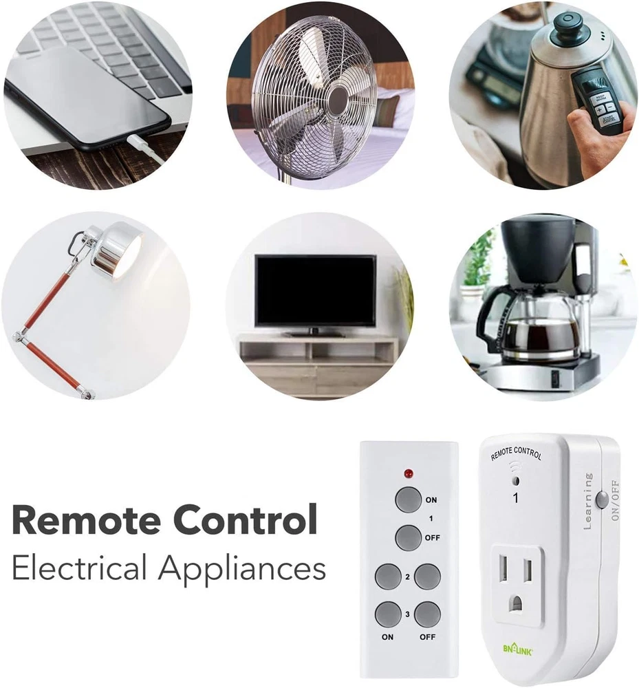 Store New Arrivals Add to Favorite View Feedback Contact Wireless Remote Control Electrical Outlet Switch Indoor 3 Pack and Wifi Bundle Description Operating Voltage 125 Volts Unit Count 3.0 Count Connectivity Protocol Wi-Fi Current Rating 15 Amps Number of Items 3 Mounting Type Plug-In Mount Control Method Remote Connector Type Wireless Operation Mode Off Actuator Type Relay Contact Material Copper Switch Type TRIAC Material Copper Controller Type wireless remote Wattage 1875 watts ✓ READY-TO-GO: Each BN-LINK Wireless Remote Control Outlet kit contains everything you need to start (even the remote batteries!). Simply plug and play, or sync up the outlets to suit your needs. ✓ STRONG SIGNAL: Our RF receivers and transmitters work through doors and walls without interfering with other electronics. Signal can function as far as 100 ft in line of sight. ✓ SIMPLE CONVENIENCE: Use the remote or the outlets themselves to turn your appliances on and off. Great with almost any electronic device, including lights, air conditioners, heaters, audio sound systems, holiday decorations, and charging devices. ✓ SAFE AND RELIABLE: Outlets will remain off after a power outage to save energy and protect your appliances. ✓ CHECK YOUR RATINGS: Indoor Outlet Ratings: 125V, 15A/1875W Resistive, 5A/625W, 1/2HP. Outdoor Outlet Ratings: Ratings: 125V, 15A/1875W Resistive, 5A/625W, 1/2HP BN-LINK Wireless Remote Control Electrical Outlet Switch Indoor 3 Pack and WiFi Bundle ABOUT US We offer the best prices around on high quality products. Our E-store includes media such as books, movies, music and games while offering electronics, toys, sporting apparel, clothing, tools, general home, garden items and more. SHIPPING We are always working hard to ensure your package arrives as soon as possible. Please understand that some factors like weather, high postal traffic, and the performance of shipping companies are outside of our control. We offer free shipping to the lower 48 states and ship within 2 business days of payment, usually sooner. We do not accept P.O. Boxes. Please provide a physical address. For shipping outside of the continental USA, we only use eBay's Global Shipping Program.The item is shipped to KY and then sent to the rest of the world. International customers are responsible for all duties and taxes. Continue to check out in order to calculate costs for shipping the item to your country. Messages regarding eBay's Global Shipping Program MUST be directed at eBay EXCLUSIVELY. RETURNS We offer a 30-Day Return Policy on items which you are not completely satisfied with. You have the option for a full-refund or an exchange of the item. No returns are available on items shipped outside of the USA. PAYMENT We accept PayPal. CONTACT US This page content is yet to come Please ad us to your favorite seller and visit again later Thank You CUSTOMER SATISFACTION We try our very best to make sure every customer is completely satisfied. If there's a problem, message us! We're happy to help. WE ACCEPT Copyright © 2021 AutoDS. | All Rights Reserved