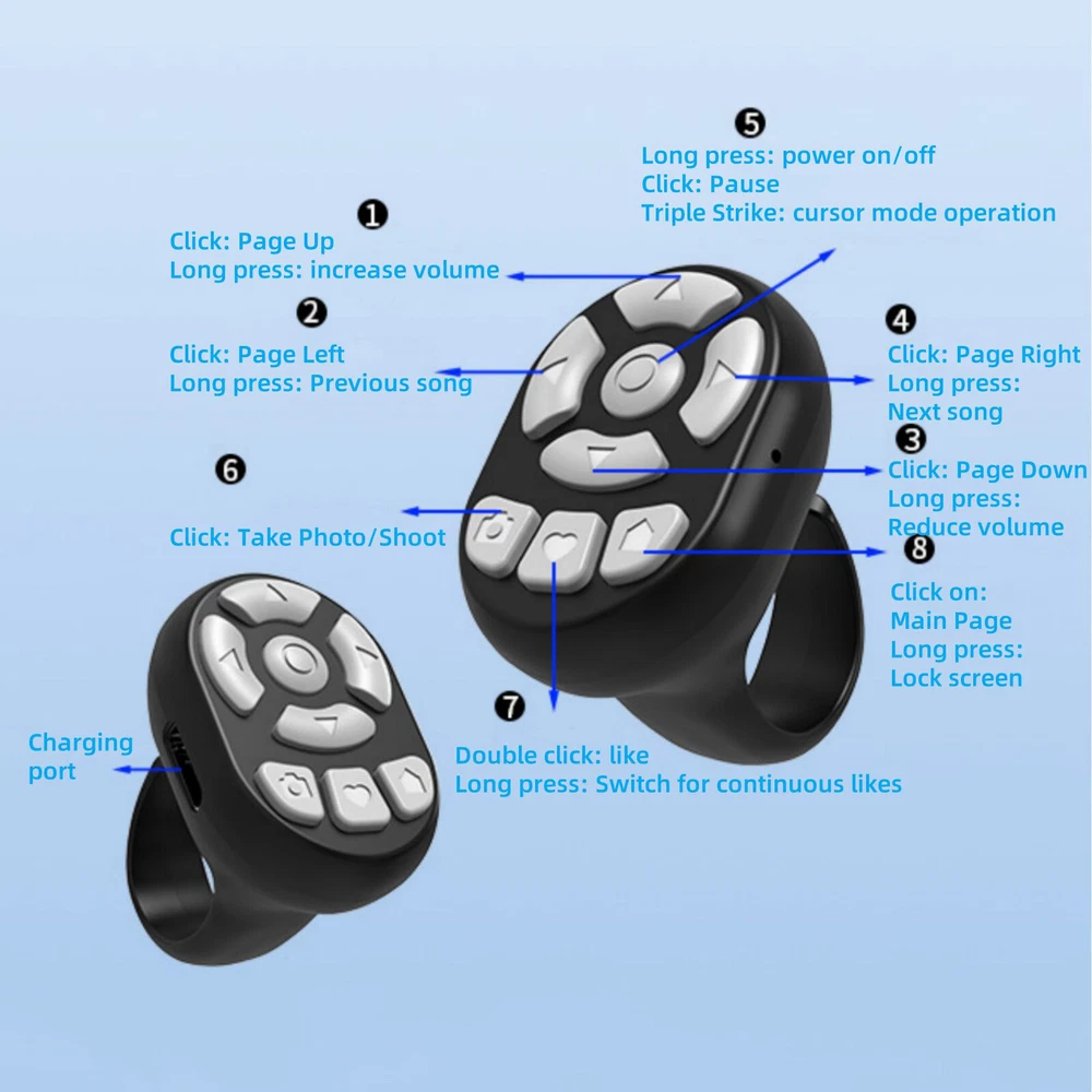 You may also like 2Pcs Replacement Full Range Speaker for JBL Charge 3 4ohm 10W Bluetooth Speaker 17.99 USD 20x Soft Golf Shoe Spikes Replacement Cleat Fast Twist Q-Lok For Footjoy Champ 12.99 USD 36X Phone Camera Telephoto Lens Zoom Fisheye Wide Angle Lens For iPhone 25.99 USD For Insta360 X3 Camera Accessories Aluminum Alloy Protective Cage Housing Frame 58.99 USD Metal 1/4" Boat Jack Plate for Fender Stratocaster Strat Style Guitar Parts b 9.89 USD Rivet Marking Tool& Handle Model Building For Galaxy Tools Accessories Part 22.99 USD SAFE & SECURE SHOPPING 100% SATISFACTION GUARANTEED FAST SHIPPING Remote Control Scrolling Ring Wireless Camera Shutter Selfie Button Controller Product Description Features: 1. Superb Convenience: Enjoy Hands-Free Browsing With Ease Using This Wireless Ring Remote Control. Effortlessly Navigate Through Pages, Adjust Volume And Play/Pause Media Content With Just A Touch Of Your Finger. 2. Wireless Freedom: Equipped With State Of The Art BT 5.3 Technology, The Scrolling Ring Delivers A Seamless Connection And Pairs Easily With Different Smartphone Models, Providing A Reliable Wireless Connection Up To 10 Meters Away. Enjoy The Freedom And Convenience Of Wireless Scrolling With Ease. 3. Elevate Your Entertainment: Unwind With Ease As The Scrolling Ring Enhances Your Video Enjoyment, Offering A Comfortable Grip And Versatile Angles For Binge-Watching And Music Enjoyment, Complete With A Click To Play Feature That Keeps Your Phone Pristine. 4. Multi-Purpose Tool: Effortlessly Take Photos, Enhance Your Live Video Quality, And Easily Turn Pages Of Digital Books With The Versatile Scrolling Ring. Perfect For Any Situation. 5. Efficient Scrolling: Indulge In Non-Stop Scrolling With Our Scrolling Ring' S Powerful And Enduring Battery. With Quick And Effortless Type-C Charging, Experience Up To 32 Hours Of Usage, Designed To Boost Your Productivity And Elevate Your Scrolling Game. Specifications: Product Name: Scrolling Ring BT Version: 5.3 Material: ABS Remote Control Distance: 10m Product Size: About 3.5x2.6cm/1.4x1inches Battery Capacity: 60mAh Usage Duration: 32 Hours Packing List: 1* Phone Scroller Remote 1* USB Charging Cable About Us Payment Shipping Returns Contact Us About Us Welcome to our store! Our aim is to offer our clients items with high quality and fast delivery, also our price will be reasonable. We supply many products including video game, health & beauty, phone accessories, computers accessories, camera & camcorder,car accessories, games, toys & hobbies, jewelry, antique & craftwork. Excellent customer service and a reliable credit standing is our tenet. Payment We accept all verified payments from ebay. Orders will be shipped after receiving cleared payment. Payment due within 7 days after auction ends and for buy it now listings. Shipping We ship most of our orders within 24 hours, and may up to 48 hours. If you want faster shipping way. Please contact us before making payment. Sometimes due to problems with our transportation company system, your shipping information may be delayed to update. We recommend that you try again after 3-4 days. If you still haven't checked the shipping information, you can contact us by ebay message. Returns Always believe we can figure things out with communication, if it comes to return, the pacakge must be intact and the same as you receive. If you have any questions, please feel free to email our service specialists 24 Hours a Day, 7 Days a Week. We will reply you ASAP. Return/refund is accepted within 30 days after the buyer receives the item. NO exchange will be accepted after 30 days from the date when the item is received. Please contact us first before returning your product!!! Contact Us If you have any questions, our Customer Service staffs welcome you to email us. We strive to answer all questions and resolve any problems as quickly as possible. You can contact us 7*24, we will reply at the first time, and we will surely solve your problems. Note: 1.We try our best to reply to your emails as soon as possible, however, due to high volume of daily incoming emails and time zone difference, we may not be able to reply your emails immediately. Please allow 1 business days for us to response. If you do not receive any reply from us, please check your email ensuring your mailbox has not reached full size. 2.Due to some ISP SPAM filter settings, you may not be able to receive our replies; if you have problems receiving our emails, you may need to use a different email account to contact us. 3.Please give us the opportunity to resolve any problem. We understand the concerns and frustrations you might have, and will try our best to resolve the issues. Please email us before leaving any negative feedback or open any dispute on PayPal. 4.We care about our valued customers, and will always try to help you. So if you have any problems, please e-mail us immediately. Copyright © 2022 Tongtool Metal Upgrade Universal Drive Shaft For 1/10 WPL D12 DIY Modified RC Car Truck 12.29 USD Replacement Gimbal Lens Glass Repair Part for DJI Mavic Mini 3/Mini 3 PRO Drone 12.99 USD Yellow Protective Cover Case For Bose Soundwear Companion Bluetooth Speaker b 15.59 USD 1:10 Aluminum Alloy RC Car Wheel Rim Center Caps M4 Nut For TRX4 Axial SCX10 y 12.99 USD 6Pcs Protective Propeller Cover With Screwdriver Kit For DJI MINI 3 PRO Drone h 10.99 USD LED Display Battery Charger Intelligent Charging Hub For DJI Mavic 2 Pro Zoom d 31.99 USD 8PCSHigh Clearance Links Kits For Traxxas TRX4M 1/18 RC Car Higher Climbing A 17.99 USD ABS Propeller Guard Anti-collision Cover For DJI MINI 2 /Mavic MINI /SE Drone J 13.99 USD Metal RC Car Front & Rear Skid Plates Chassis Armor For Traxxas 2WD Slash 1/10 N 35.99 USD 1 Box Fastener Screw Nut Wrench for Axial SCX24 Series 1/24 RC Car Accessories 13.99 USD Portable Storage Bag Case For Beats Fit Pro x For Kim Kardashian Headphone r 13.99 USD 2PCS Headset Ear Pads Cushion For Sennheiser RS120/HDR120/RS100