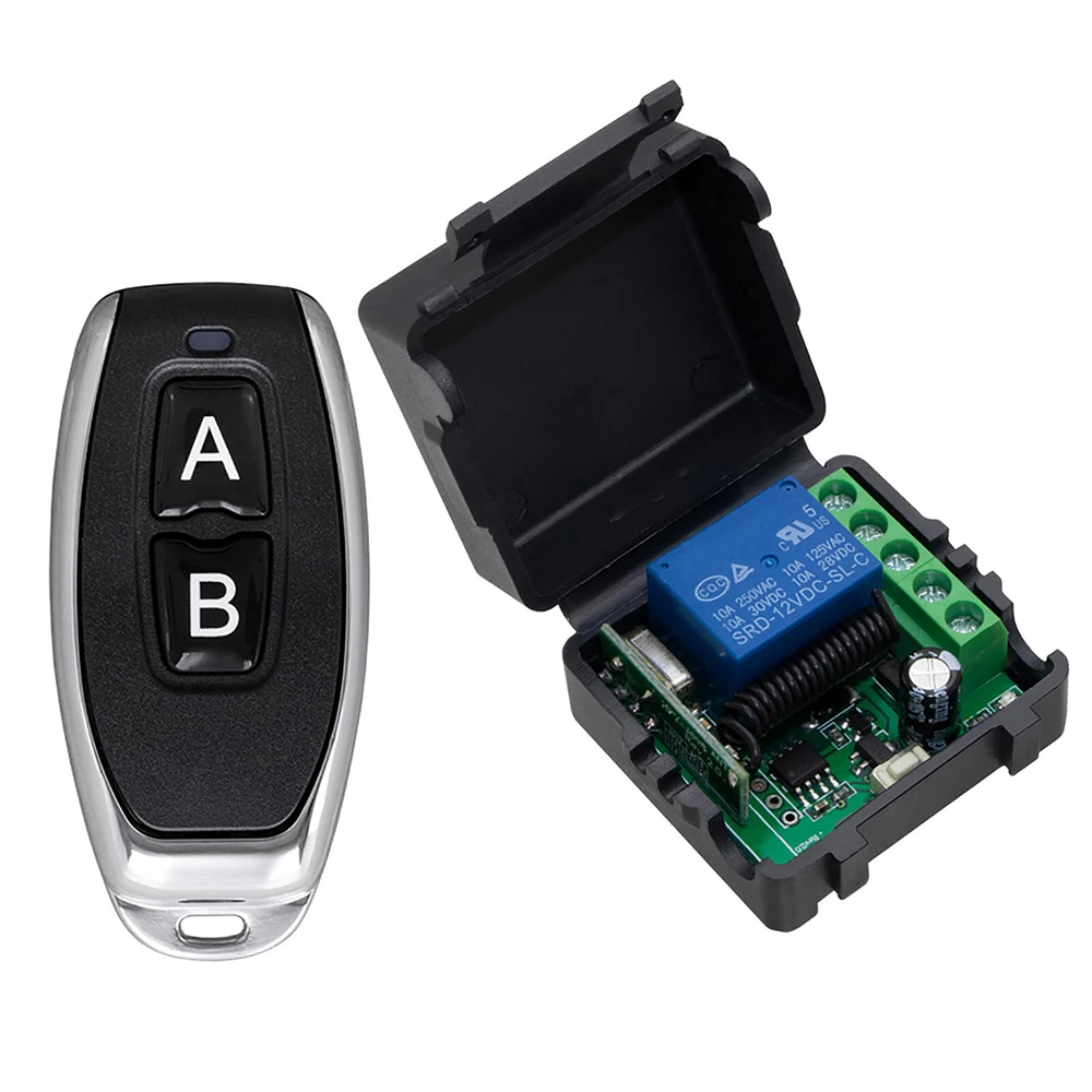 Product Description Features: 1. The application is wide. This product is controlled by intelligent microprocessor. It can be applied to garage door control, lighting control, remote control curtain, access control system and various motor control systems. 2. Easy installation. Small size, easy to install, safe and reliable to use and so on. Learning Methods: 1. Self Locking Learning Method: After Powering On, Press And Hold The Learning Button On The Receiving Board, And The LED Will Flash Once. Release It For 6 Seconds. Press And Hold The Remote Control Button That Needs To Be Learned, And The LED On The Receiving Board Will Flash Twice To Prove Successful Learning 2. Jogging Learning Method: After Powering On, Press And Hold The Learning Button On The Receiving Board, And The LED Will Flash Twice. Release It For 6 Seconds. Press And Hold The Remote Control Button That Needs To Be Learned, And If The LED On The Receiving Board Flashes Twice, It Proves That The Button Has Been Successfully Learned 3. Interlocking Learning Method: After Powering On, Press And Hold The Learning Button On The Receiving Board, And The LED Will Flash 3 Times. Release It For 6 Seconds. Press And Hold The Remote Control Button That Needs To Be Learned, And If The LED On The Receiving Board Flashes 2 Times, It Proves That The Button Has Been Successfully Learned Switching Method: Self Locking: When Powered On, Press And Hold The Learning Button, And The LED Will Flash Once. Release It (Press A To Turn On, Then Press A To Turn Off, And So On) Jogging: When Powered On, Hold Down The Learning Button And The LED Will Flash Twice. Release It (Press A To Turn On, Release A To Turn Off, And So On) Interlock: When Powered On, Hold Down The Learning Button And The Led Will Flash 3 Times. Release (Press A To Turn On, B To Turn Off, B To Turn On, A To Turn Off) Clearing Method: Clear Code: Press And Hold The Learning Button Without Letting The LED Flash 4 Times, Then Flash It 2 Times And Release It To Complete The Clear Operation. The Following Is A Single Key Full On And Full Off Learning Method For Controlling Multiple Receivers With A Multi Key Remote Control. The Total On And Off Should Be Operated In A Self-Locking State. The Total On Learning Method: Press And Hold The Receiver Learning Button Twice In Standby Mode, Press And Hold The Corresponding Button On The Remote Control Within 6 Seconds, And The Led On The Receiver Board Will Flash 2 Times. The Learning Is Successful General Learning Method: Press The Receiver Learning Button Three Times In Standby Mode, Hold Down The Corresponding Button On The Remote Control For 6 Seconds, And The LED On The Receiver Board Will Flash Twice To Successfully Learn Specifications: Working Voltage: DC12V Working Temperature: - 20~80℃ Working Frequency: 433MHz Output Mode: Click/Self-Lock/Interlock Remote Control Distance: 50m Product Material: ABS Package Includes: 1PCS Remote Control 1PCS Receiver Payment Shipping Returns Contact Us We accept all verified payments from ebay. Orders will be shipped after receiving cleared payment. Payment due within 7 days after auction ends and for buy it now listings. We ship most of our orders within 24 hours, and may up to 48 hours for. If you want faster shipping way. Please contact us before making payment. Sometimes due to problems with our transportation company system, your shipping information may be delayed to update. We recommend that you try again after 3-4 days. If you still haven't checked the shipping information, you can contact us by ebay message. Always believe we can figure things out with communication, if it comes to return, the pacakge must be intact and the same as you receive. If you have any questions, please feel free to email our service specialists 24 Hours a Day, 7 Days a Week. We will reply you ASAP. Return/refund is accepted within 30 days after the buyer receives the item. NO exchange will be accepted after 30 days from the date when the item is received. Please contact us first before returning your product!!! If you have any questions, our Customer Service staffs welcome you to email us. We strive to answer all questions and resolve any problems as quickly as possible. You can contact us 7*24, we will reply at the first time, and we will surely solve your problems. Note: 1.We try our best to reply to your emails as soon as possible, however, due to high volume of daily incoming emails and time zone difference, we may not be able to reply your emails immediately. Please allow 1 business days for us to response. If you do not receive any reply from us, please check your email ensuring your mailbox has not reached full size. 2.Due to some ISP SPAM filter settings, you may not be able to receive our replies; if you have problems receiving our emails, you may need to use a different email account to contact us. 3.Please give us the opportunity to resolve any problem. We understand the concerns and frustrations you might have, and will try our best to resolve the issues. Please email us before leaving any negative feedback or open any dispute on PayPal. 4.We care about our valued customers, and will always try to help you. So if you have any problems, please e-mail us immediately. Payment We accept all verified payments from ebay. Orders will be shipped after receiving cleared payment. Payment due within 7 days after auction ends and for buy it now listings. Shipping We ship most of our orders within 24 hours, and may up to 48 hours for. If you want faster shipping way. Please contact us before making payment. Sometimes due to problems with our transportation company system, your shipping information may be delayed to update. We recommend that you try again after 3-4 days. If you still haven't checked the shipping information, you can contact us by ebay message. Returns Always believe we can figure things out with communication, if it comes to return, the pacakge must be intact and the same as you receive. If you h