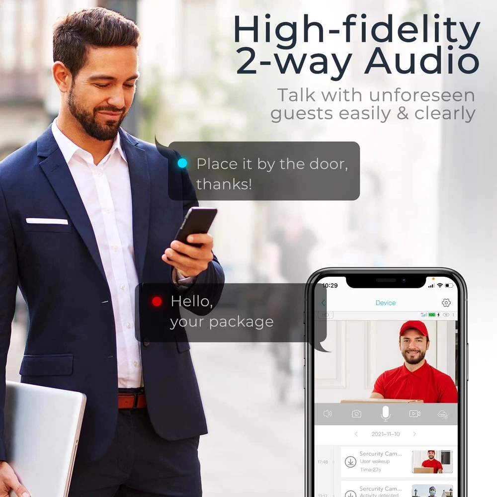 New upgrade 2K & Color Night Vision: 2K Full HD, equipped with an enhanced CMOS image sensor, which provides crystal images and videos, works with four equipped ultra-bright white LED lights, this surveillance camera can capturing clear color videos up to 33 feet at night and 120° wide field of vision, just like during the day, never worry about videos are not bright or clear enough. Smart PIR Motion Detection & Instant Alerts: PIR Motion Detection will sound an alarm to alert and start recording when someone is on camera, meanwhile, your phone will receive a notification. The advanced analysis technology to reduce false alarms, you can also set it to off. (It only records when it detects motions, not support 24/7 all day recording) Solar Powered & No Need To Charge: Built-in upgrade precise solar panel, has a strong ability to absorb sunlight, solar security outdoor camera can fully self-charge within two hours in the direct sunlight, works with built-in 9600mAh batteries, this can last up to 30 continuous rainy days once fully self-charge, you never need to take it down to charge. IP67 Waterproof & 1-Year Warranty: wifi camera was designed specifically for outdoor use, can overcome any harsh weather, the surface of the outdoor wireless camera is well sealed, adopts very precise waterproof tech, even if immersed in water for five minutes, the water will not seep into the device; The best use temperatures are between -13°F to 140°F (-25°C to 60°C). Amazon 365-day free return. 2-Way Audio & Cloud/SD Storage: home security system guarantees the built-in microphone and speaker enable a very high-fidelity conversation between the phone and the camera; Cloud/SD storage allows you to store large amounts of video data. (Support 30-day free cloud storage)