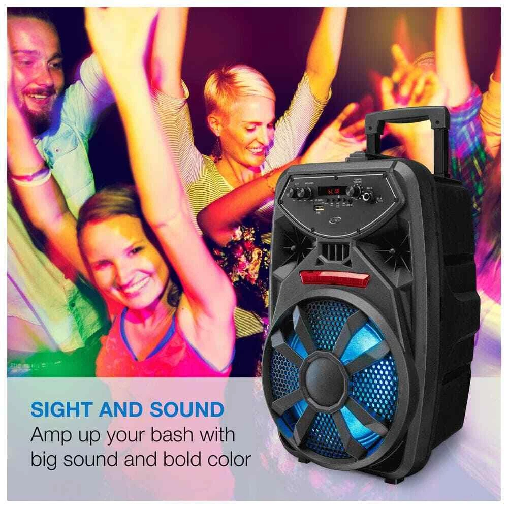 This speaker is a game-changer for tailgates and parties! The built-in wheels and retractable handle make setup a breeze, and the powerful 8-inch speaker delivers crisp, booming sound. Love the mic with echo effects—perfect for hyping up the crowd. Bluetooth, FM radio, and aux input give tons of playback options, and the LED lights add fun vibes. Durable, portable, and packed with features—worth every penny!
