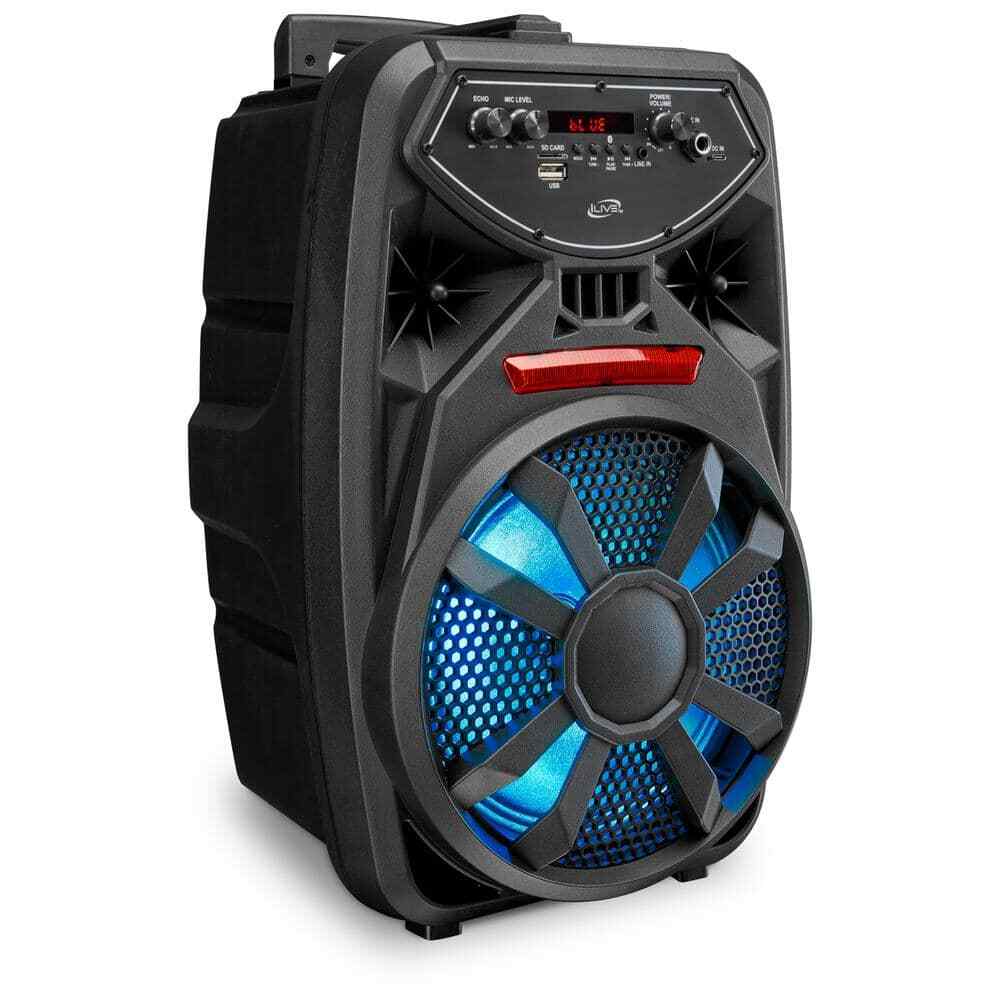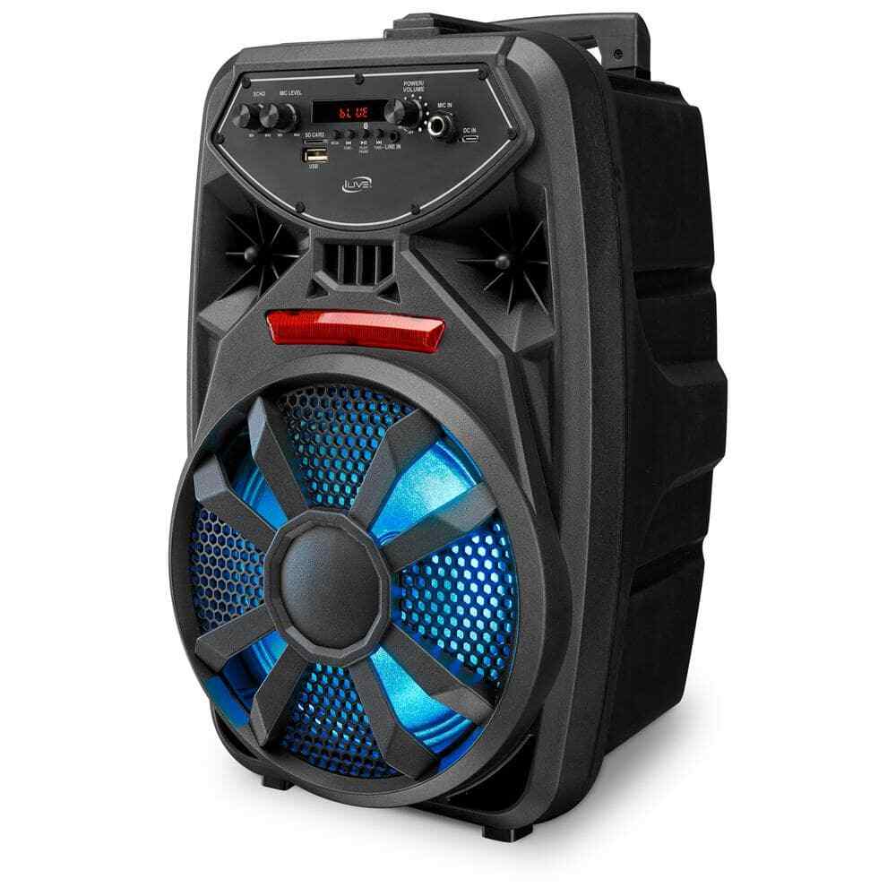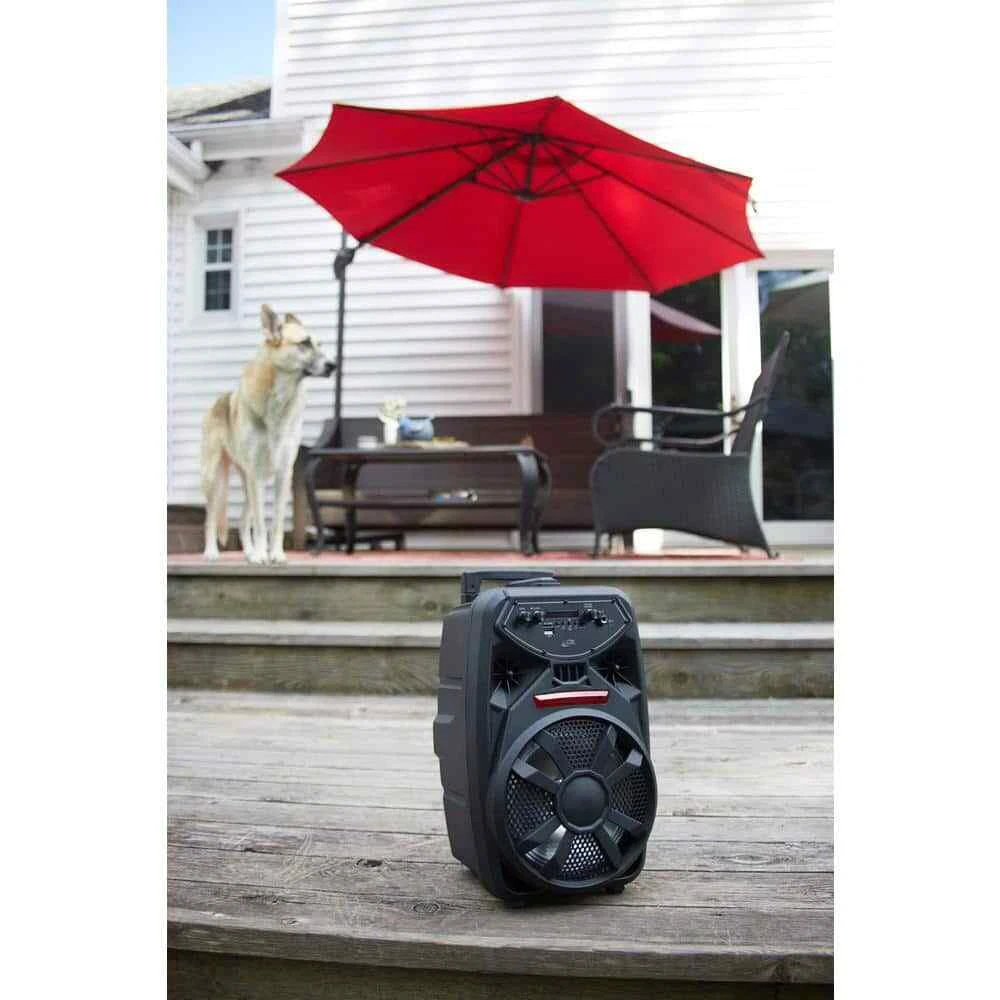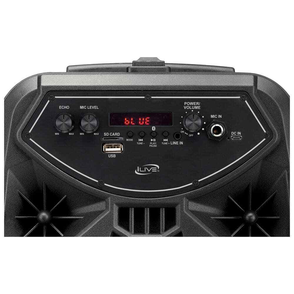 Setting up the tailgate is easy with the pull handle and wheels Work the crowd using the microphone and echo effects Play music from anywhere—your phone, the radio, the aux, and more Brand iLive Type Portable Audio & Video UPC 047323038006 Model ISB380B Simple life Wireless Tailgate Party Speaker with Built-In 8 in. Speaker, FM Scan Radio, Retractable Handle, Wheels, LED Lights, BLK Setting up the tailgate is easy with the pull handle and wheels Work the crowd using the microphone and echo effects Play music from anywhere—your phone, the radio, the aux, and more Full-bodied sound and low, lows are what you want from a party speaker. That's exactly what you get with this Wireless Tailgate Party Speaker. Connect your Bluetooth device and get the party going with room-rockin' bass and a microphone input to make announcements to the crowd. If you want to take the party to the next level, turn on the LED light effects and create a concert-like atmosphere. The transportability is second to none, the ergonomic retractable handle and wheels make moving this speaker around easy. Supports Bluetooth v5.0, supports profile A2DP (advanced audio distribution profile) Wireless range: 60 feet keeps your devices connected even as you roam Built-in 8 in. speaker FM scan radio searches frequency bands for radio stations Line in (3.5 mm audio input), micro SD slot and USB port: supports audio file playback, Microphone input USB-C port for battery recharge, retractable pull handle and roller wheels for easy transport Frequency response: 70Hz - 10kHz giving you everything from rumbling bass to stunning treble Sensitivity: 81dB pumps up the volume without distortion Voice prompts announce speaker functions and make Bluetooth pairing easier, voice prompt on/off Play/pause/pairing button, skip forward/skip back/tuning buttons, volume/on/off control, function mode and speaker light on/off switch Microphone volume control Echo control LED display, color changing LED light effects DC battery power: built-in rechargeable lithium ion battery Battery life: 6-hours at 50% volume Battery life: 2.5-hours at 100% volume Charge time: 4-hours to 5-hours Includes: USB-C to USB cable Click here for more information on Electronic Recycling Programs Color/Finish:Black|Color/Finish:Black|Electronics Included Components:Batteries,Cable(s)|Electronics Included Components:Batteries,Cable(s)|Features:Bluetooth Speaker,Digital display|Features:Bluetooth Speaker,Digital display|High Frequency Response (kHz):10|High Frequency Response (kHz):10|Indoor/Outdoor:Indoor|Indoor/Outdoor:Indoor|Low Frequency Response (Hz):70|Low Frequency Response (Hz):70|Pack Size:1|Pack Size:1|Power Type:Battery Powered|Power Type:Battery Powered|Returnable:90-Day|Returnable:90-Day|Speaker Style:Party|Speaker Style:Party|Wired or Wireless:Wireless|Wired or Wireless:Wireless|Manufacturer Warranty:90-Day Limited Warranty|Manufacturer Warranty:90-Day Limited Warranty|Product Depth (in.):9.84 in|Product Depth (in.):9.84 in|Product Height (in.):16.93 in|Product Height (in.):16.93 in|Product Width (in.):9.25 in|Product Width (in.):9.25 in Item Specifics Brand iLive Type Portable Audio & Video UPC 047323038006 Model ISB380B Payment [ Policy: The above tab label style can be modified in left Basic - Footer Policy section. And this area is the details contents of your policies. You can add a banner for this policy as header and add text descriptions here. The text descriptions can be different Font Size, Font Color, Style and even graphics and icons are also accepted. ] Shipping [ Shipping: This is the contents of your Shipping. You can add a banner for this Shipping as header and add text descriptions here. The text descriptions can be different Font Size, Font Color, Style and even graphics and icons are also accepted. ] Returns [ Return: This is the contents of your Return. You can add a banner for this Return as header and add text descriptions here. The text descriptions can be different Font Size, Font Color, Style and even graphics and icons are also accepted. ] Contact Us [ Contact Us: This is the contents of your Contact Us. You can add a banner for this Contact Us as header and add text descriptions here. The text descriptions can be different Font Size, Font Color, Style and even graphics and icons are also accepted. ] Simple life DESCRIPTION PAYMENT SHIPPING RETURN POLICY CONTACT US Wireless Tailgate Party Speaker with Built-In 8 in. Speaker, FM Scan Radio, Retractable Handle, Wheels, LED Lights, BLK Setting up the tailgate is easy with the pull handle and wheels Work the crowd using the microphone and echo effects Play music from anywhere—your phone, the radio, the aux, and more Full-bodied sound and low, lows are what you want from a party speaker. That's exactly what you get with this Wireless Tailgate Party Speaker. Connect your Bluetooth device and get the party going with room-rockin' bass and a microphone input to make announcements to the crowd. If you want to take the party to the next level, turn on the LED light effects and create a concert-like atmosphere. The transportability is second to none, the ergonomic retractable handle and wheels make moving this speaker around easy. Supports Bluetooth v5.0, supports profile A2DP (advanced audio distribution profile) Wireless range: 60 feet keeps your devices connected even as you roam Built-in 8 in. speaker FM scan radio searches frequency bands for radio stations Line in (3.5 mm audio input), micro SD slot and USB port: supports audio file playback, Microphone input USB-C port for battery recharge, retractable pull handle and roller wheels for easy transport Frequency response: 70Hz - 10kHz giving you everything from rumbling bass to stunning treble Sensitivity: 81dB pumps up the volume without distortion Voice prompts announce speaker functions and make Bluetooth pairing easier, voice prompt on/off Play/pause/pairing button, skip forward/skip back/tuning buttons, volume/on/off control, functi