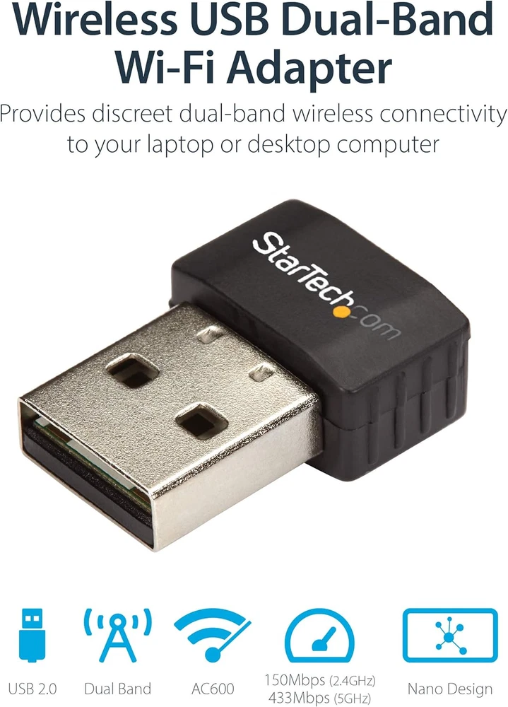 Store New Arrivals Add to Favorite View Feedback Contact Wireless USB Wifi Adapter – Dual Band AC600 Wireless Dongle - 2.4Ghz / 5Ghz - 802.11Ac Wi-Fi Laptop Adapter (USB433ACD1X1) Description Item model number USB433ACD1X1 Item Weight 0.07 ounces Data Transfer Rate 433 Megabits Per Second Operating System Windows 10 Windows 8 Windows 7 Mac OS X El Capitan (10.11) macOS Mojave (10.14) macOS Sierra (10.12) Windows Server 2019 macOS High Sierra (10.13) Item Dimensions LxWxH 0.7 x 0.9 x 0.3 inches Data Link Protocol IEEE 802.11ac, IEEE 802.11n, IEEE 802.11g, IEEE 802.11a, IEEE 802.11b Color Black Series USB Wi-Fi Adapter - AC600 - Dual-Band Nano Wireless Adapter Product Dimensions 0.7"L x 0.9"W x 0.3"H Color Black Compatible Devices Laptop, Desktop Wireless Type 802.11n, 802.11b, 802.11g Global Trade Identification Number 00065030863773 Capacity 433 Mbps AC (Nano) Model USB 2.0 Hardware Interface USB 2.0 Is Discontinued By Manufacturer No Country of Origin China SECURE WIRELESS CONNECTIVITY: The wireless USB WiFi adapter provides a reliable dual-band wireless network connectivity to your laptop, tablet or desktop UPGRADE YOUR WI-FI SUPPORT: The dual-band Wi-Fi dongle supports maximum data rates of up to 433 Mbps on the 5GHz band, plus up to 150Mbps on the 2.4GHz band COMPACT DESIGN: The USB Nano wireless adapter features a compact factor form for minimal obstruction, ideal for when youre on the go INDUSTRY COMPLIANT: For maximum performance, the UBS Wi-Fi connector is IEEE 802.11a/b/g/n/ac compliant and supports WEP, WPA, WPA2 wireless security VERSITILE USE: Supporting USB 2.0, the external adapter adds Wi-Fi networking to your desktop computer without the need for an internal expansion This wireless USB Wi-Fi adapter adds external dual-band wireless connectivity to your laptop, tablet or desktop computer. Easily replace or upgrade your computer’s existing wireless capability with access to both 2.4GHz and 5GHz Wi-Fi networks. Reliable Wireless Connectivity The dual-band USB WiFi dongle adds reliable Wireless-AC connectivity to your laptop. The UBSB Wi-Fi adapter supports maximum data rates of up to 433 Mbps on the less congested 5GHz band (802.11ac is 5 GHz only), plus up to 150Mbps on the 2.4GHz band. Conveniently Small Form Factor The wireless nano USB adapter features a compact form factor, so you can plug it into your laptop or tablet with minimal obstruction. The perfect accessory for your laptop, the internet wireless adapter is so compact that you can leave it plugged in without worrying about it getting in the way or snagging on something while you're on the go. Versatile Use The versatile network adapter features a 1T1R (1 transmitter, 1 receiver) antenna design. To integrate with all your networking devices, the USB 802.11ac wireless adapter is backward compatible with 802.11a/b/g/n networks. The USB Wi-Fi adapter supports USB 2.0 for wide compatibility. The USB Wi-Fi connector is backed by a StarTech. with free technical support. ABOUT US We offer the best prices around on high quality products. Our E-store includes media such as books, movies, music and games while offering electronics, toys, sporting apparel, clothing, tools, general home, garden items and more. SHIPPING We are always working hard to ensure your package arrives as soon as possible. Please understand that some factors like weather, high postal traffic, and the performance of shipping companies are outside of our control. We offer free shipping to the lower 48 states and ship within 2 business days of payment, usually sooner. We do not accept P.O. Boxes. Please provide a physical address. For shipping outside of the continental USA, we only use eBay's Global Shipping Program.The item is shipped to KY and then sent to the rest of the world. International customers are responsible for all duties and taxes. Continue to check out in order to calculate costs for shipping the item to your country. Messages regarding eBay's Global Shipping Program MUST be directed at eBay EXCLUSIVELY. RETURNS We offer a 30-Day Return Policy on items which you are not completely satisfied with. You have the option for a full-refund or an exchange of the item. No returns are available on items shipped outside of the USA. PAYMENT We accept PayPal. CONTACT US This page content is yet to come Please ad us to your favorite seller and visit again later Thank You CUSTOMER SATISFACTION We try our very best to make sure every customer is completely satisfied. If there's a problem, message us! We're happy to help. WE ACCEPT Copyright © 2021 AutoDS. | All Rights Reserved