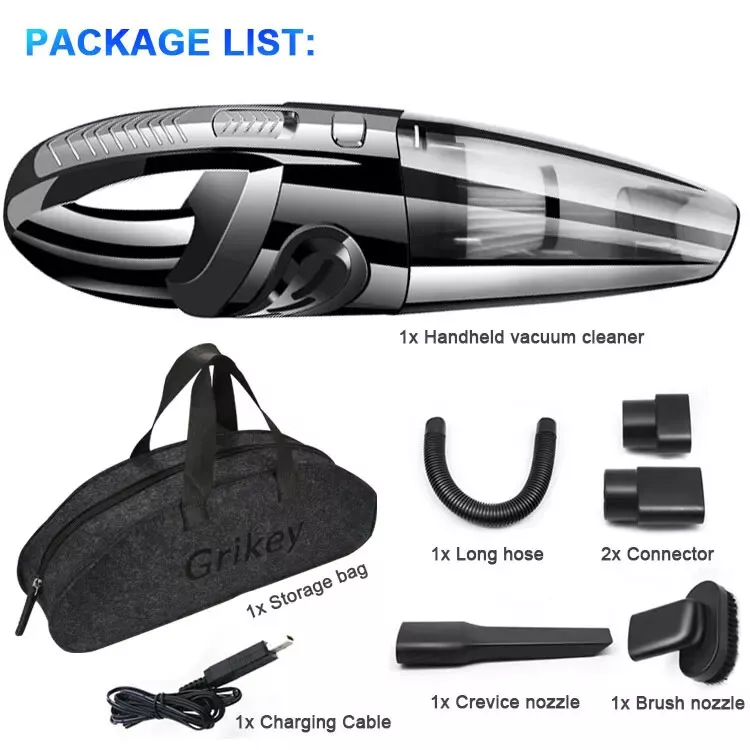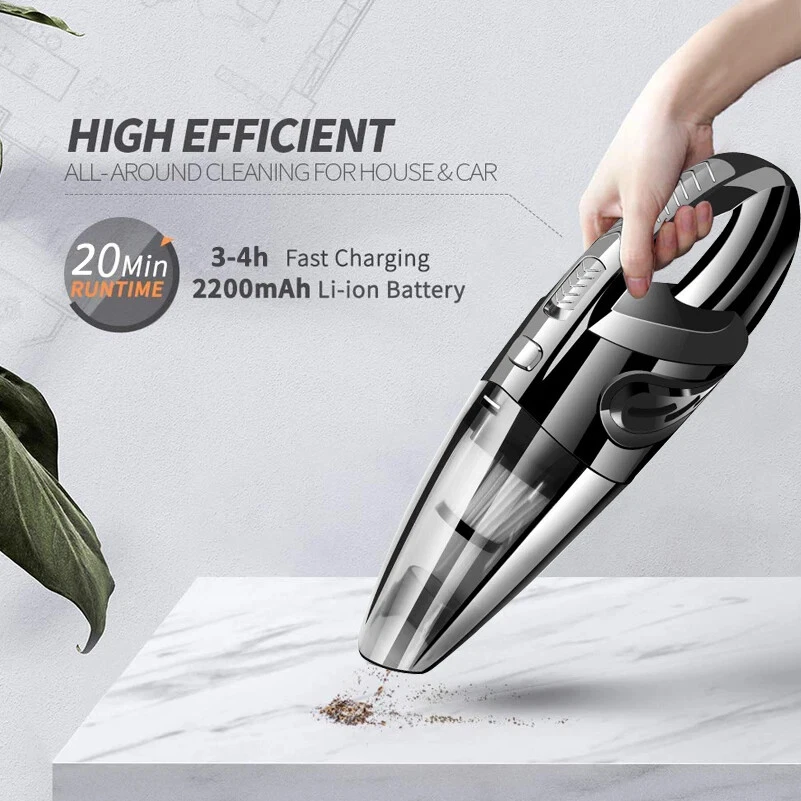 Most Buyer Like: Description: Name: Wireless Handheld Vacuum Cleaner Charging Volt: 7.4V (work with car charger and cellphone charger) Rate Power: 120W Power Supply: Lithium Battery Size: 32*6cm Color: Black Battery Capacity: 2200mah Working Time: About 25-30 Minutes Charging Time: 3-4 Hours Dry/Wet: Yes Charger: USB charger Cable 1.Charging Status: Rechargeable battery USB shows red for normal charging and green for full charging 2.This wireless car vacuum cleaner is a wet and dry vacuum cleaner. When absorbing water, pay attention to open the front cover to drain water in time. What Package included: 1x Wireless vacuum cleaner 1x Long Nozzle 1x Nozzle brush 1x EVA hose 2x Connectors 1x Portable bag 1x English Manual