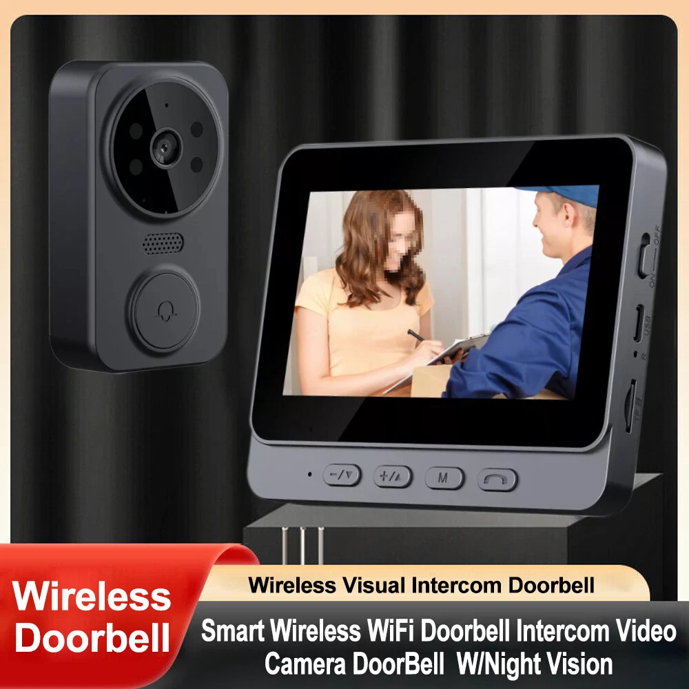 Description: The 4.3-inch IPS screen and wireless visual intercom doorbell are powerful smart home products. This doorbell adopts advanced wireless technology, which can connect with mobile phones or other devices, allowing you to watch the situation at the door anytime, anywhere through your phone. It is equipped with high-definition video monitoring function, which can provide clear images and videos. Through the built-in camera, you can view visitors in real-time and make two-way calls to communicate with them. Features: 【Wireless Visual Intercom Doorbell】: Our 4.3-inch IPS screen wireless visual intercom doorbell provides a clear and wide view, allowing you to see who's at the door without opening it. It's a smart doorbell that offers high-definition video monitoring for your home. 【Long Battery Life】: Equipped with an 800mAh polymer battery, the doorbell can last up to 2 months with 10 daily presses after a full charge. Please note that the further the distance, the more power it consumes. 【Night Vision & Wide Viewing Angle】: With 4 advanced 850nm infrared night vision lights, the doorbell intelligently optimizes night vision mode, allowing you to see clearly even in pitch darkness. It offers a viewing angle of 70 degrees, providing a comprehensive view of your doorstep. 【Large Storage & Two-way Intercom】: The doorbell supports up to 256GB S/D card, allowing you to store a large amount of video footage. The 2.4GHz transmission allows for internet-free interconnection and supports two-way video intercom, providing a convenient and secure way for you to communicate with visitors. 【Easy Installation & Low Power Consumption】: The doorbell is wireless and easy to install. It features a built-in speaker and microphone, and is powered by 2A/DC 5V. It offers ultra-low power consumption and long standby time. Please note that the monitor needs to be connected to an external power source for long-term use. The built-in battery is only for temporary use and should not be used without an external power source for a long time. Specifications: Display Screen: 4.3 inches Power Supply Information: DC5V/2A Audio Information: Built-in speaker, microphone Working Humidity: 10% -90% S/D Card: Supports up to 256GB Connection Method: BT interconnection Visual Angle: 70 degrees Night Vision Type: infrared night vision Working Temperature: -10 °~60 ° Wireless Distance: Open 100m/328ft, other 20m/65.6ft Battery Capacity: 800mah. After being fully charged, press 10 times a day for up to 2 months (the farther the distance, the more severe the power consumption) Notes: 1. The monitor needs to be connected to an external power source for long-term use. 2. The built-in battery is only for temporary use. 3. Do not use without an external power source for a long time. Note: Due to the different display screen and light effect, the actual color of the item might be slightly different from the color showed on the pictures. Packing List: 1 x Wireless Doorbell 1 x Display 1 x Charging Cable 1 x User Manual 1 x Large Base Plate 1 x Small Base Plate 1 x Large Back Sticker 1 x Small Back Sticker 1 x Screw Set Payment Delivery details About Taxes About us Contact us Payment Payment is managed by eBay. We will ship to your eBay address. Please make sure your address setting is correct before checkout. Delivery details WORLDWIDE SHIPPING. (Except some countries and APO/FPO) Orders processed timely after the payment verification. The images shown are not the actual item and are for your reference only. SERVICE TRANSIT TIME is provided by the carrier and excludes weekends and holidays. Transit times may vary, particularly during the holiday season. About Taxes For all orders, please note that: Taxes and charges are not included in the item price or shipping charges. Please check with your country's customs office to determine what these additional costs will be prior to bidding/buying. PLEASE NOTE: S&H DOES NOT INCLUDE DUTIES, LOCATL TAXES OR ANY OTHER IMPORTATION FEES. The buyer needs to cooperate with the local customs for customs clearance Any customs duties incurred shall be paid by the buyer We are not responsible for any custom duty or import tax. Please list your special requests (color, packages, etc.) in the PAYPAL NOTES SECTION when you make payment. About us We are committed to provide excellent service for all buyers. Welcome to our eBay store:) Contact us Our Working Time (Beijing): 9:00 am ~ 6:00 pm (Monday~Friday) If the item is defective or taking longer than usual to reach you, please do not leave us negative feedback. Send us a message through eBay and we will resolve the issue promptly. Thanks for your support and understanding! If you have any questions, please contact us via ebay mail, we will reply you on the working day in China. And there will be no reply as we are out of office during weekend, we will reply on Monday. Because the time zone between the seller and the buyer is different, please be patient and wait for your understanding. We will be happy to serve you.