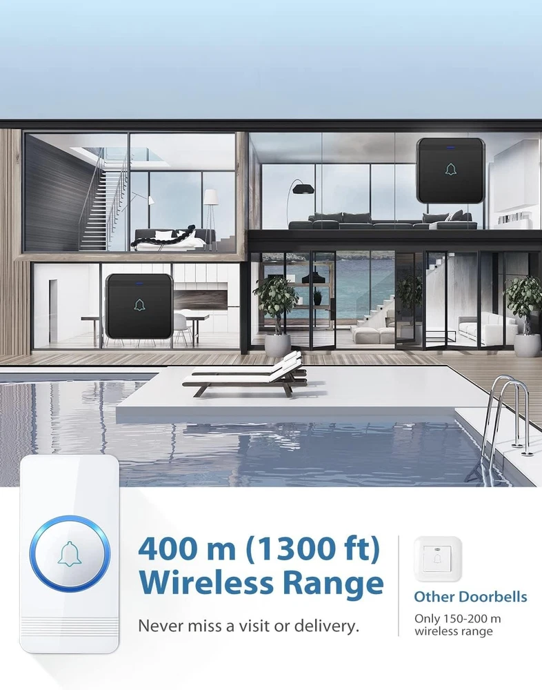 Wireless Doorbell - Waterproof with 1300 Ft Range and 52 Custom Melodies ‹ › ‹ › ‹ › ‹ › ‹ › ‹ › ‹ › ‹ › ‹ › Wireless Doorbell Your home deserves the best, and our Wireless Doorbell is designed to deliver both elegance and functionality with a perfect blend of innovation and style. Key Features: High Performance Transmitter: Ultra-low power consumption with a lithium battery boasting an impressive 3- lifespan. Weather Resistant: dustproof and waterproof design withstands harsh weather, operating flawlessly from -4 °F to 140 °F. 1300 FT / 400 M Wireless Range: Two plug-in receivers ensure you never miss a visitor, offering coverage across your home without interference. 52 Beautiful Melodies: Choose from 52 delightful chimes played through a rich 40 mm stereo speaker, with 5 adjustable volume levels peaking at a powerful 115 dB. Memory Function: Automatically retains your last melody and volume settings after a power outage—convenience at its finest! Easy to Set Up: Installation is effortless with included screws, anchor plugs, a key, and an adhesive patch, plus additional receivers can easily extend your coverage. Why Choose Our Wireless Doorbell? Imagine a doorbell that not only complements the beauty of your home but also provides you with unparalleled convenience. Our Wireless Doorbell combines durability and elegance, ensuring you are always aware of your visitors with beautiful melodies resonating through your home. Say goodbye to missed guests and embrace the effortless charm this doorbell brings. This is more than just a doorbell; it’s a statement piece that enhances your home’s ambiance while ensuring seamless communication. Elevate your entrance—order your Wireless Doorbell today! Shipping Free & Fast Shipping - We offer free shipping to most of the USA with a normal delivery time of 3-7 days. However, due to the current situation, additional delivery time (up to 3 weeks) may be required for some items. Alternative Carriers - We may use alternative carriers (e.g. USPS, FedEx, UPS, etc.) to ensure your package arrives safely and on time. Due to the use of multiple carriers, we are unable to provide a tracking number automatically. Handling Time - Orders are processed and shipped within 1-2 business days of receiving cleared payment. Shipping Restrictions - Shipping to Alaska, Hawaii, Puerto Rico, Guam, and other US territories may incur shipping charges or delivery restrictions. Please contact us before ordering, or your order can be refunded/cancelled. State Restrictions - There may be restrictions based on your state of purchase. For example, certain items may not be shipped to California due to state regulations. Contact for Tracking Updates - If you require tracking updates or have any concerns about the delivery of your order, please feel free to contact us, and we will be happy to assist you. Return 30-Day Hassle-Free Returns - We want you to be completely satisfied with your purchase. If you are not, you can return the item within 30 days of receiving it for a full refund or exchange. Easy Return Process - To start a return, simply contact us and we will provide you with a prepaid return shipping label and detailed instructions. Restocking Fee - There are no restocking fees for returns. However, the buyer is responsible for return shipping costs if the return is not due to a seller's error. Refund Processing Time - Refunds will be processed within 5 business days of receiving the returned item in its condition. Payment We accept all major credit cards, PayPal, and Apple Pay for your convenience. Your payment information is secure and encrypted to ensure a safe and seamless transaction. Please complete your payment within 3 days of purchase to avoid any delays in shipping. Feedback Your feedback is extremely important to us. We strive to provide the best products and customer service possible. If you are satisfied with your purchase, please take a moment to leave us a positive review. If you have any concerns or issues with your order, please contact us before leaving negative feedback. We are committed to resolving any problems and ensuring your satisfaction. Contact Us If you have any questions or concerns, please feel free to out to our customer support team. You can contact us through the eBay messaging system. We are available Monday to Friday, 9:00 am to 5:00 pm EST, and we will do our best to respond to your inquiry within 24 hours. Buy it now and enjoy a pleasant shopping experience! Voltage: 3 V Unit Quantity: 0.618 lb Material: Plastic Features: Waterproof,LED Flash,Memory Function,Adjustable Volume Power Source: Battery Items Included: Battery,Button,Screws,Plug-in Receiver,Transmitter,Anchor Plugs,Adhesive Patch,User Manual Suitable For: Home Type: Door Chime Connectivity: Wireless Number of Batteries: 1 Color: White Finish: Glossy Item Weight: 0.618 lb Style: Modern Button Material: Plastic Button Shape: Round Shape: Rectangle Power: 3 W Unit Type: lb