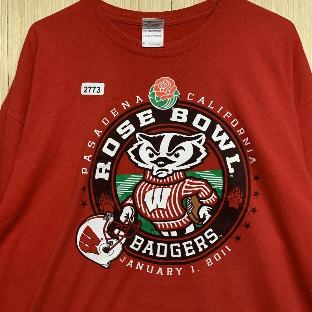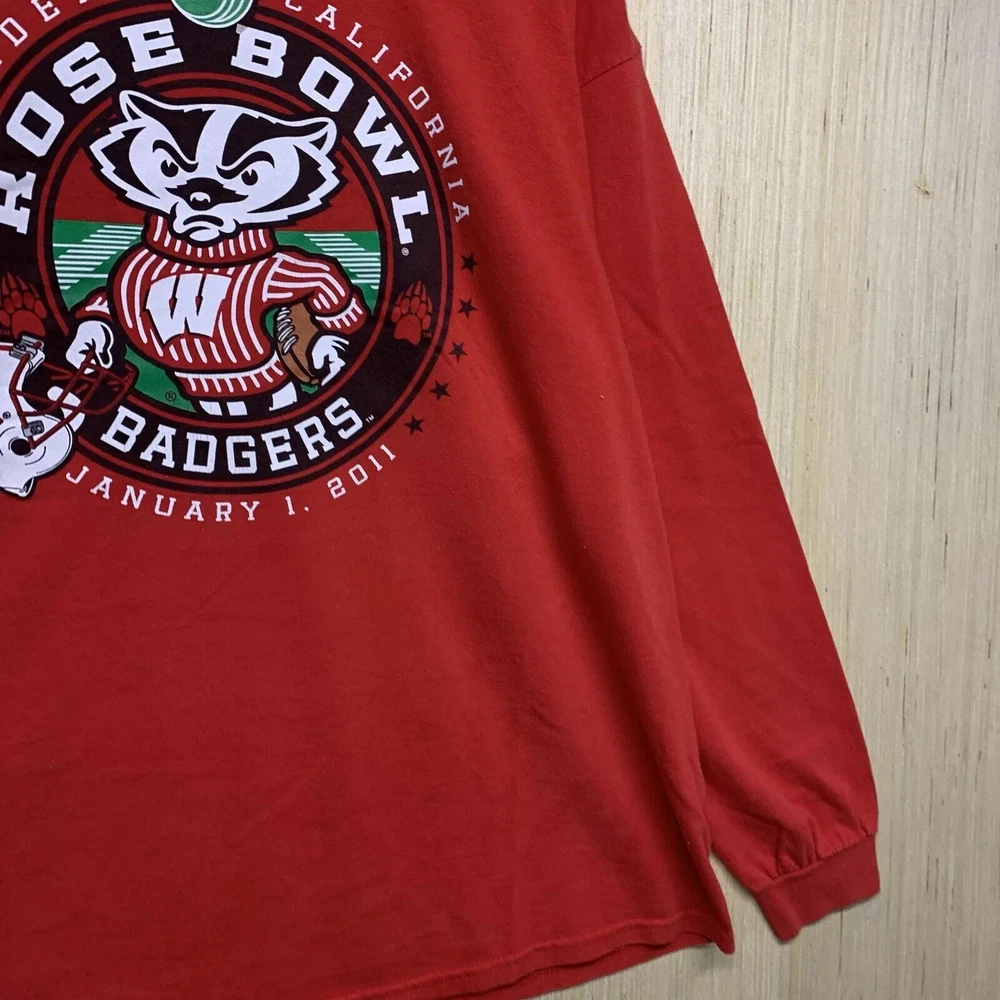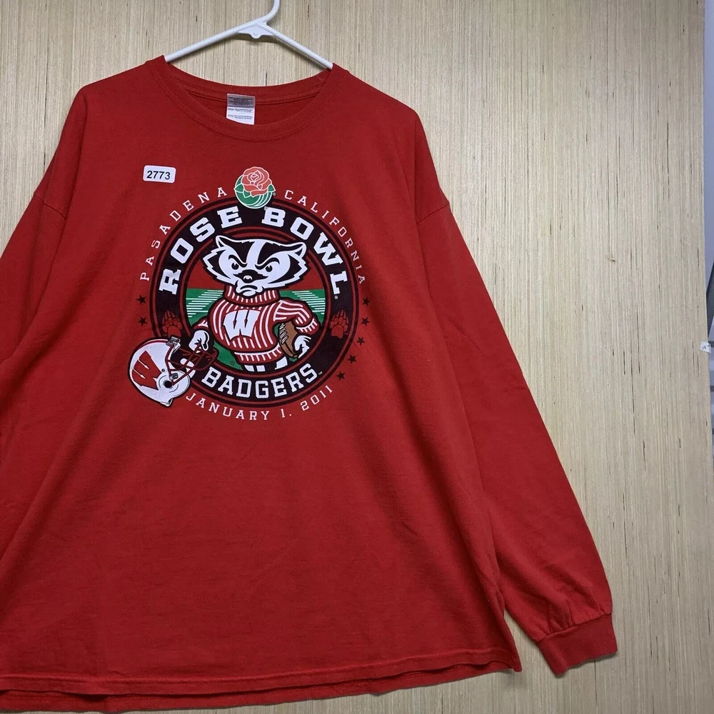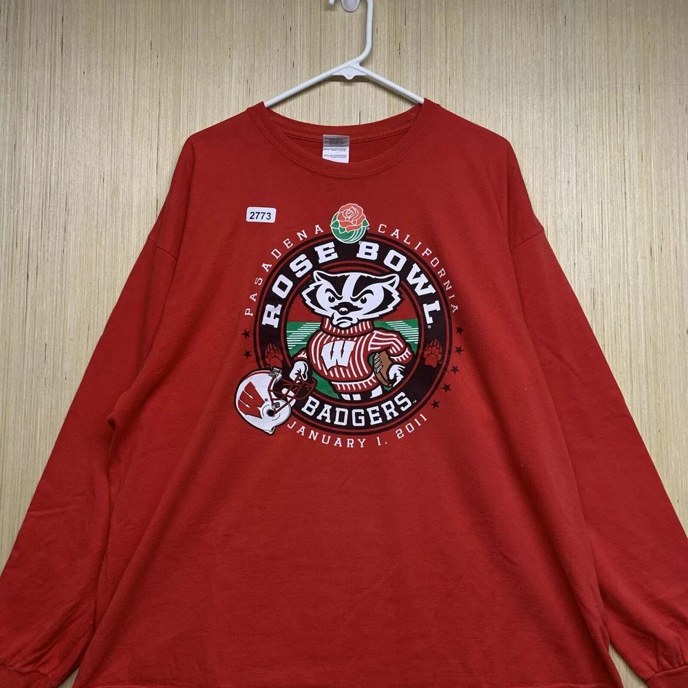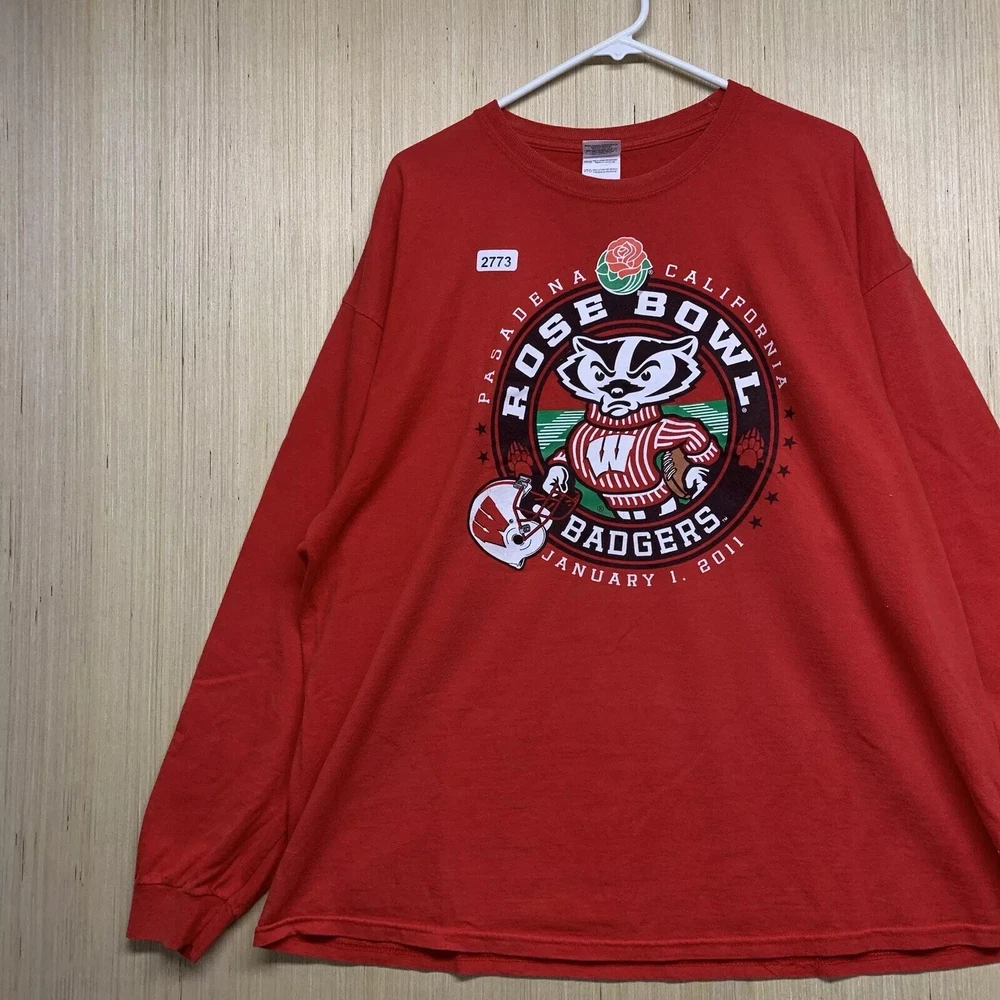 99Show your love for the Wisconsin Badgers with this limited edition, vintage-style T-shirt. The shirt features a solid red color with an embroidered logo on the front, showcasing the team's Rose Bowl victory in 2011. The shirt is made of comfortable and breathable cotton material, with a knit fabric type and a double-sided design. This men's T-shirt has a regular fit and long sleeves, with a crew neckline and a full zip for easy wear. It also features button accents and is preshrunk, lightweight, and stretchy, making it perfect for all seasons. The shirt is handmade and operates on a Friends and Free! character family theme. Get your hands on this highly personalized, yet stylish shirt, and show your support for the Wisconsin Badgers in any way possible.
