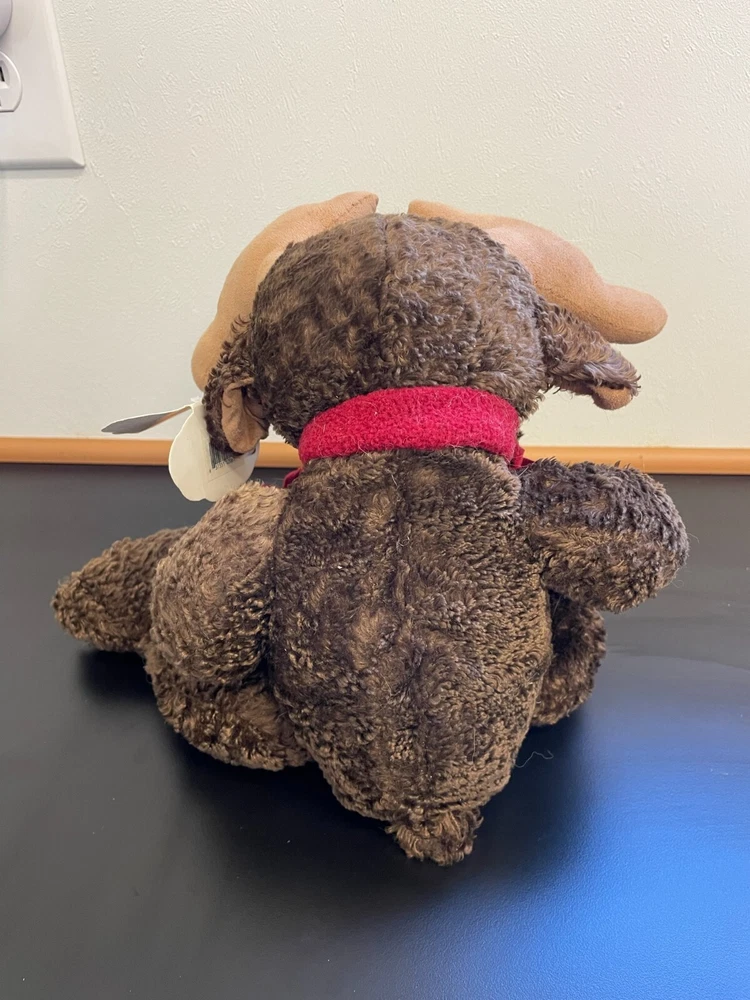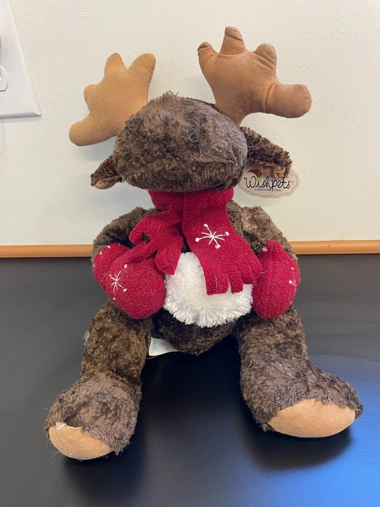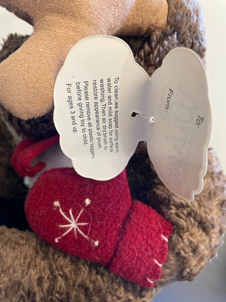 Wishpets Christmas Moose Plush Toy - Brown with Red Scarf - Holiday Decor Bring festive cheer to your home with this adorable Wishpets Christmas Moose plush toy! This cuddly moose features soft brown fur, plush antlers, and a bright red scarf embroidered with snowflakes. Perfect for holiday décor, gift-giving, or as a cozy companion for all ages. Suitable for ages 3 and up This charming moose is a great addition to your Christmas decorations or a thoughtful gift for anyone who loves plush toys. Add a touch of warmth and joy to your holiday season with this delightful collectible. Condition: Preowned, excellent condition. Clean and well-maintained with no visible flaws. Original tag included (see photos for details).