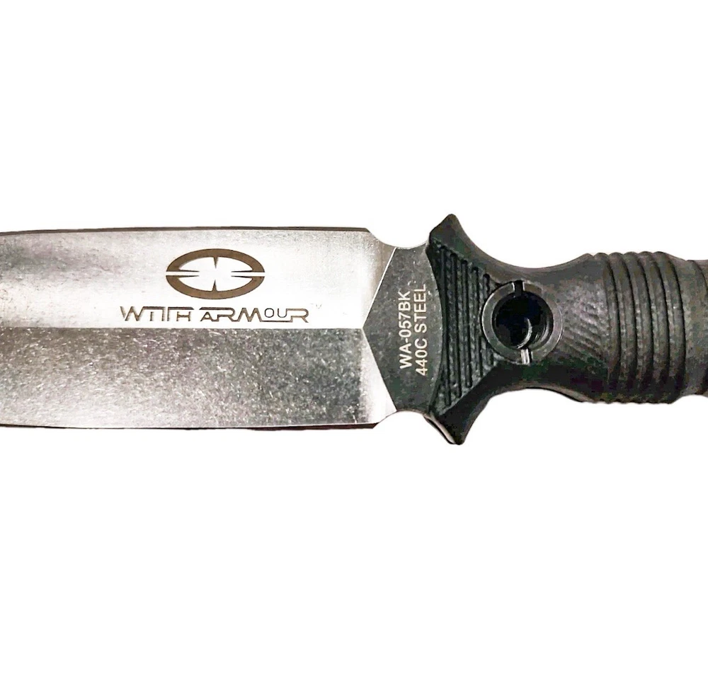Brand New WithArmour Tactical Fixed Blade Knife – WA-057BK Model This high-performance fixed blade knife from WithArmour is built for serious outdoor use. Featuring a rugged 440C stainless steel blade and a durable black ergonomic handle, this knife is ideal for camping, survival, tactical missions, or everyday carry. Key Features: • Model: WA-057BK • Blade Material: 440C Stainless Steel • Handle Material: Ergonomic Textured Black Grip • Blade Style: Spear Point with Stonewash Finish • Full Tang Design for durability and strength • Sheath Included: Black molded sheath with multiple carry options • Overall Length: Approx. 9 inches (blade approx. 4.5”) • Condition: Brand new in box with original packaging Included: • WithArmour WA-057BK Knife • Sheath • Original branded box and paperwork This knife is built to last with tactical precision and comfort in mind. Whether you’re heading into the wild or looking for a reliable utility knife, the WA-057BK delivers.