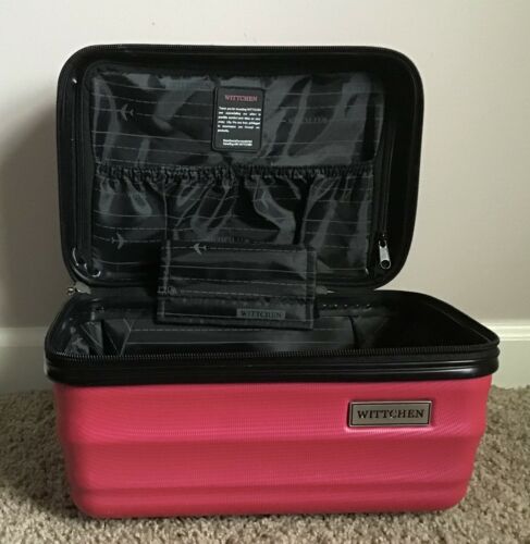 You are bidding on a Wittchen Pink Travel Tote Suitcase/ Luggage. It is in very good condition. It is a hard, sturdy tote with a lining inside. It approximately measures 8 inches tall by 11 inches wide by 7 inches. It has a handle but does not have a strap. Please ask any and all questions prior to bidding. All my listings are final sale. No returns. No refunds. I have a five Business day handling time. It does not include the time for weekends and holidays. If you need it sooner please message me. Thanks. Happy Bidding! Please see my other listings.