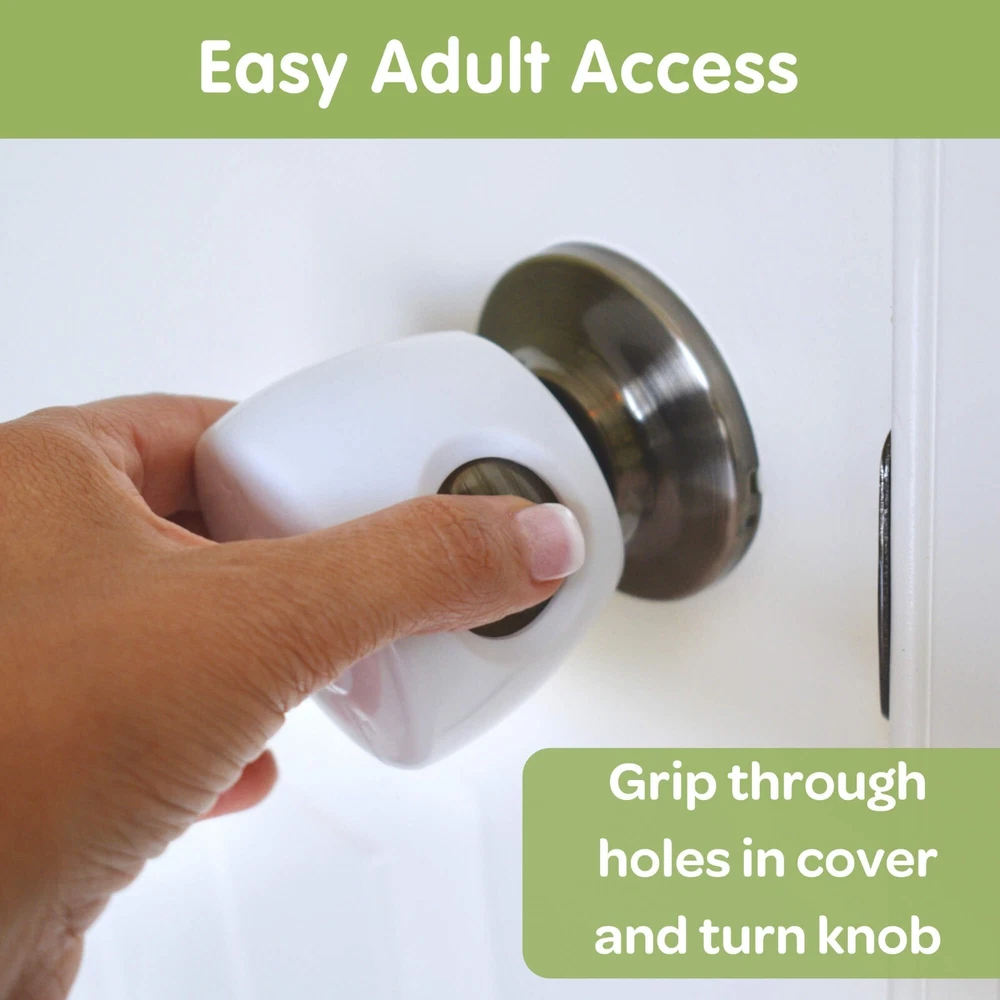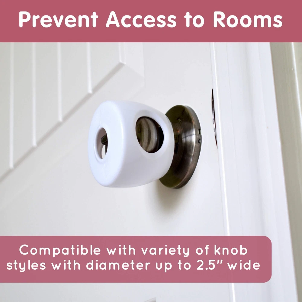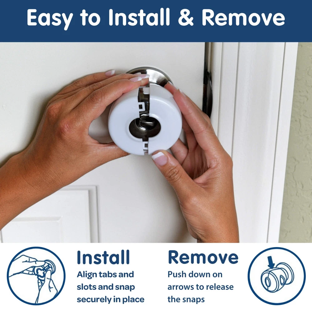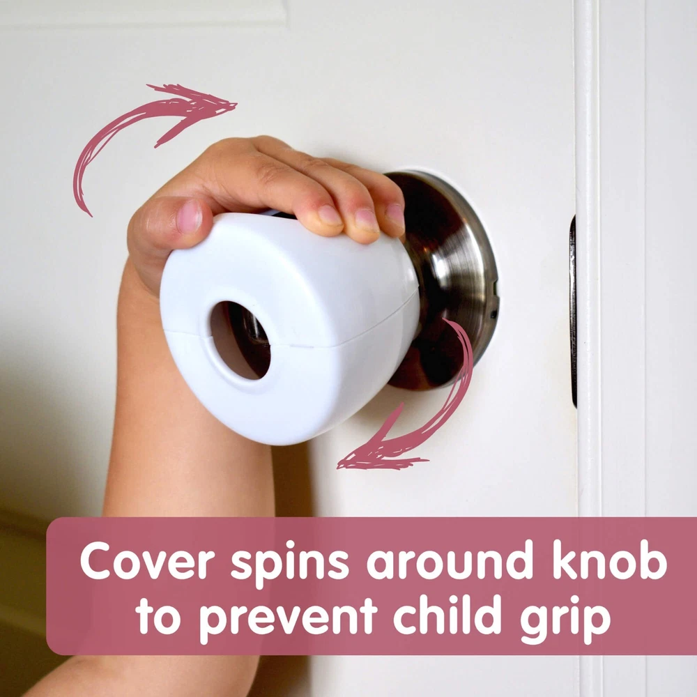 Wittle Baby Door Knob Locks Make Childproofing Simple! As parents, we know that baby proofing is important to ensure the safety and well-being of our little ones. Small children, toddlers, and crawling babies love to explore, and their curiosity often leads them to objects, places, and rooms where they can get hurt. The Wittle safety door knob covers are perfect for preventing your child from entering or exiting a particular room. Your child won't figure these baby safety locks out. Keep your toddler safe by preventing them from entering designated rooms, pantries, or closets in your home. The Wittle door locks for kids can also keep them from roaming around the house in the middle of the night. When installed, the doorknob cover will just spin around the doorknob and prevent little hands from gripping the knob. EASY ACCESS FOR ADULTS: The Wittle baby door locks are easy for adults to use. To enter the room simply place your thumb and index finger through the holes in the cover, grip the knob, and turn to open the door. The child-proof locks are also easy for adults to remove so you can reuse them on different interior doors or take them with you when traveling for child safety on the go. DIFFICULT FOR CHILDREN: When properly assembled, the child door lock will spin freely around the door handle. Little fingers or hands won't be able to grip the knob to open the door. COMPATIBLE & SLEEK: The Wittle door safety locks are unobtrusive to blend with the decor style in your home. Although designed for standard and spherical doorknobs, they may also work for a variety of other door knob types (antique, glass, egg-shaped, round, oval, mushroom-shaped, etc.) as long as the diameter of the widest part of the knob is less than 2.5 inches. QUICK TO INSTALL: Snap together the two halves around the doorknob for quick and convenient childproofing. Easily remove the child safety locks by pushing down on the arrows on the side. Now you can reuse them on a different interior door or take them with you on vacation or to grandma’s house to ensure toddler safety. The 4-pack of Wittle door safety knobs make it simple to child-proof the rooms and closets in your house. The 4-pack of Wittle door safety knobs make it simple to child-proof the rooms and closets in your house. Quick to install so your home will be babyproof in no time. No tools are required. Compatible with most standard doorknobs with a diameter less than 2.5 inches wide. Easy and convenient for adults to use while keeping curious little ones out. Designed to blend in with your decor style. Made from premium materials. Be sure to check out the entire line of Wittle baby safety items for your home!