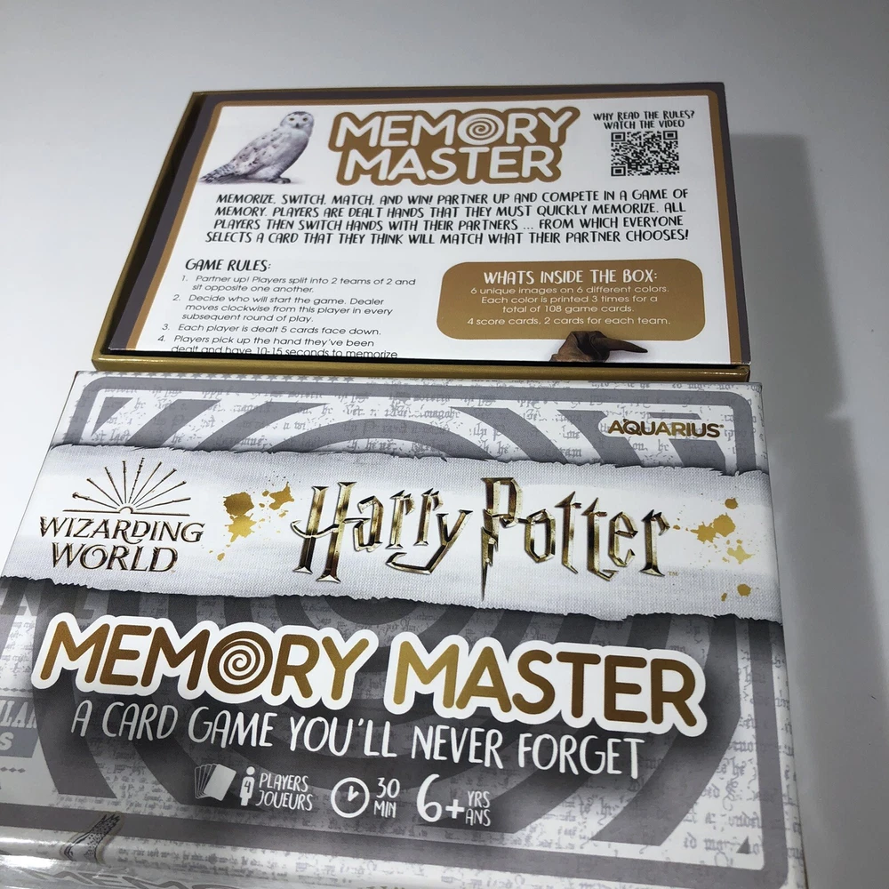 This Wizarding World of Harry Potter Memory Master A card game is perfect for any Harry Potter fan. With a variety of age levels, including 12-16 years, 8-11 years, 4-7 years, and 17 years & up, this game is suitable for everyone. The game is a memory game and is perfect for players who want to test their memory skills. The game includes cards with different themes and characters from the Harry Potter franchise, making it a fun and exciting game for players. The Memory Master A card game is manufactured in China by Aquarius, a trusted brand in the gaming industry. This game is part of the Board & Traditional Games category and is recommended for ages 6 and up. The game is ideal for both boys and girls and can be played with a minimum of 4 players. This game is perfect for anyone who loves Harry Potter and wants to test their memory skills.