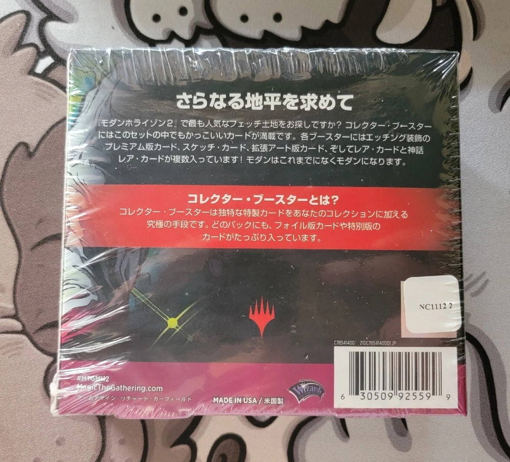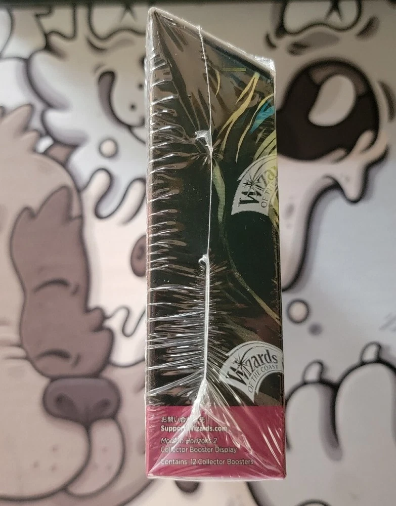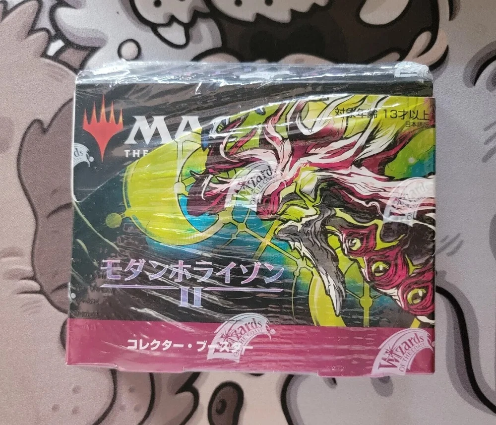 The product is a collector booster box of Modern Horizons 2 for Magic: The Gathering. It contains 180 cards and 12 boxes. The cards are made of card stock and have a standard size. The box was manufactured by Wizards of the Coast in 2021. The cards are in English and are suitable for players aged 13 and above. The product includes a booster feature.