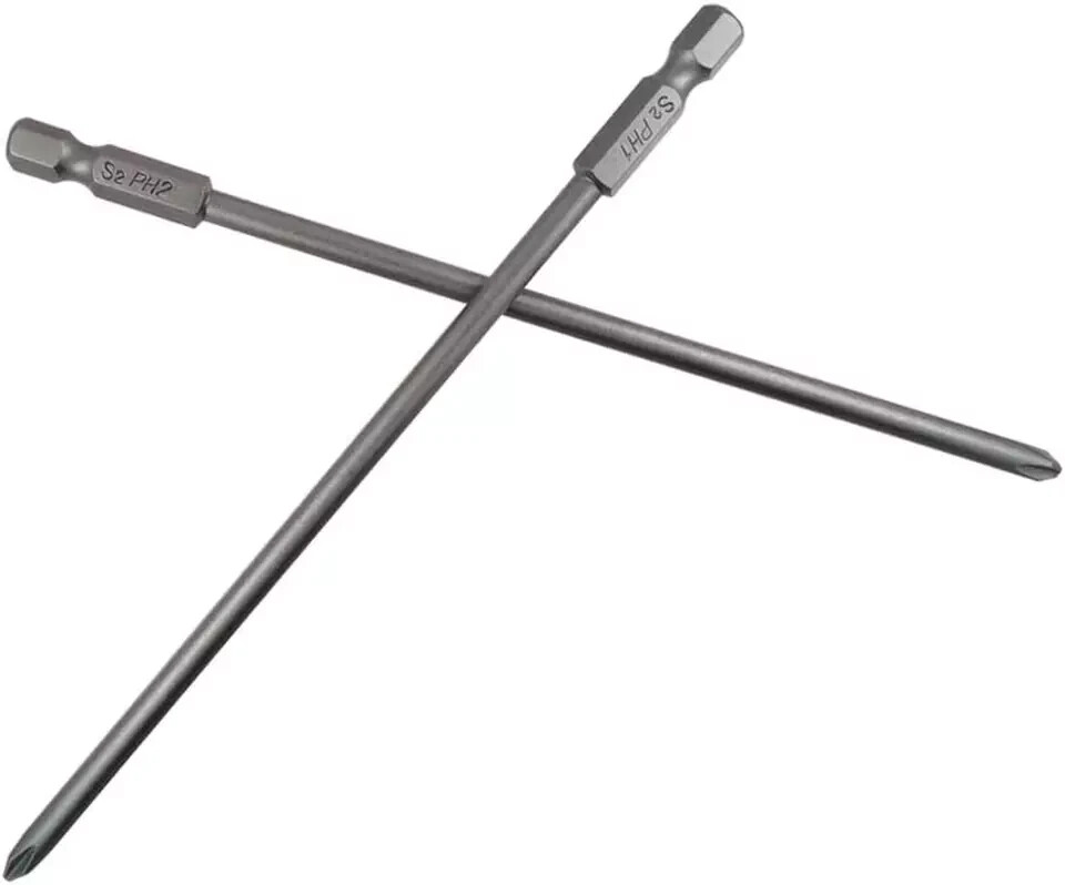 Wolfride 6Pcs 1/4 Inch Hex Shank Long Phillips Head Screwdriver Bits Set Magnetic Cross Head Screwdriver Bits | 5.9-Inch Length Description Style Phillips Head Finish Steel Number of Pieces 6 Color 150mm Phillips Head Material S2 Alloy Steel Head Style Phillips, Hex Compatible Fastener Range 0.25 inch Drive System Hex, Phillips Item Weight 4.6 ounces Batteries Included? No Item Length 5.9 Inches Batteries Required? No Finish Type Steel Size One Size Size: 3mm PH1, 4mm PH1, 4.5mm PH1, 4.5mm PH2, 5mm PH2, 6mm PH2. Shank: 1/4 inch hex. Overall length: 150mm / 5.9 inch. Made of S2 alloy steel, durable and great wear resistant. Please do not turn the screws with unmatched size, in case both screw and bit damaged. Magnetic security head, it can suck the screws easily while using it. Can be used for manual electric screwdriver, screwdriver, drill, air drill and other tools.