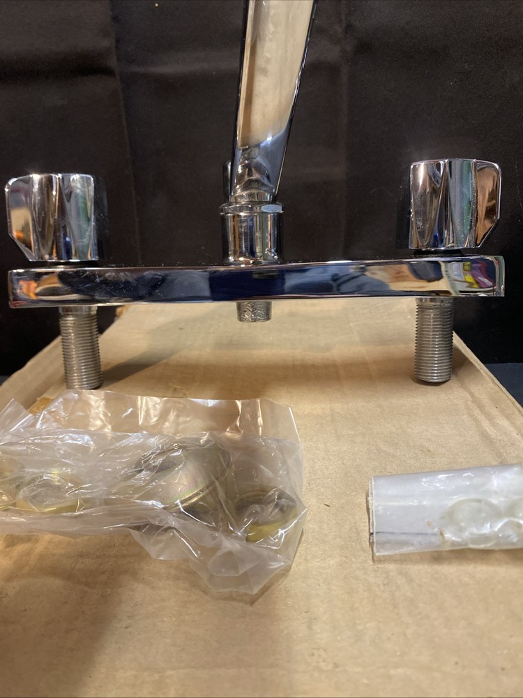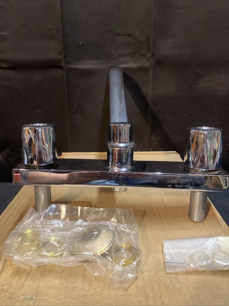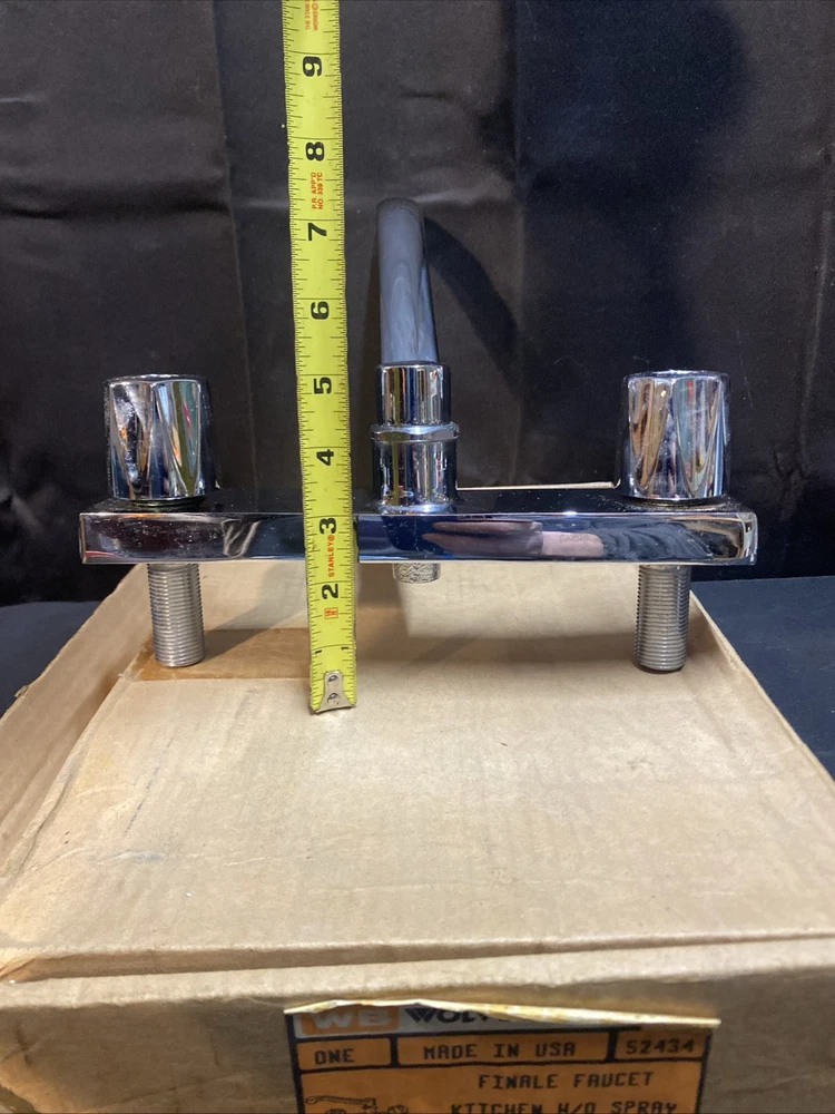 This kitchen faucet is a Wolverine Brass model 52434, made of brass and designed without a sprayer. It is intended for use in the kitchen and is new old stock (NOS), meaning it has never been used before. The Wolverine brand is known for its reliable and durable fixtures, making this faucet a dependable choice for your kitchen sink.