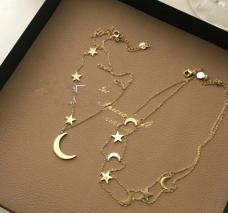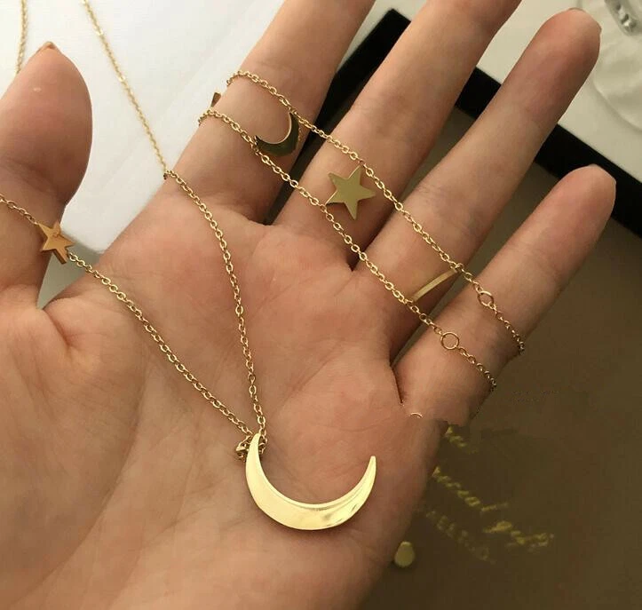 Descriptions: Can wear separately Condition: 100% Brand New Chain length: two layers choker 17.7 inches including extender, can adjust to 15.7 - 17.7 inches(40+5cm) moon pendant chain 20.8 inches including extener, can adjust to 18.9 - 20.8 inches(48+5cm) Base metal: real stainless steel with 18k GOLD plating L196 Payment: We accept Paypal only Shipping Shipping to: worldwide Domestic shipping: items will be shipped via usps first class Your item will be sent to your ebay address. Please make sure your ebay address is correct About us: For any questions, Plz feel free to email us. Due to time difference, We will reply email within 24-48 hours or as soon as possible.Sorry for any inconvenience.Thanks for your understanding!