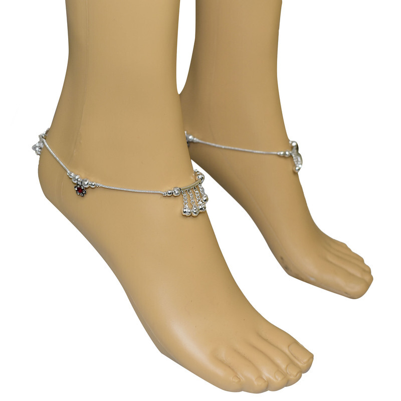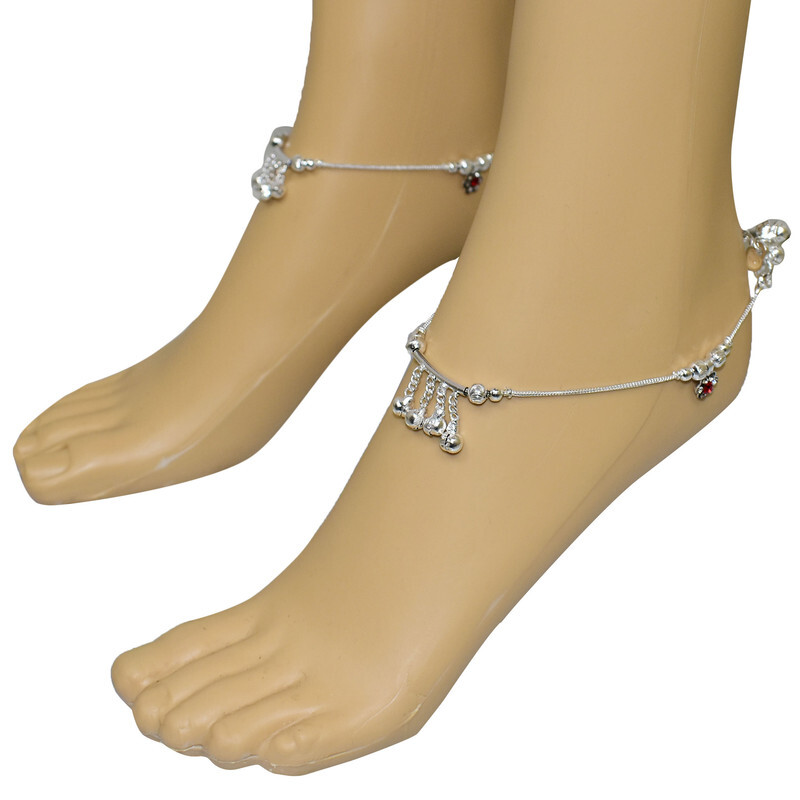Women Ankle Anklets Payal Indian Bracelets Chain Pair Foot Jewellery Sale For:- 1 Pair Size:- Length:--26cm x Width:-1.5cm (Approx) Material:- Metal Color:- Silver&Red Closure:- Hook Type:- Anklets Main Stone:- Artificial Stones & Beads About This Item New Traditional Style Anklet For Women And Girls. High Quality Silver Plating,Long Lasting,Handcrafted,Embellished With Metal Bell Charm Chain Tassels. Ethnic Significance:- Brides Wear It To Draw Attention To And Decorate Their Feet Bells Or Chimes Make A Soft Sound When The Bride Walks Traditionally Payals Are Worn In Both Feet. Style Tip:- Perfect For Spring And Summer Wear.Compliments Most Outfits.Casual Chic Everyday Wear. Perfect traditional look. Any Ethnic Outfits Like.Saree,Lehenga,Gowns,Bridal Wear,Party,Festival,Any Special Occasion,Dance Or As Fashion Novelty Costume Accessories. Ideal For:- Christmas,Thanks Giving,New Year,Valentine,Birthday,Anniversary Or Any Occasion,Gift For Someone You Love Jewellery Care:- Can Be Used In Water But Dry Completely Before Storing. Note:-Buyers Will Be Responsible For Pay Their Country's Custom Duties Charge, Import Charges And Other Charges (If Applicable). Note - USA Buyers Do Not Pay any Extra Charge At The Time of Delivery. Note - USA Buyers Do Not Pay any Extra Charge At The Time of Delivery.