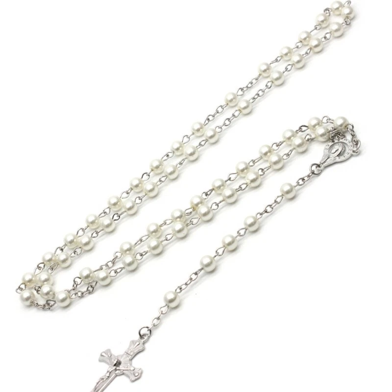 Women Crucifix Cross-Long Chain Amulet Necklace Religious Jewelry Features: The pattern of each bead is unique. It is not easy to peel off. The beads make this rosary-looks very beautiful and easy to praying. They could wear daily for the rosary necklace or the rearview mirro of your car, truck, or portable pocket for long driving or travel. This rosary will be bring you and your family Peace, Comfort, Strength and to keep-calm and feel safe in hearts. People bought this rosary used for Pray, Childrens first communion rosary, Baptism, Wedding Brithday Specifications: Glass, Alloy Color: White/ Blue/ Size:Approx.51-80cm/20.07-31.49" Package Includes: 1 Piece Necklace note: Please allow 1-2cm errors due to manual measurement,Please make sure that you do not mind before you order. Due to the difference between different monitors, the picture may not reflect the actual color of the item.