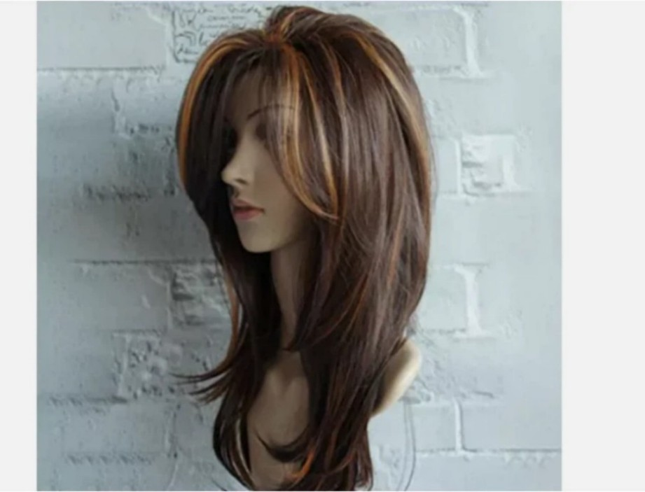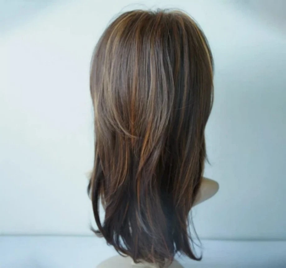 Women Dark Brown w/Gold Highlight Ombre Shoulder Length Curly Hair Wig&&&&&&& Women's Dark Brown w/Gold Highlight Ombre Shoulder Length Wig Synthetic Curly Hair Ship From USA Description Material: Synthetic Hair Style: Curly Hair Net Type: Rose Net Hair Fiber Type: can be straightened or ironed(150℃-) 100% Brand New Material: High Temperature Fiber(under 180℃) Color: Dark Brown & Gold (The color of the actual items may slightly vary from the above images due to different cell phone screen, thanks for your understanding) Hair closest to the physical properties, appearance, feels very like human hair. Flexible and ensures comfort to the wearer Very stylish design with natural looking and soft touch. Easy to wash and care just using a dish of shampoo in cold or lukewarm water. The size is adjustable No Pins or Tape should be required. Every one have their individual definition for colour, and under different conditions the colour will look different. We guarantee all of our catalogue pictures to be of the actual item. But due to many factors the same colour will look different to others, and the same style may differ slightly according to the person wearing it. Keep this in mind when making a purchase. Feature 1.Easy to clean and store best wig; 2.The color match your complexion color and looked more beautiful and charming; 3.Fashionable and stylish long hair wig looks natural, real, very pretty and feminine; 4.These best wigs are made of soft thick lustrous Kanekalon which are durable enough for long term use; 5.The size is adjustable and no pins or tape should be required. It should be fit on most people. All you should need to do is adjust the hooks inside the cap to the correct size to suit your head. Pack a ge Included Wig*1 Note: Due to the difference between different monitors, the picture may not reflect the actual color of the item. Thank you! General Tips for Hairstyles: 1. Please put the wig on a wig stand to maintain its shape before you wear it. 2. You can cut or trim to the styles you like. 3. Don't try to get every hair perfectly in place. This can make your wig look "un-natural". 4. Use wig brushes, combs and other styling accessories. They make styling easier. To extend the lifetime, please note that the temperature shoulder be lower than 180 Degrees Celsius or 360 Fahrenheit. 5. Have fun experimenting with different looks! Ship from USA