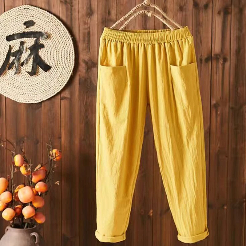 Specifications: 100% Brand new and high quality. Size:M,L,XL,XXL,3XL,4XL Color: white,black,yellow,red,coffee Material:cotton linen Pant length:ankle length Waist Type: high Pattern:solid color Season:spring,summer,autumn Note: 1.Due to the light and screen difference, the item's color may be slightly different from the pictures. Please understand. 2.Please allow 2-3% error due to manual measurement.Please make sure you don’t mind before you mid. 3.Size doesn’t fit all.Please carefully check size chart and select the size based on your real size. Wash before wear Cold gentle machine wash Do not bleach Do not tumble dry Drip dry Package:1 pcs women pant