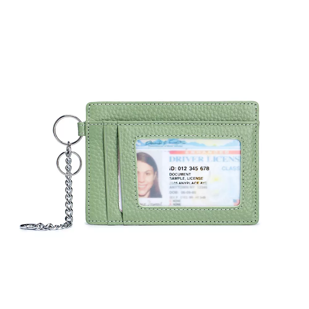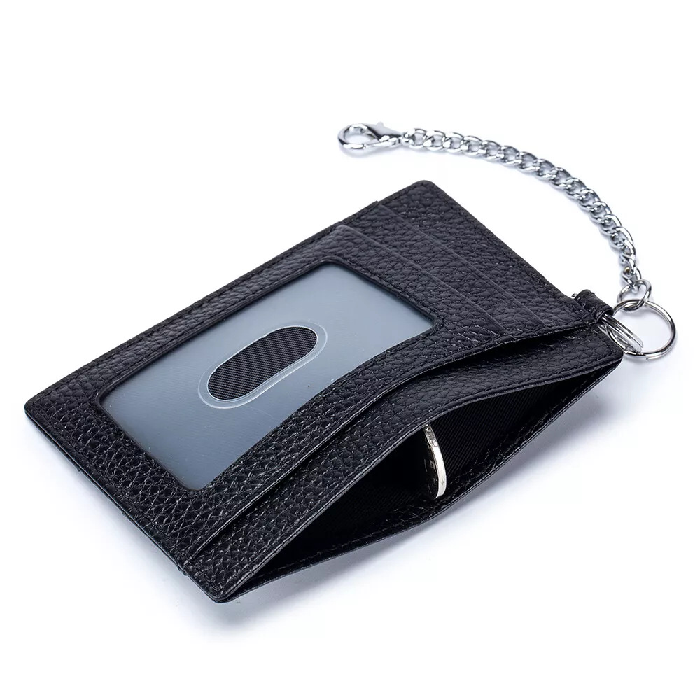 Description: Leather lining QUALITY MATERIAL: Card wallet is made of quality real lichi patten leather, soft, durable and delicate with soft inner fabric by the finest craftsmanship. SMALL SLIM & COMPACT: 11.3CM*8.6CM (4.4"*3.38") with 7.2CM*4.8CM (2.8"*1.88") ID Version. Slim & small enough to put your front/back pockets or your handbags. Compact and useful for your daily use. MINI but FUNCTIONLA & RFID BLOCKING: 6 card slots and1 ID window outside, 1 pocket for cash, coins, change and daily accessories. A key chain with key ring is easy to put your keys together. Our coin purse is designed with advanced RFID SECURE technology to pretect your credit cards, debit cards, smartcards, RFID driver's licenses from scanning by RFID readers and keep your cards' vital imformation safe. GIFT IDEA: More colors is coming to meets all occasions and fits your coats and dress. Note: The wallet may have some crease in the package during shipping. There may be some smell which is normal, you can put it outside for several days, then it will disappear. Package C ontent : 1 x Card wallet