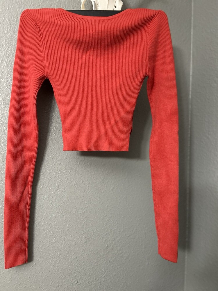 Elevate your wardrobe with this stunning red cropped ribbed sweater from AllSaints. This classic pullover style sweater features a square neckline, long sleeves, and a solid pattern. The XS size is perfect for those who want a comfortable and flattering fit. The sweater also boasts a cropped design, making it perfect for pairing with high-waisted jeans or skirts. Its ribbed accents add a touch of texture and depth to the sweater. Whether you're dressing it up or down, this sweater is sure to make a statement.