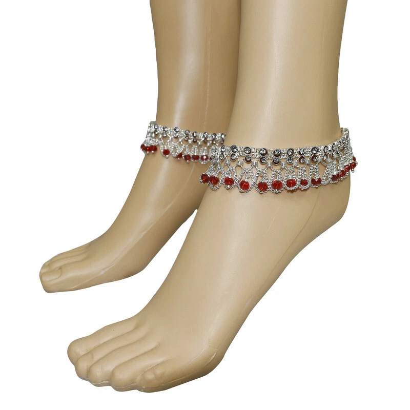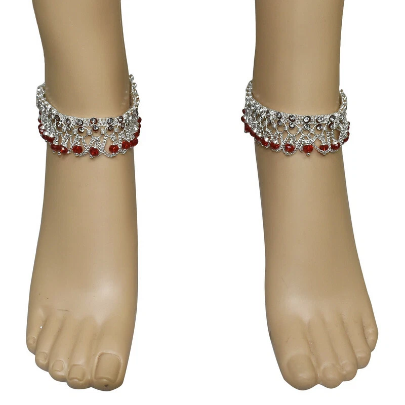 Item Description Women's Anklets Payal Indian Ankle Bracelets Chain Pair Foot Jewellery Sale For:- 1 Pair Size:- Length:-24.5cm x Width:-2.5cm (Approx) Material:- Metal Color:- Silver & Red Closure:- Hook Type:- Anklets Main Stone:- Artificial Stones & Beads About This Item New Traditional Style Anklet For Women And Girls. Ethnic Significance:- Brides Wear It To Draw Attention To And Decorate Their Feet Bells Or Chimes Make A Soft Sound When The Bride Walks Traditionally Payals Are Worn In Both Feet. Style Tip:- Perfect For Spring And Summer Wear.Compliments Most Outfits.Casual Chic Everyday Wear. Perfect Traditional Anklet Contemporary Look,Ideal For Any Ethnic Outfits Like Saree,Lehenga,Gowns,Bridal Wear,Party, Festival,Any Special Occasion, Dance Or As Fashion Novelty Costume Accessories. Ideal For:- Christmas,Thanks Giving,New Year,Valentine,Birthday,Anniversary Or Any Occasion,Gift For Someone You Love Jewellery Care:- Can Be Used In Water But Dry Completely Before Storing. Note:-Buyers Will Be Responsible For Pay Their Country'S Custom Duties Charge, Import Charges And Other Charges (If Applicable) .