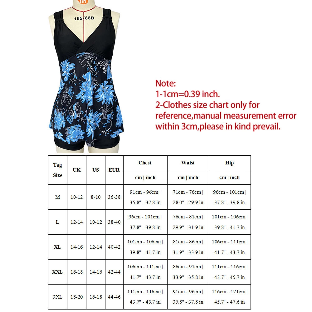 Description Feature: 100% Brand new and high quality Style: fashion,sexy Size: M,L,XL,2XL,3XL Color: black,blue,orange,pink Material: polyester Sleeve length: sleeveless Thickness: thin Neckline: v-neck Length: short Pattern: floral print Season: summer Occasion: beach Garment: hand washing or machine washing,line dry. Package:1pcs tankini set Note: 1.Due to the light and screen difference, the item's color may be slightly different from the pictures. Please understand. 2.Please allow 2-3% error due to manual measurement.Please make sure you don's mind before you mid. 3.Size doesn's fit all.Please carefully check size chart and select the size based on your real size. On Dec 17, 2024 at 00:08:59 PST, seller added the following information: